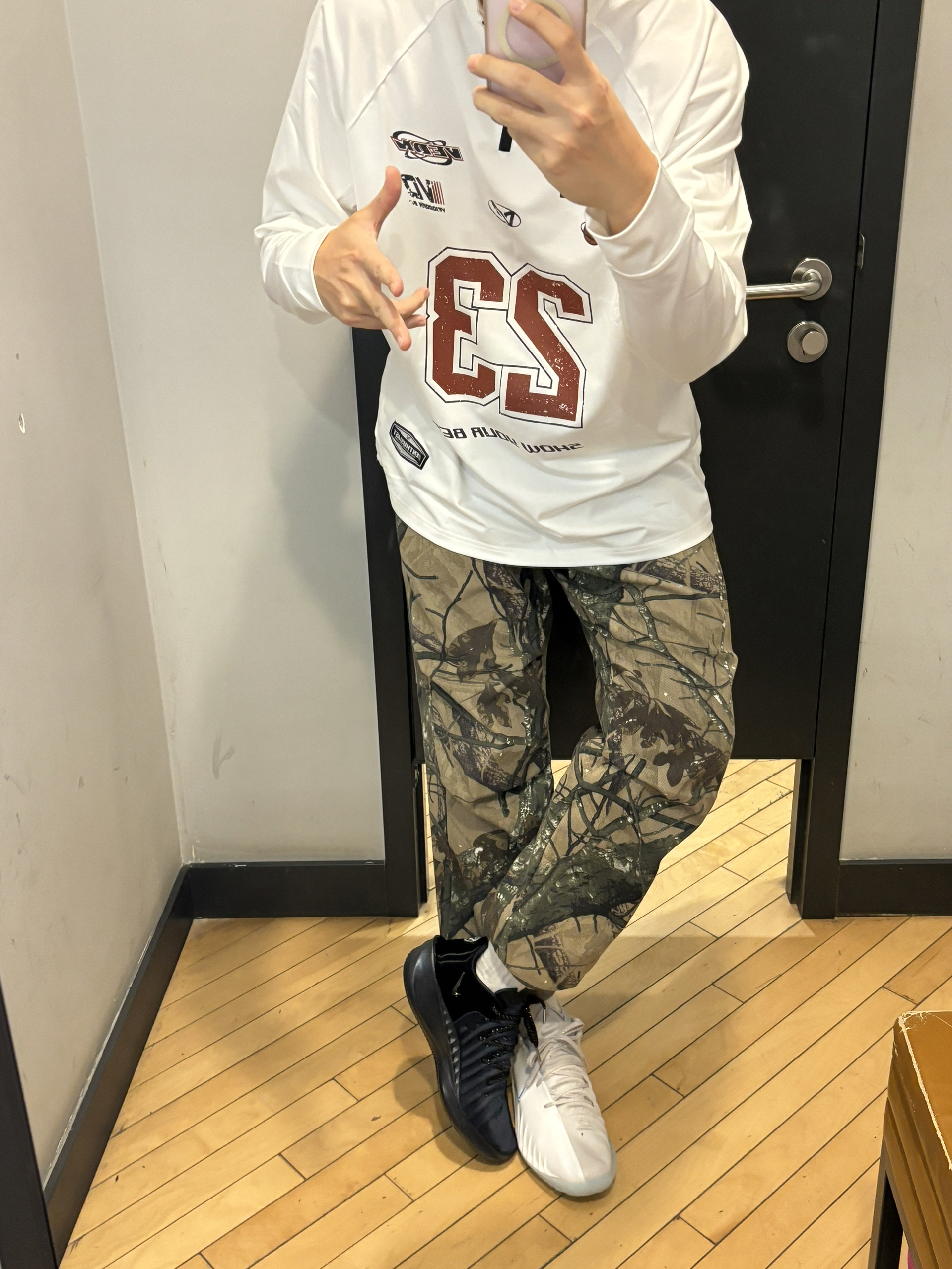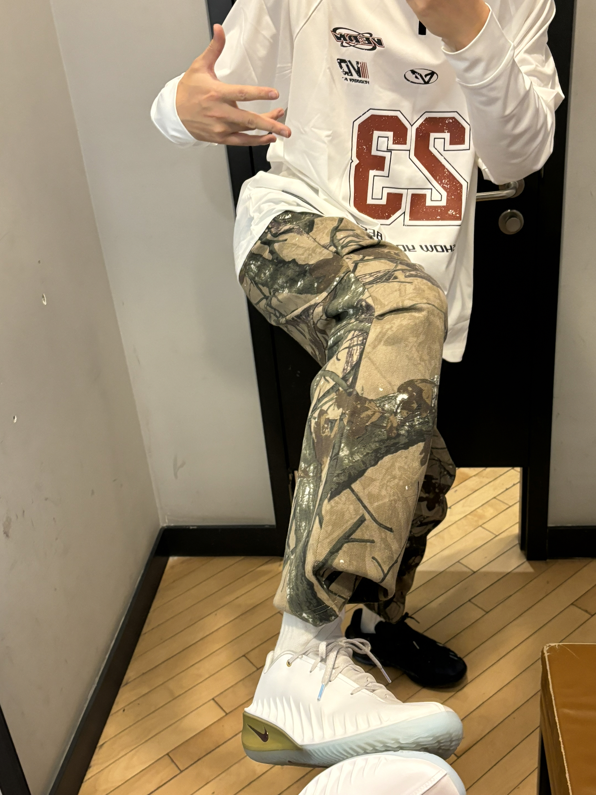 卫衣终于开窍了 我的这件卫衣有点美式风啊 球场打球、日常通勤逛街都可以 脖子带拉链设计就很新颖 白色搭配红色数字很醒目有点马年的感觉 材质也很有弹性胖点的兄弟也可以穿 搭配迷彩裤和gtcut4马年就行有点混搭运动风 👔维动长袖 👖uzis迷彩 👟gtcut4鸳鸯