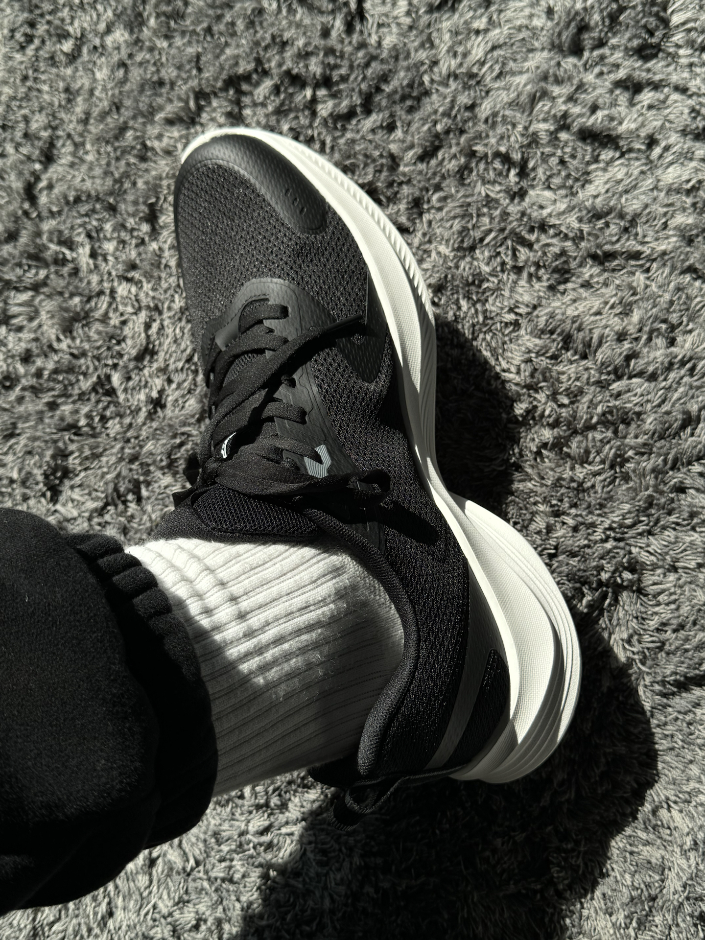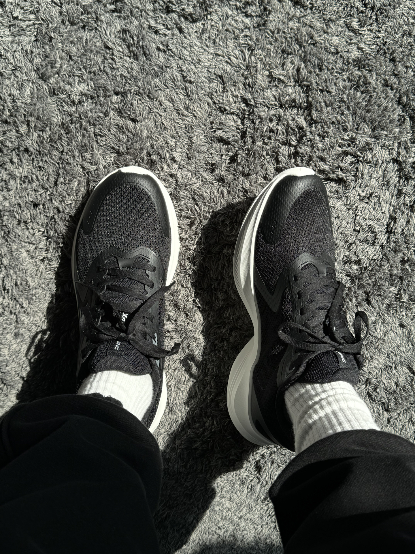 秋冬运动我最喜欢的搭配就是黑白配~ 今天上脚一双颜值很在线的跑鞋——特步「氢风科技」跑鞋。第一眼就是很干净的黑白配色,整体做得很轻,属于上脚就能感受到的那种轻量感,跑步会更轻松一点。 鞋面是透气网布材质,包裹贴合又不会闷脚,鞋底脚感偏舒适回弹,日常慢跑、体测或者进阶训练都能穿,穿搭不挑衣服~平时通勤出门当休闲鞋也很合适,一双鞋基本把运动+日常都覆盖了。 尺码不偏,正常选码就可以。如果想找一双好...