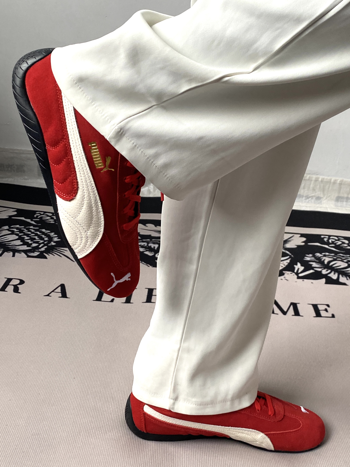 第一眼看见就被这亮眼的红色吸引了眼球🤩,加上白色的标志点缀,真的很难不心动 ,鞋型是大火的赛车鞋鞋型非常好看,穿上显脚瘦,而且红色真的也很显白,脚感特别好!爱了爱了😍