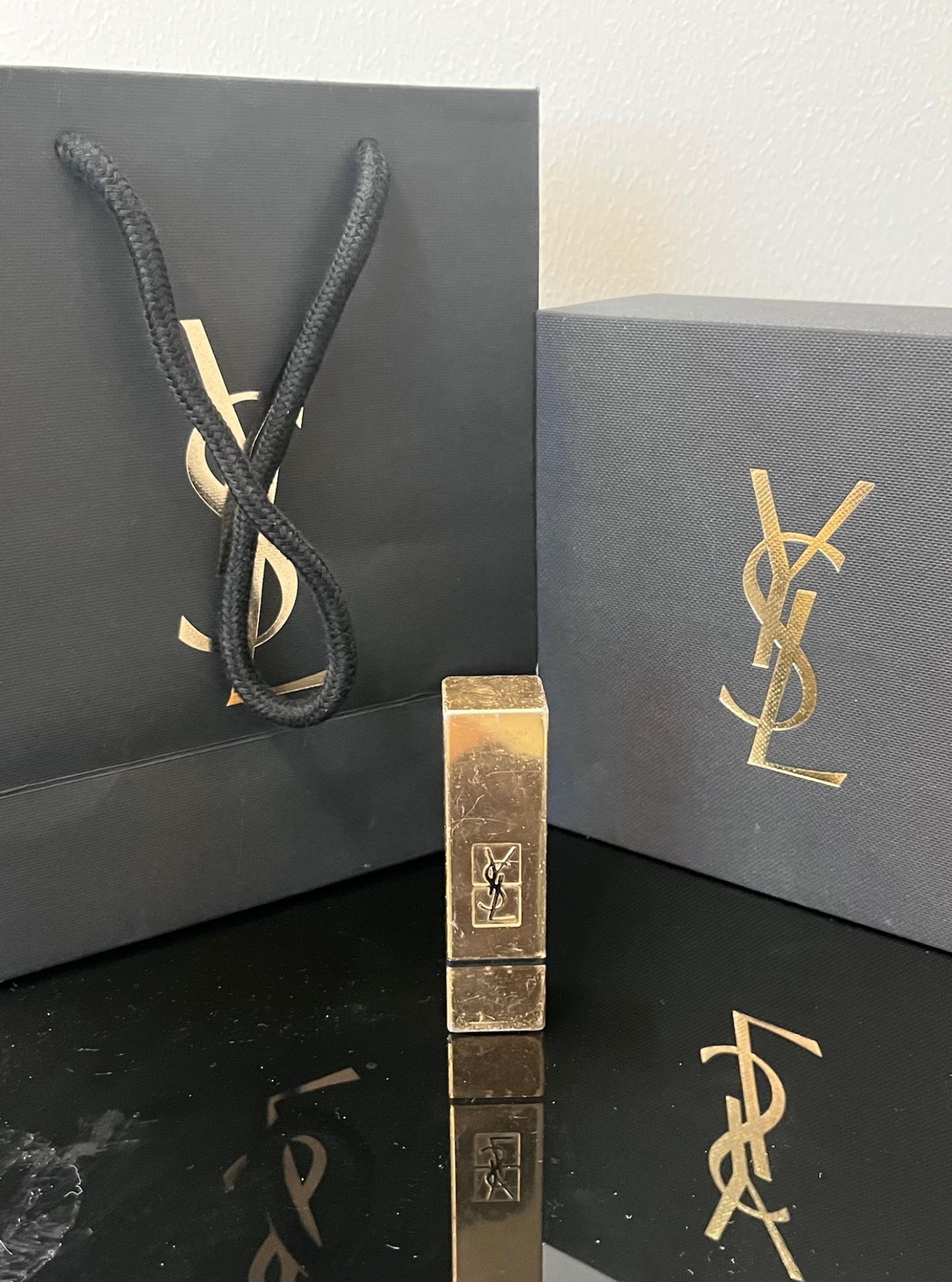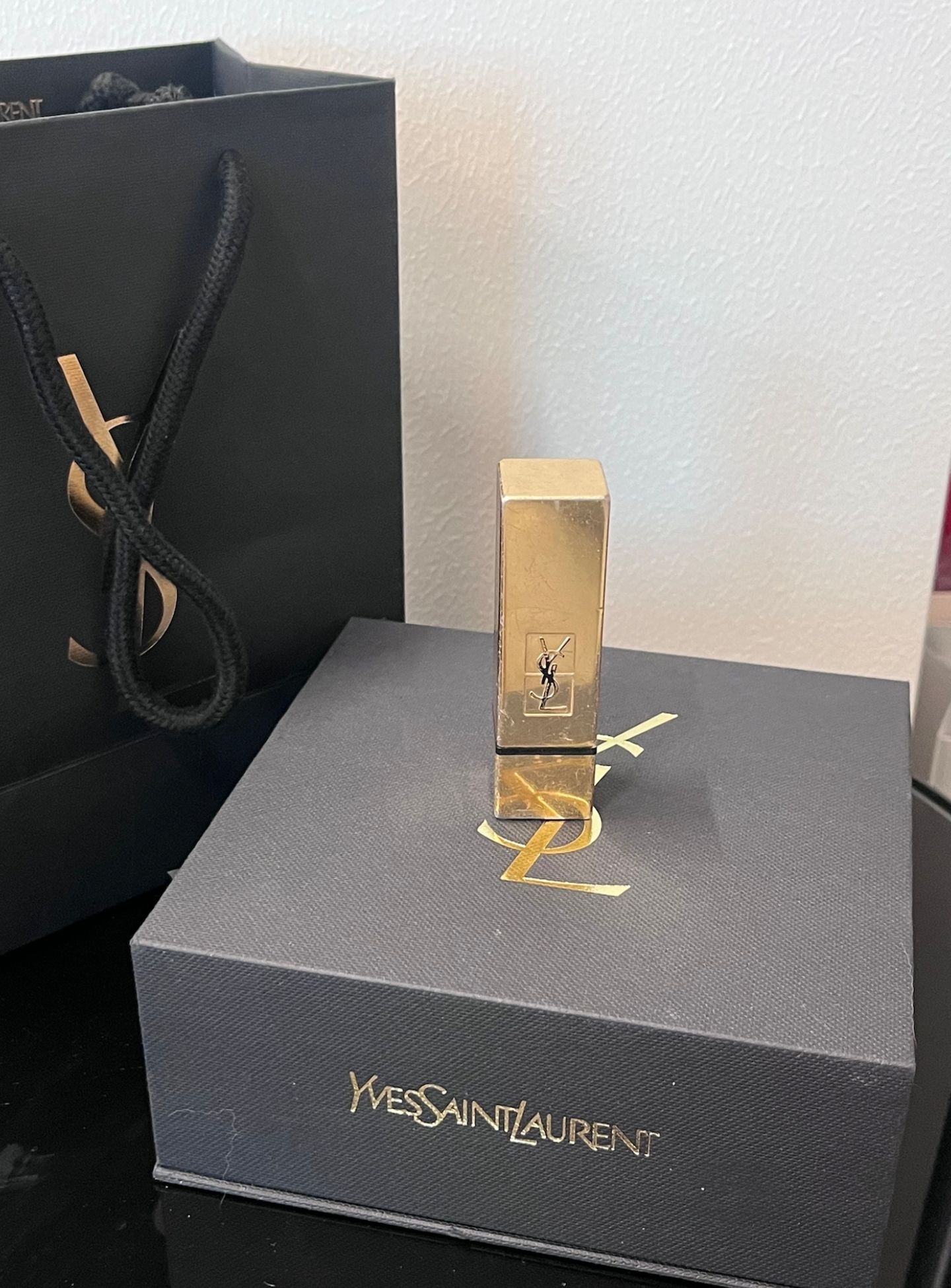 新年的第一支口红,必须是YSL小金条!黑金配色的包装真的太戳我了,高级感直接拉满。 哑光的金色方管,拿在手里沉甸甸的,质感绝了。虽然用久了会有一点点划痕,但反而更有专属的味道。 不管是日常通勤还是新年聚会,涂上它气场全开,氛围感直接拉满。 精致的礼盒和礼袋,不管是自留还是送人都超有面儿,仪式感直接拉满!