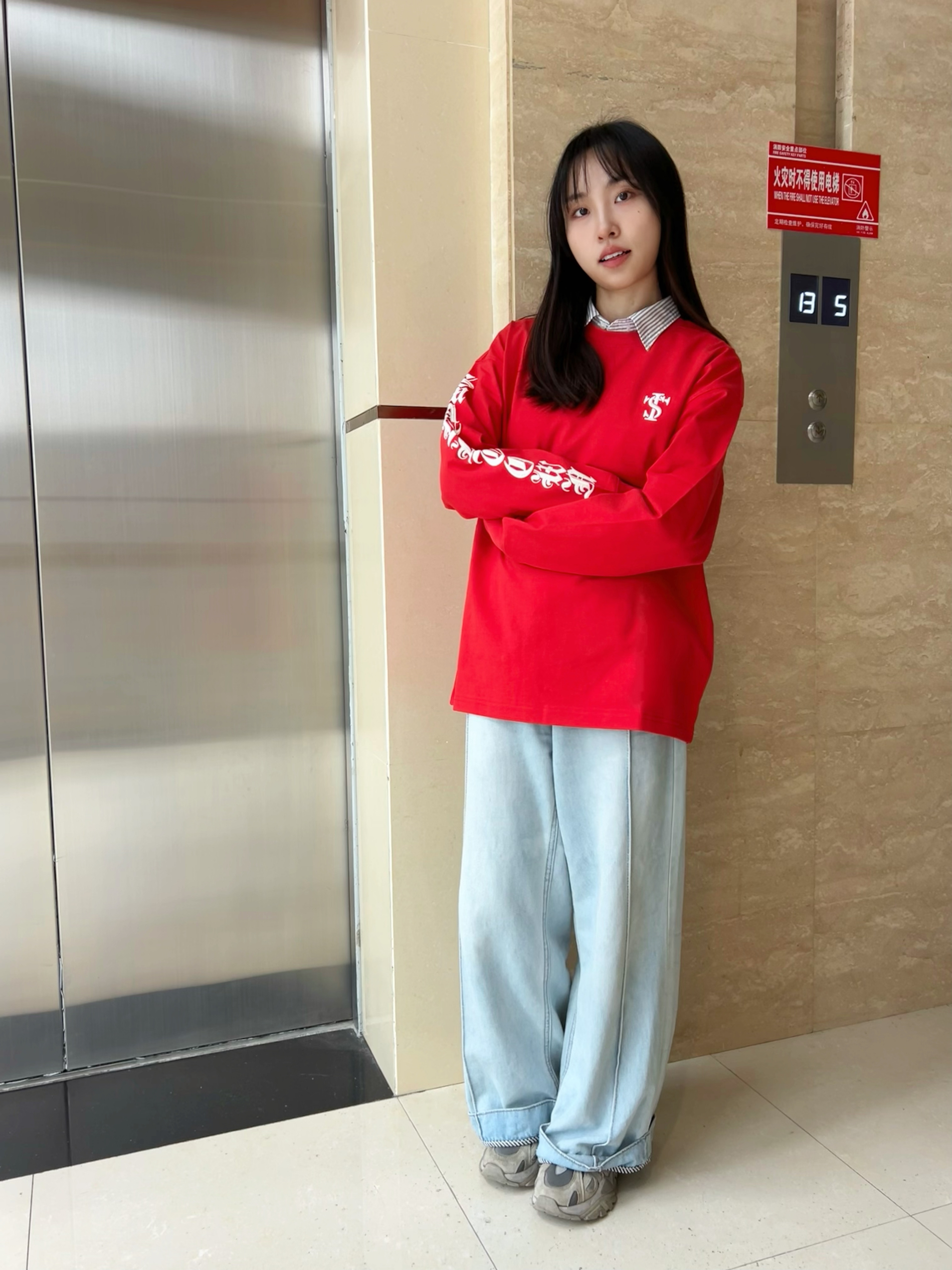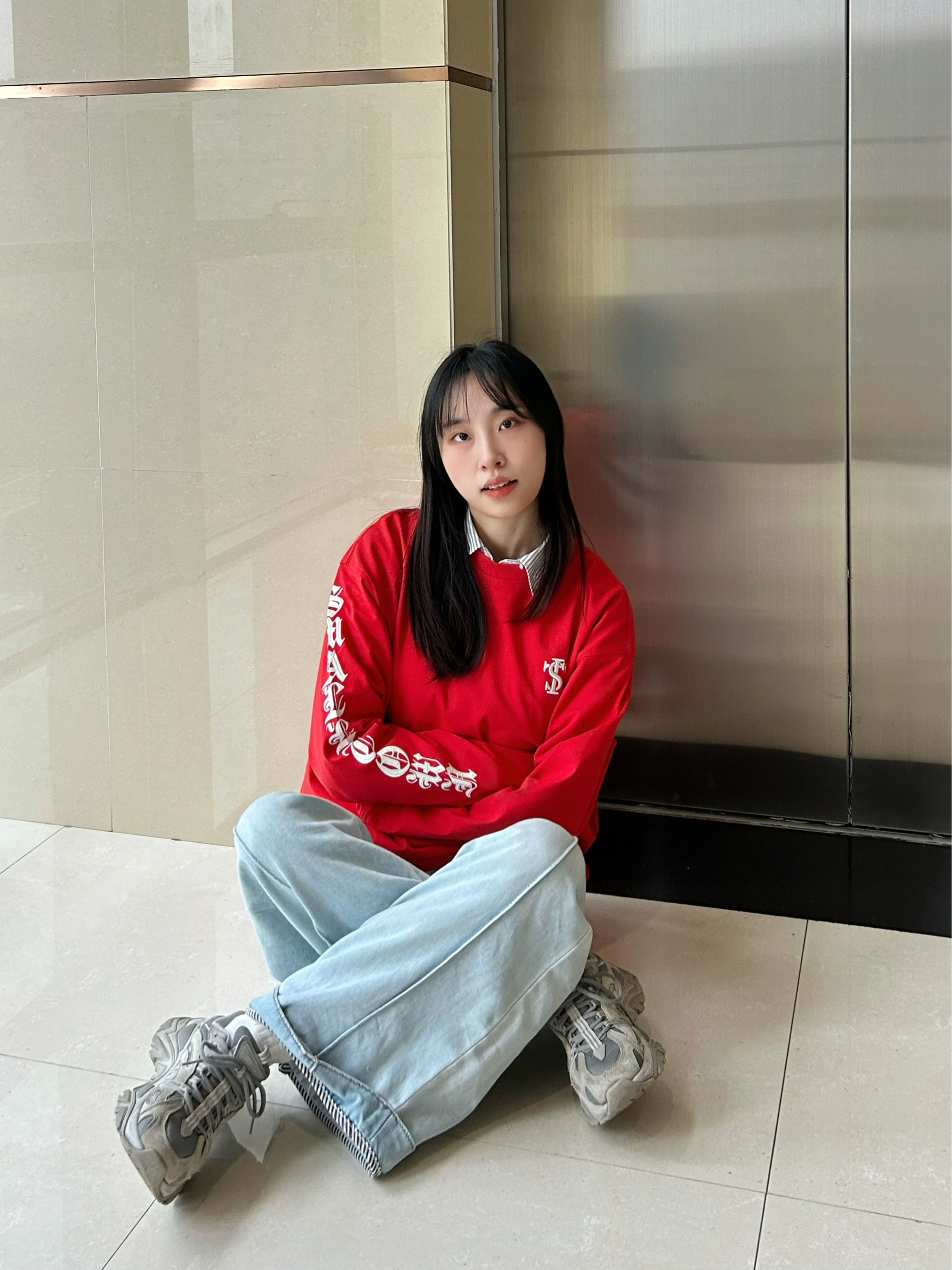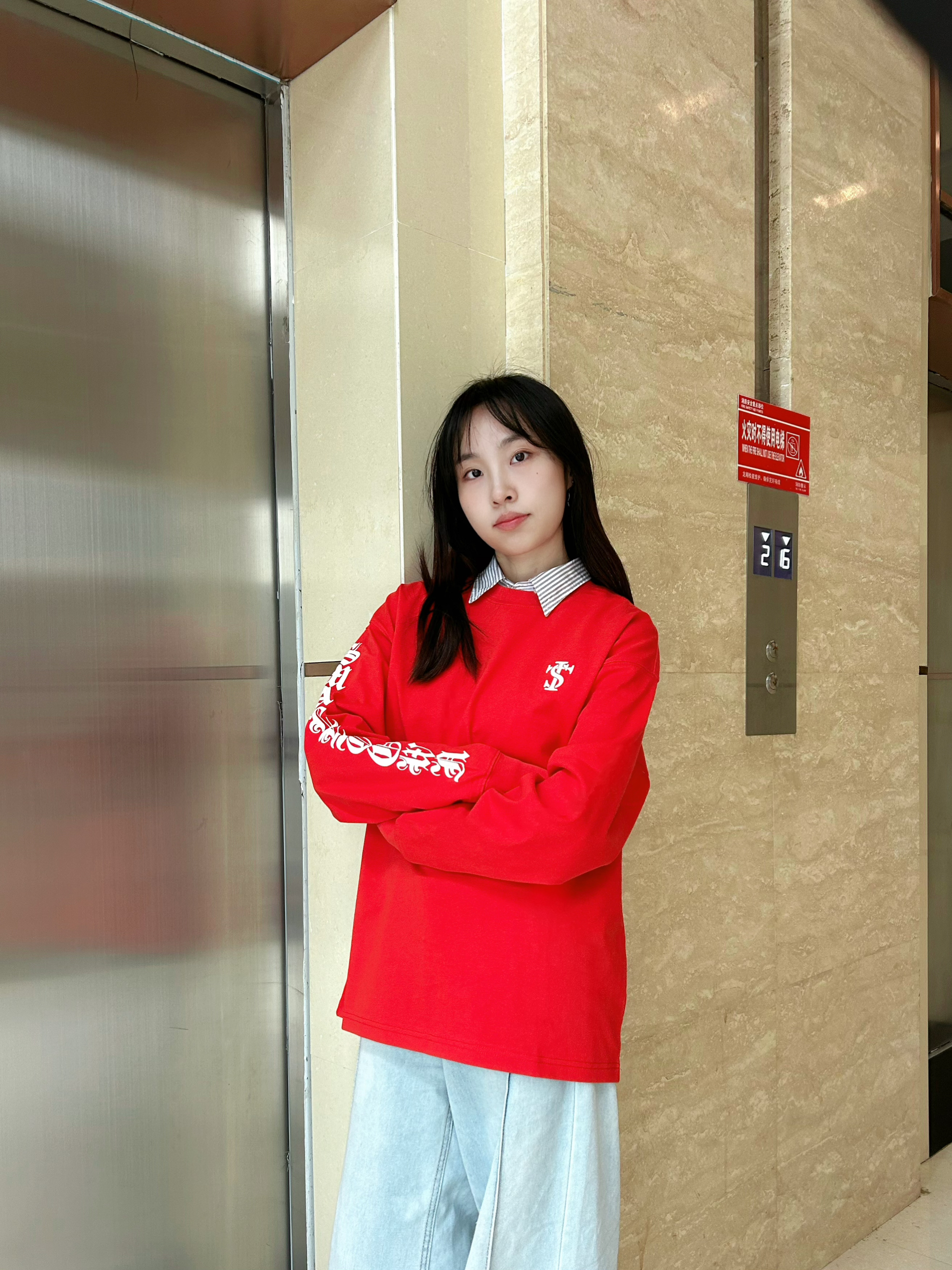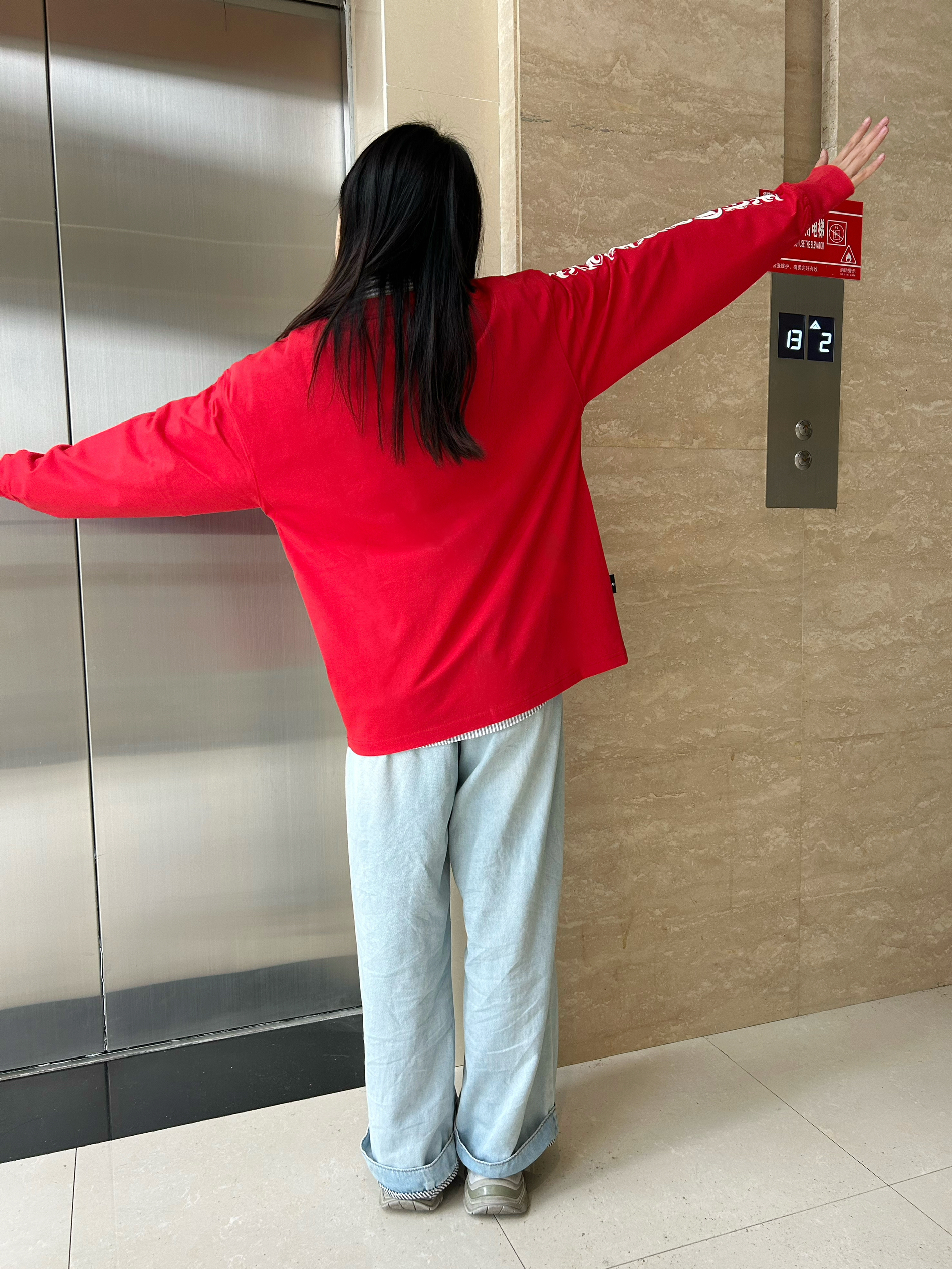 这件STK红色T恤穿上还挺提气色的 胸前的字母刺绣做工细致, 红色正得刚好。 我搭配了浅色水洗牛仔裤和老爹鞋 街头复古感满满。 日常穿一点小俏皮又很舒服 当内搭也好看。