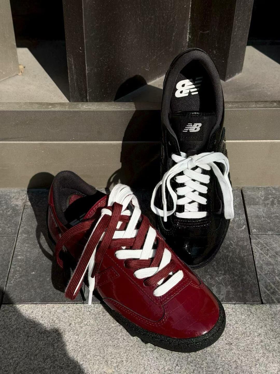 别只盯着990了!New Balance从档案库挖出的这双Gator Run,凭借独特的漆皮材质和仿鳄鱼压纹,正在成为复古玩家的新宠。 宝藏亮点: 1. 材质出众:亮面漆皮搭配细腻的仿鳄鱼纹,质感远超普通皮料,在光线下光泽感一流。 2. 廓形利落:低帮修长的鞋型,完美契合2026年“薄底”、“修身”的主流趋势,上脚特别显脚型秀气。 3. 搭配潜力:既能搭配复古运动装,也能和微正式的休闲装混搭,...