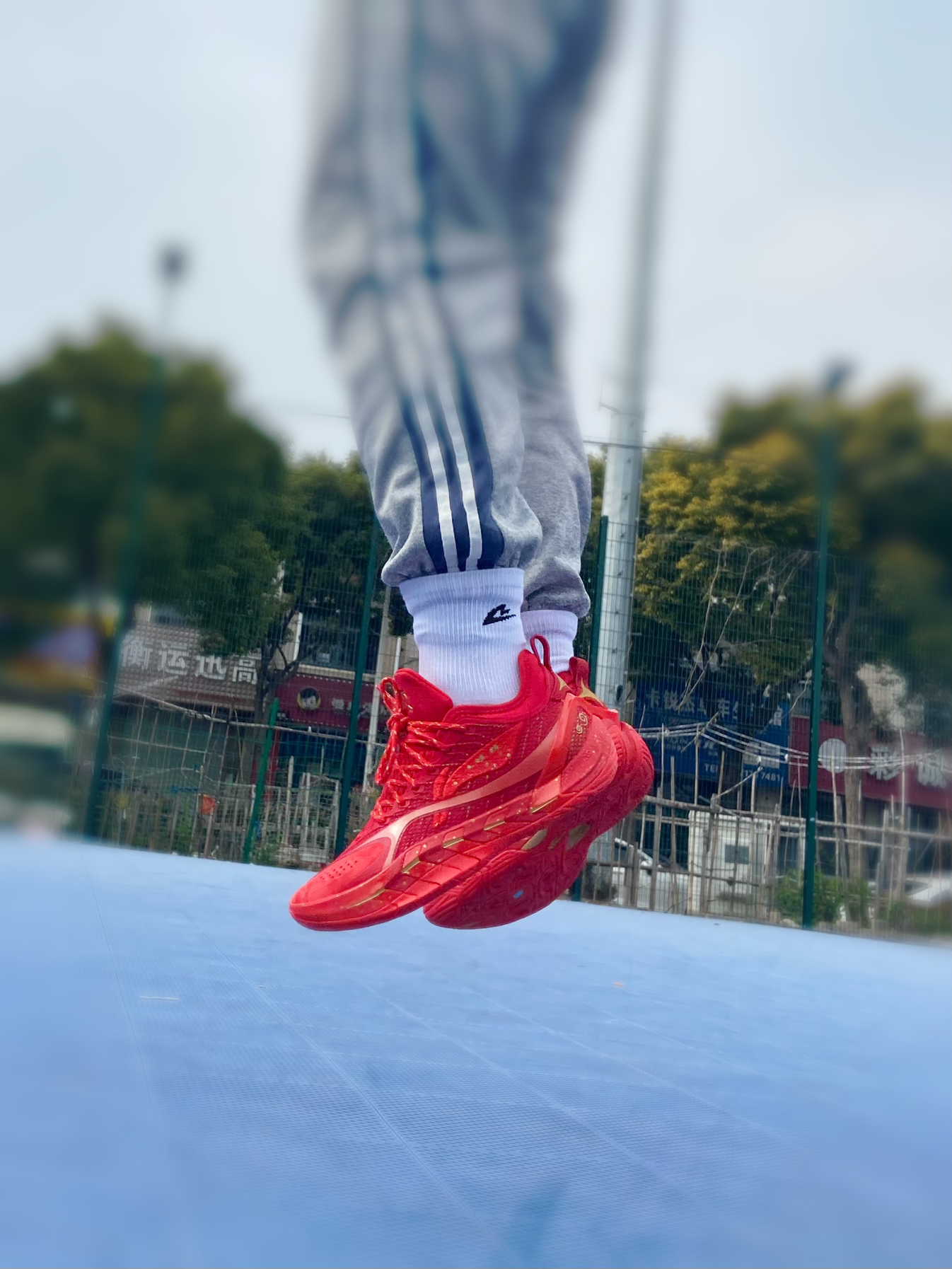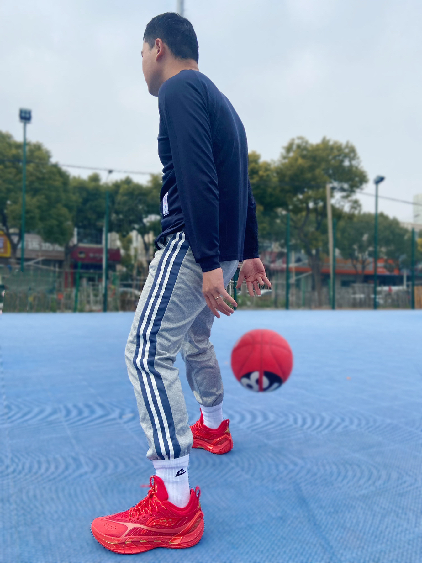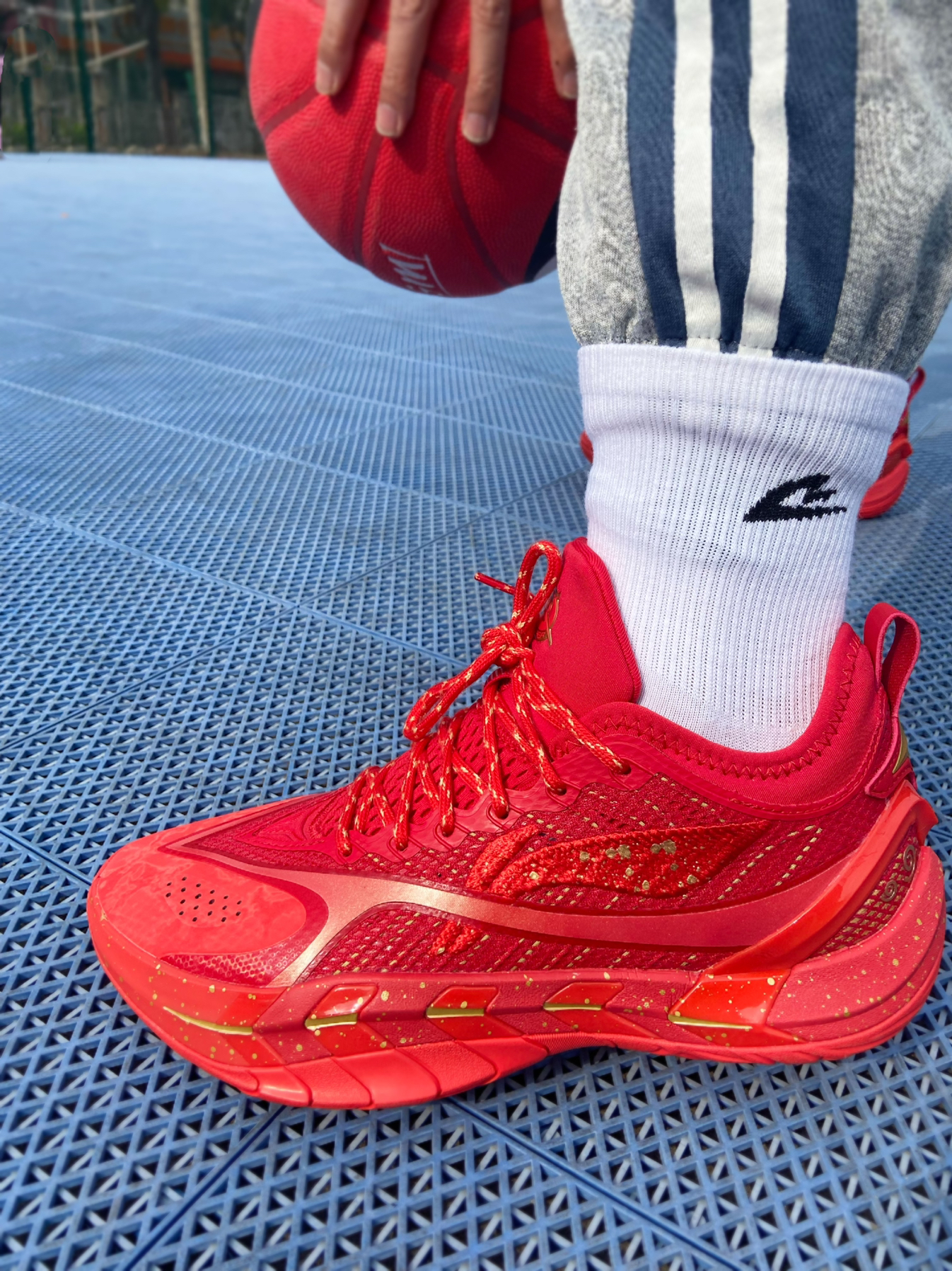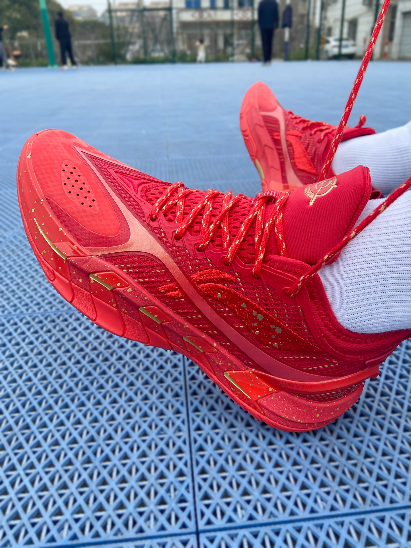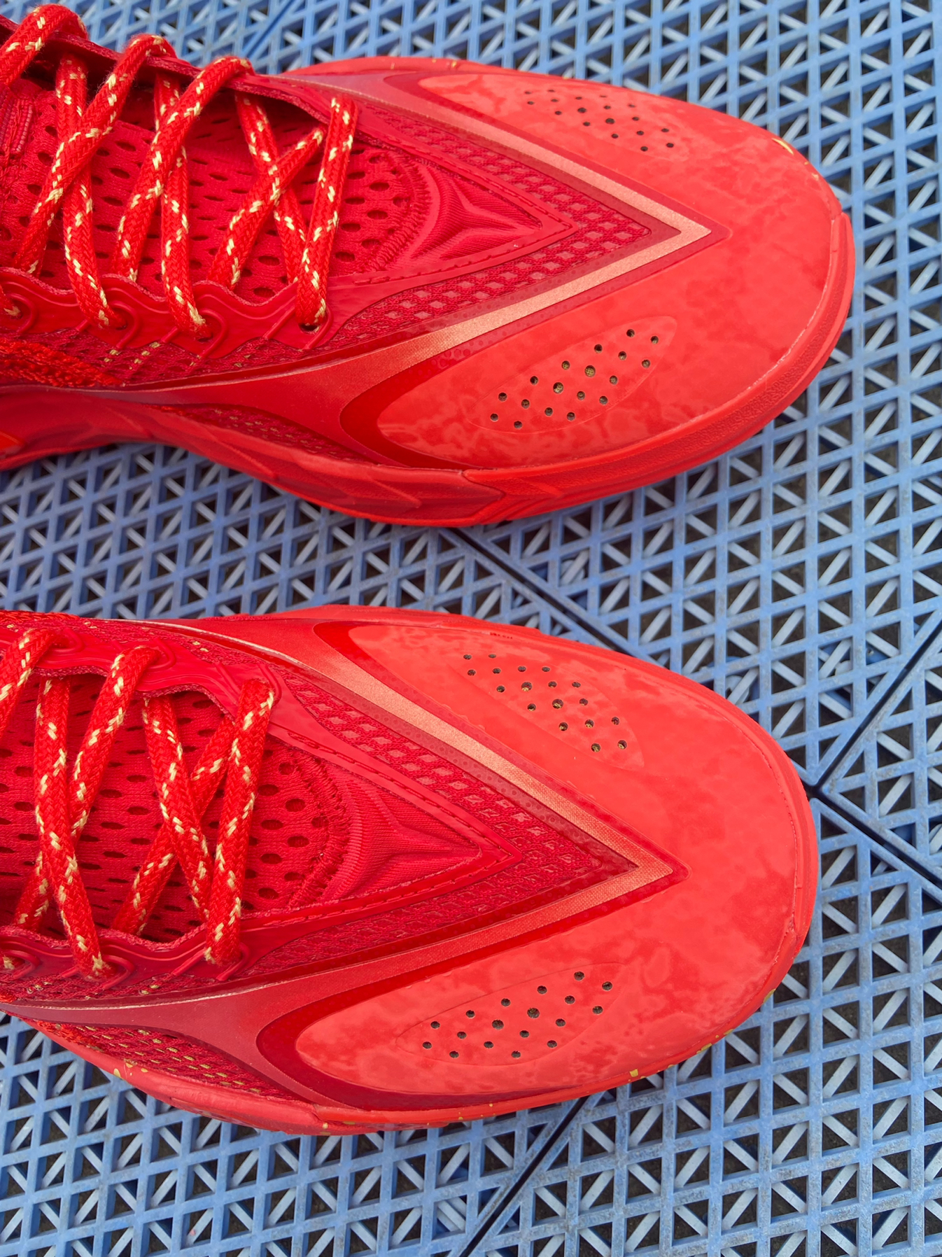 @年年爱学习 说实话,我本来没看上这双鞋,但是想买一双本命年的大红篮球鞋,这双大红色的反伍游击,一眼就吸引到我了! 这双鞋鞋头的皮面保护鞋头,鞋舌和侧面网面都是网孔,透气性没问题! 整个鞋子中底属于偏厚的,全掌的超䨻,让我上脚就惊讶它的重量,很轻质! 最后就是它的大底,DBR外底,真的太夸张了,这才是真得水泥地杀手,防滑耐磨顶级,我感觉比反伍5还要好穿! 最后你们觉得这双鞋帅么?