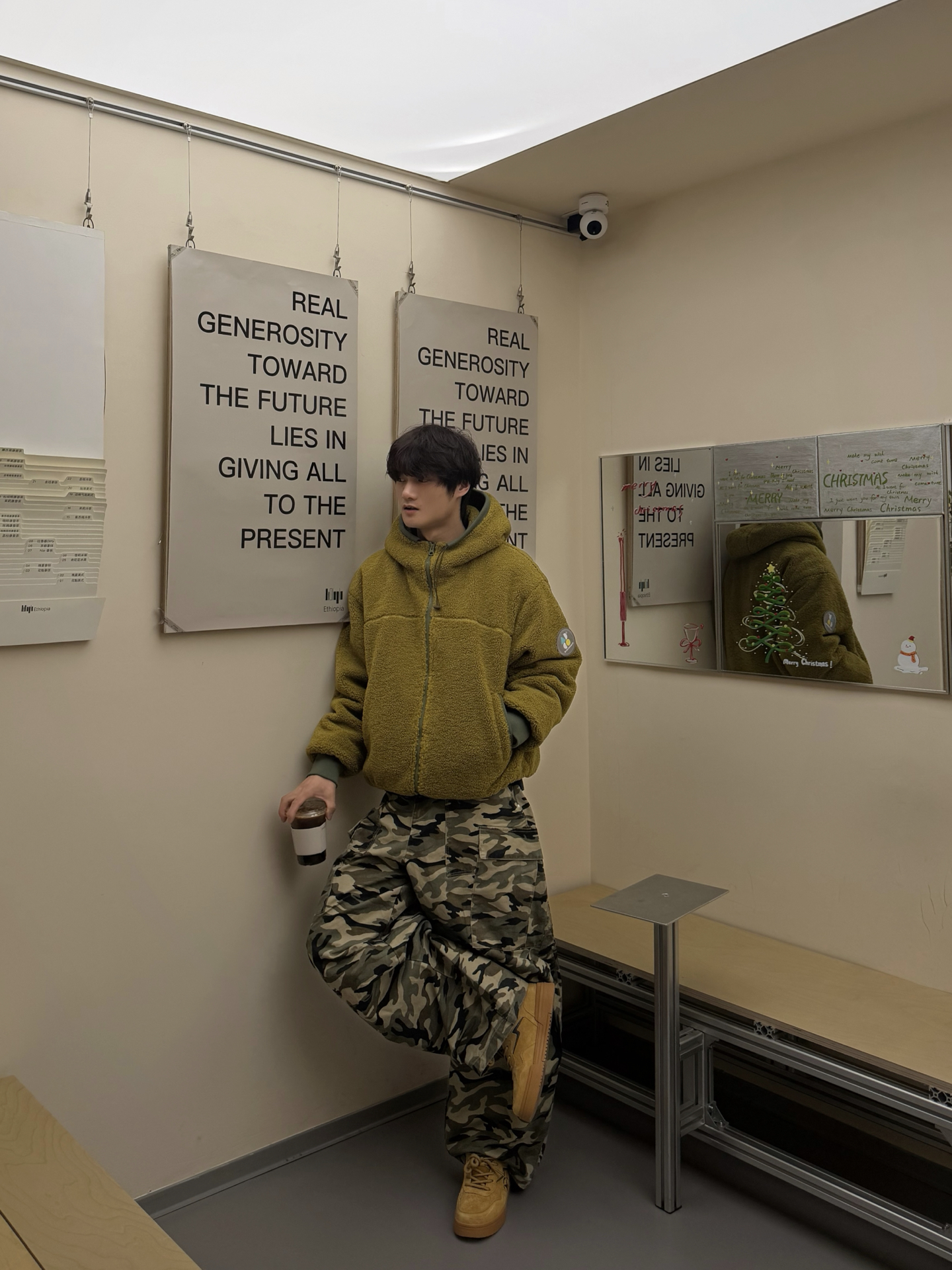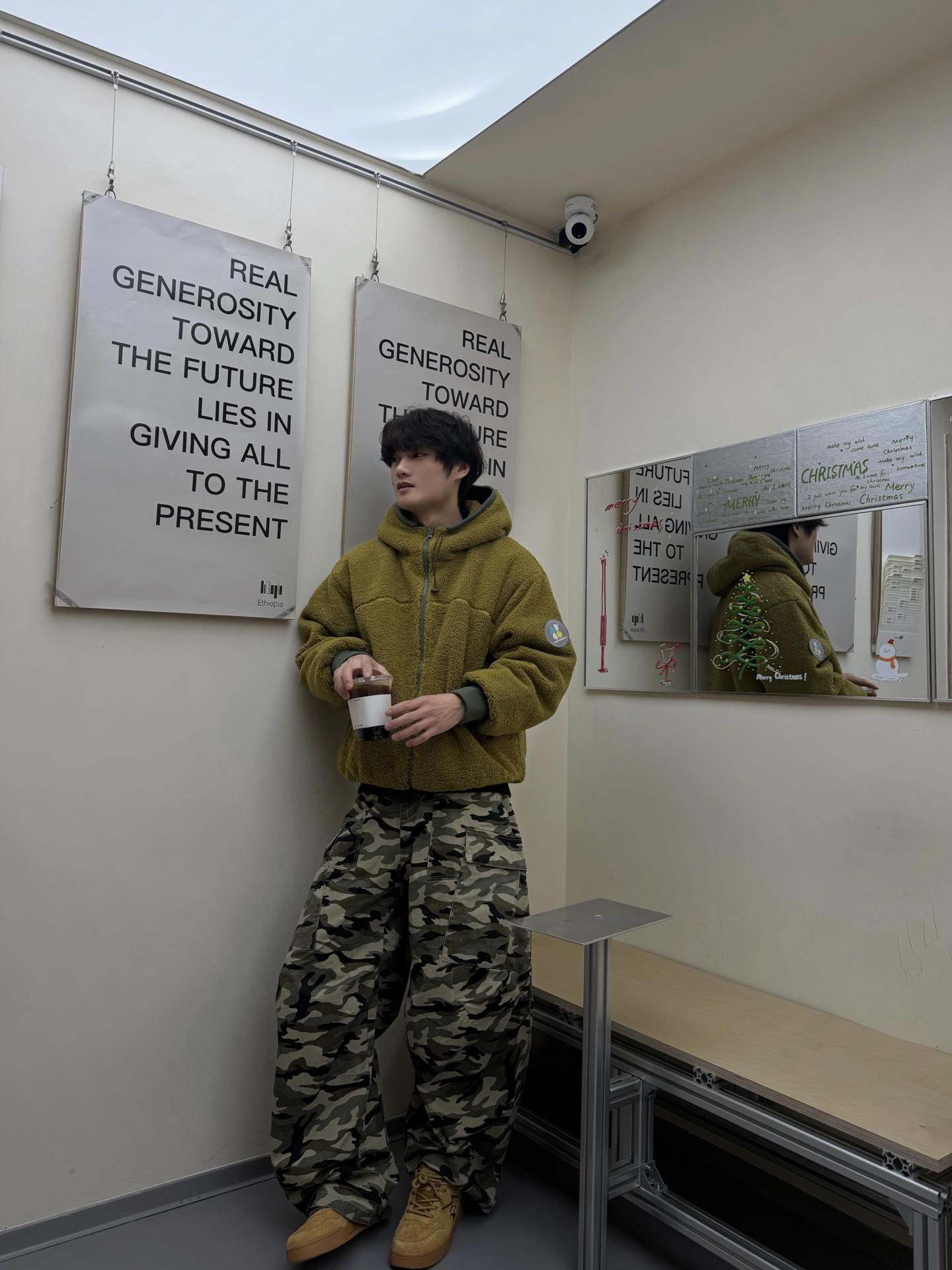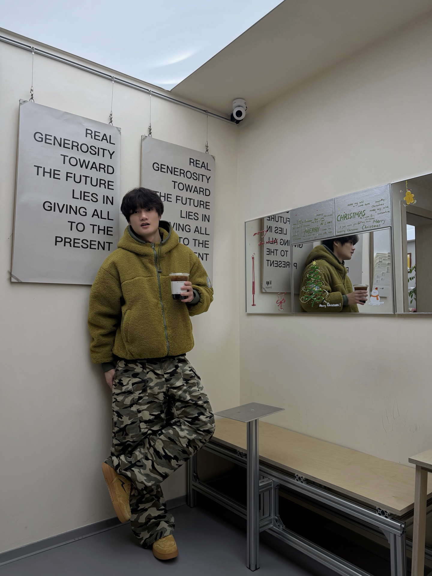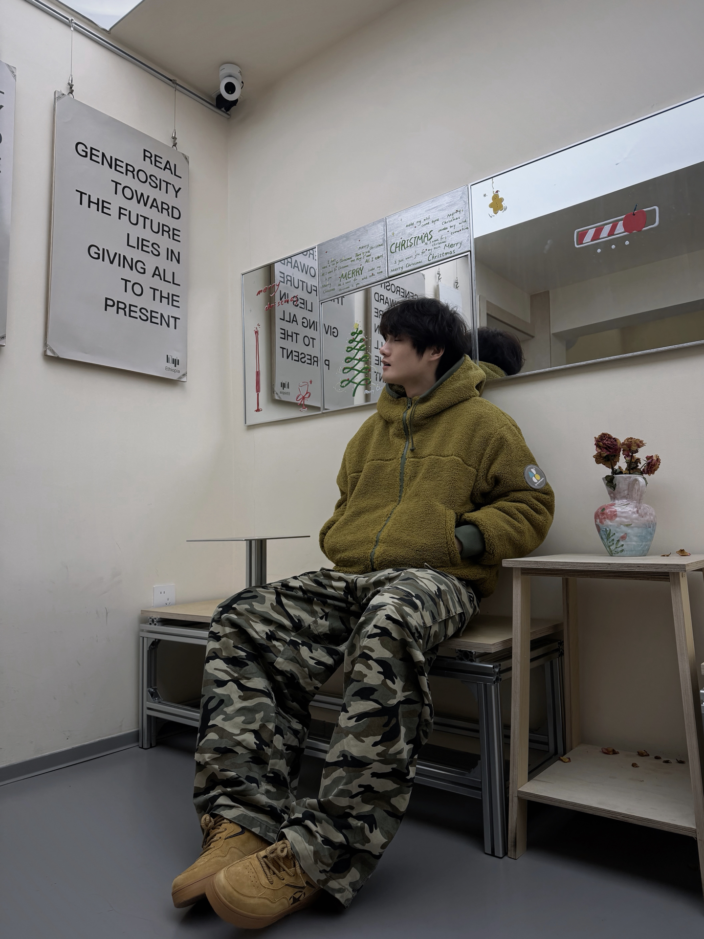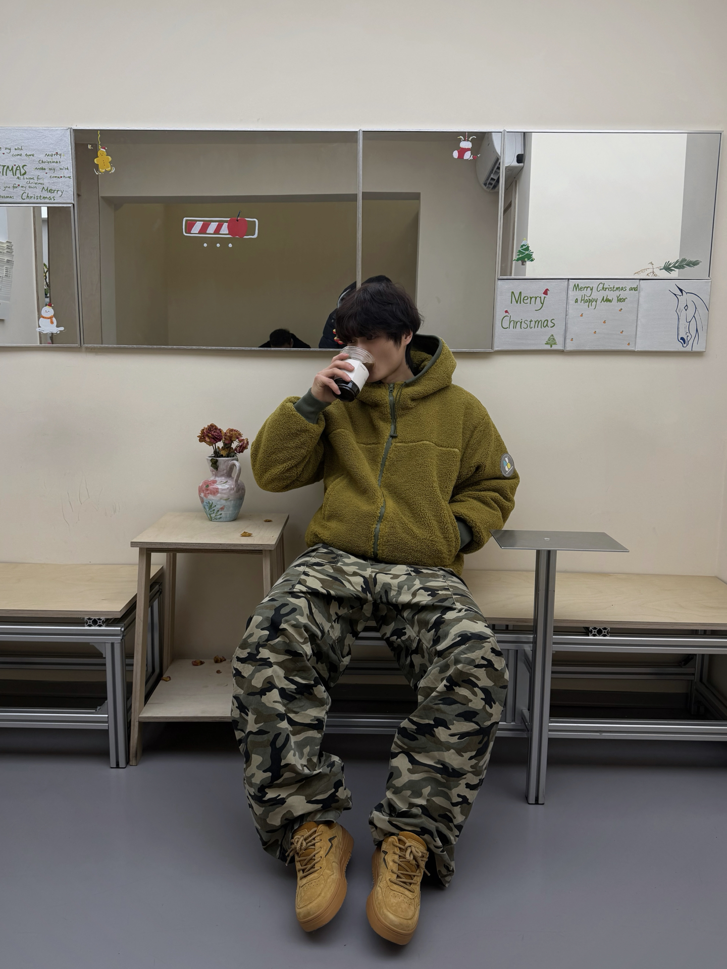 今天的穿搭主打一个“舒服至上”, 橄榄绿+迷彩+小麦色, 绿摇粒绒软fufu, 配上迷彩裤和小麦色板鞋, 整个人松弛又自在, 一套下来氛围感直接拉满。 #马年限定穿这双 #情人节穿双心动 #美美开局2026 #穿上这双鞋子过新年 #新年买新鞋