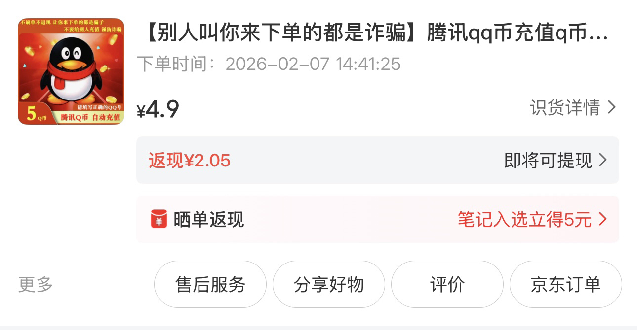 这次5Q币充值体验真的超赞!下单后几乎是秒到账,完全不耽误用。价格也很划算,只要4.9元,还能享受返现活动,性价比直接拉满。整个充值流程简单顺畅,没有任何套路,非常靠谱,已经推荐给身边的朋友了!✅