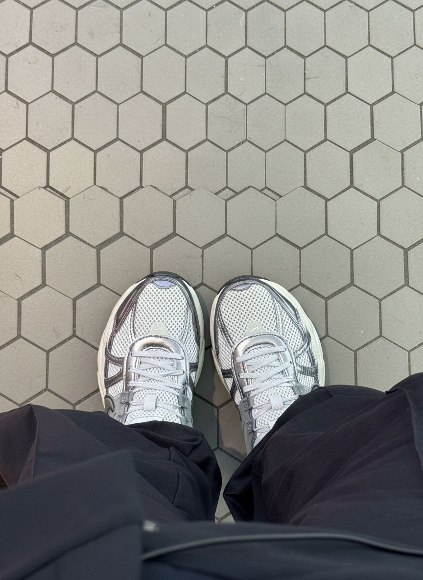 终于买到了心心念念的这双鞋👟 银灰做旧的配色太对我胃口了,低调又有质感。网面和皮革拼接的设计透气性不错,夏天穿也不闷脚。鞋底厚度刚好,走路稳稳的,还能悄悄增高~ 搭配宽松的裤子就很有街头感,日常出门穿它舒服又上镜,是近期穿得最频繁的一双鞋了😌 #今日高颜值Nike分享 #分享心动老爹鞋 #ootd