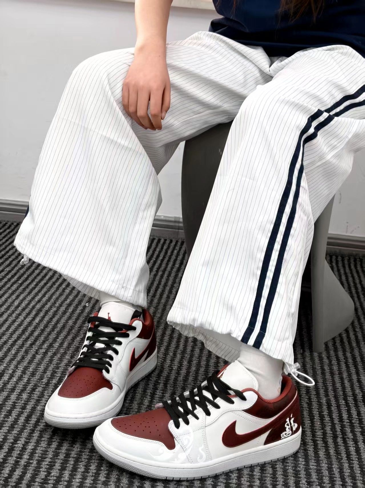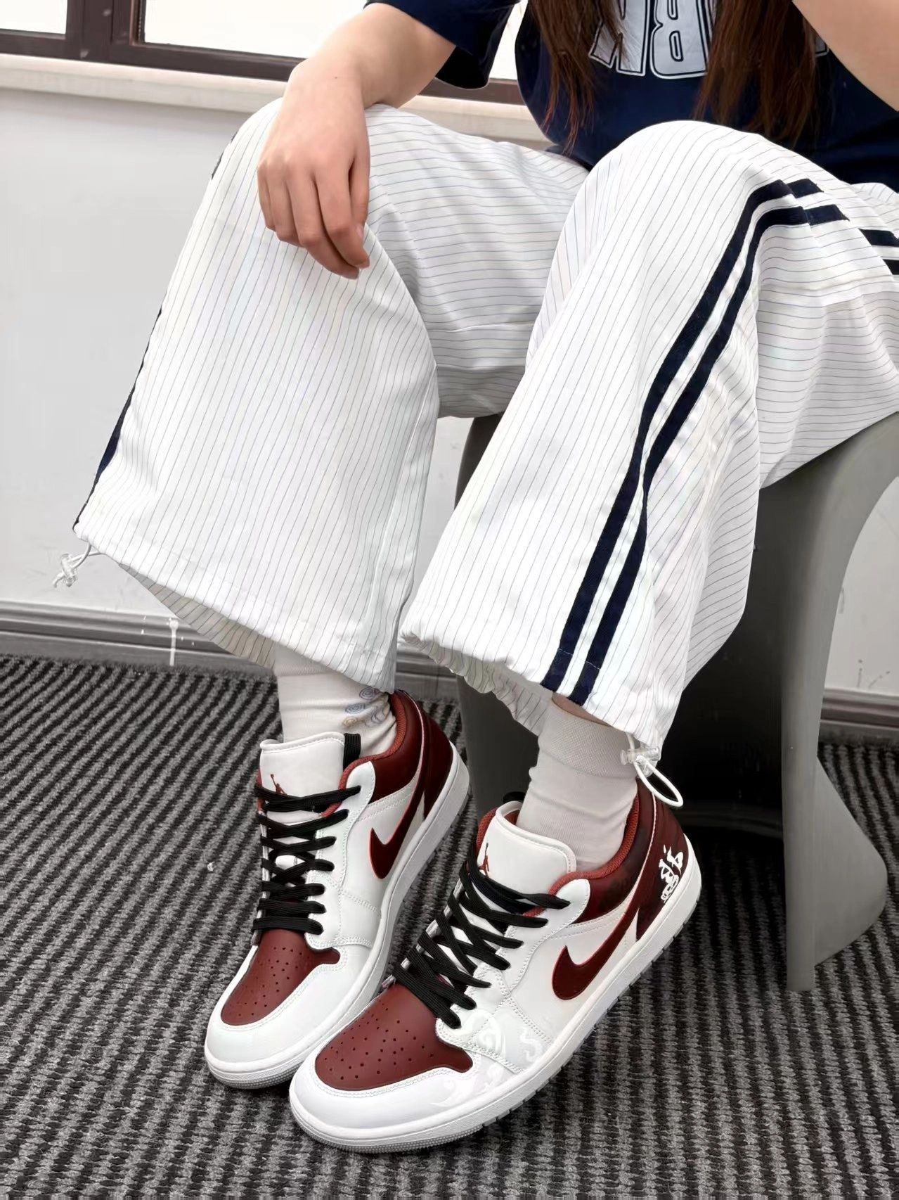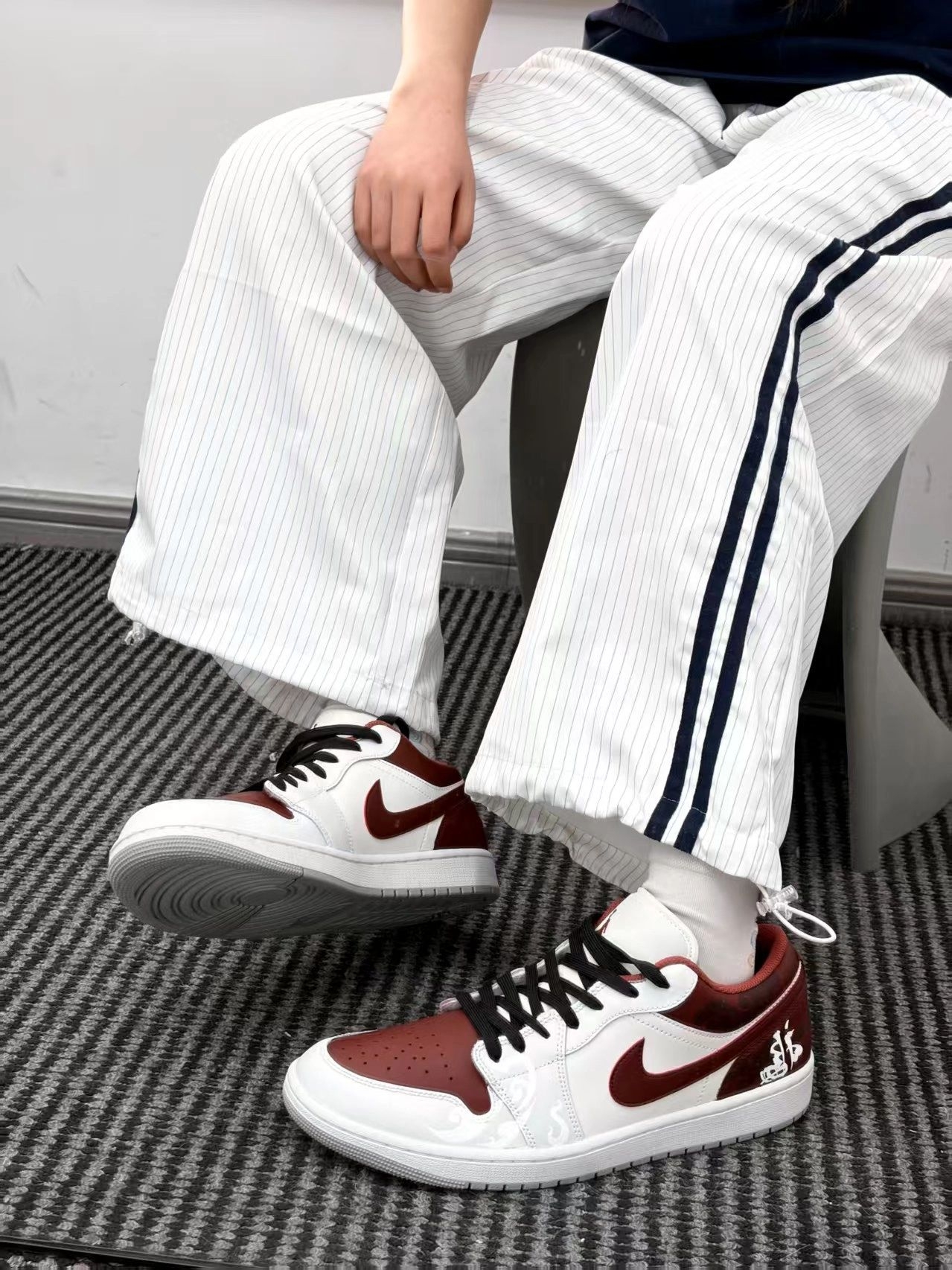 新入的这双红白配色真的很喜欢!酒红的皮质很有质感,上面的祥云纹和“龙”字印花,低调又有小细节😍😌 配牛仔裤或者运动裤都好看😊#红白dunk #好物分享复古耐克板鞋 #dunksb白红 #得物我要上热门阿甘鞋 #dunk自穿推荐