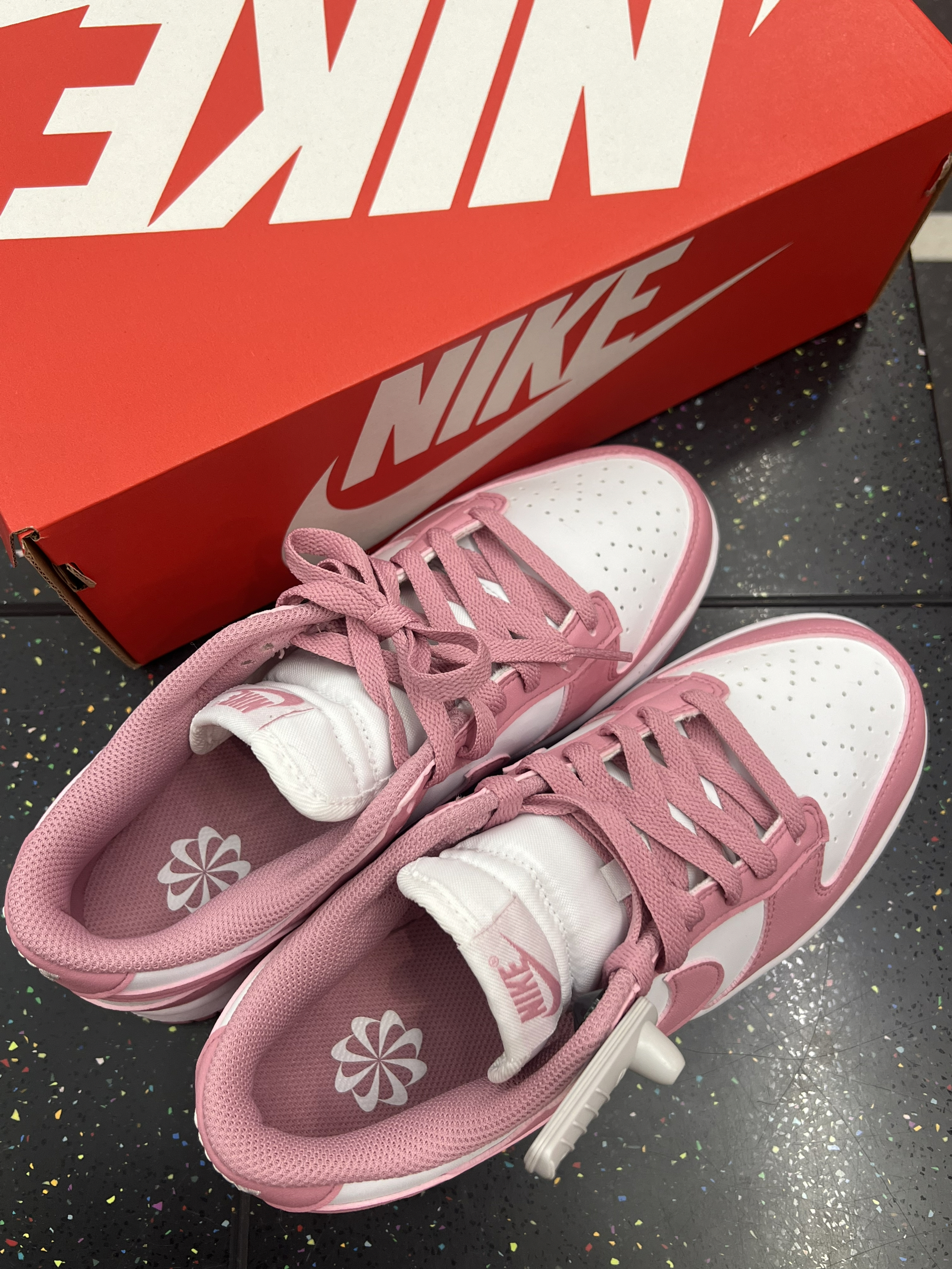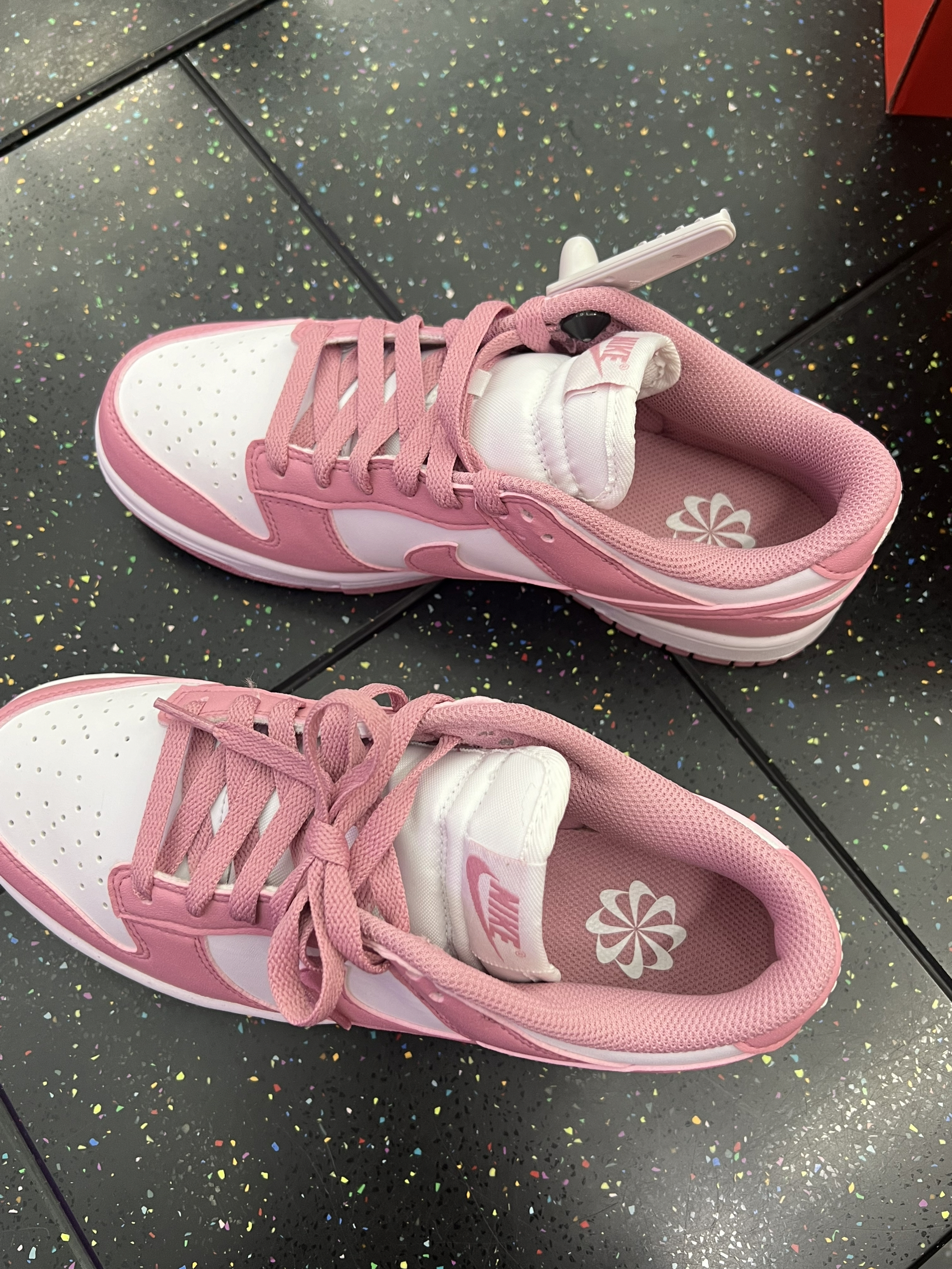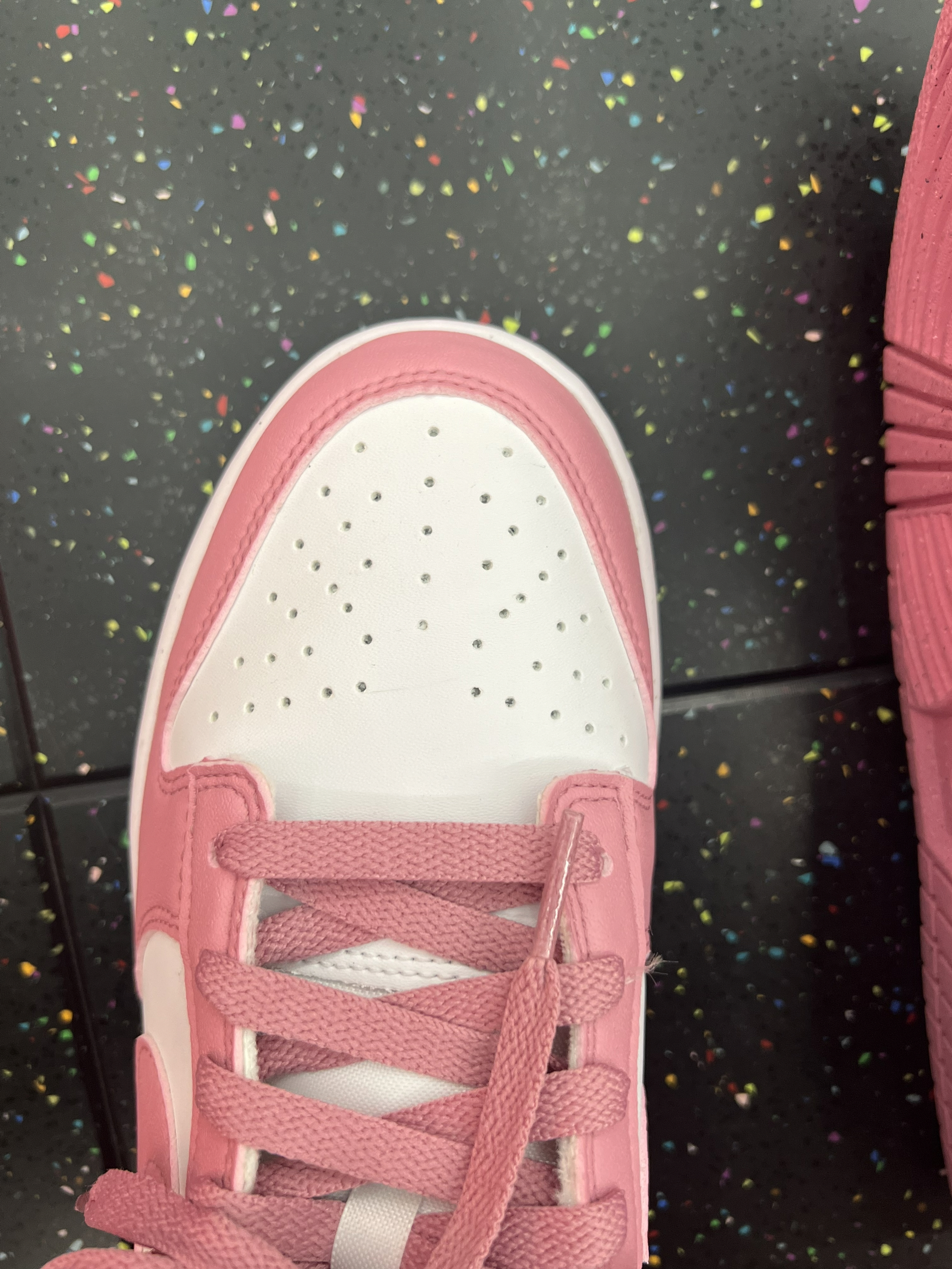 这双鞋让我彻底心动啦💖细节测评 一、【开箱瞬间】拆箱时看上了!这颜值太戳少女心✨ 打开盒子瞬间被颜值击中💘!粉白配色的Dunk真的绝美~奶乎乎的粉色饱和度刚刚好,搭配经典白色鞋身,简约又清新,完全长在我的审美点上!鞋盒也是经典款,但实物比图片更温柔,谁懂啊!😭 而且上脚轻盈舒适,逛街暴走一天也不累,搭配牛仔裤超有氛围感!!!