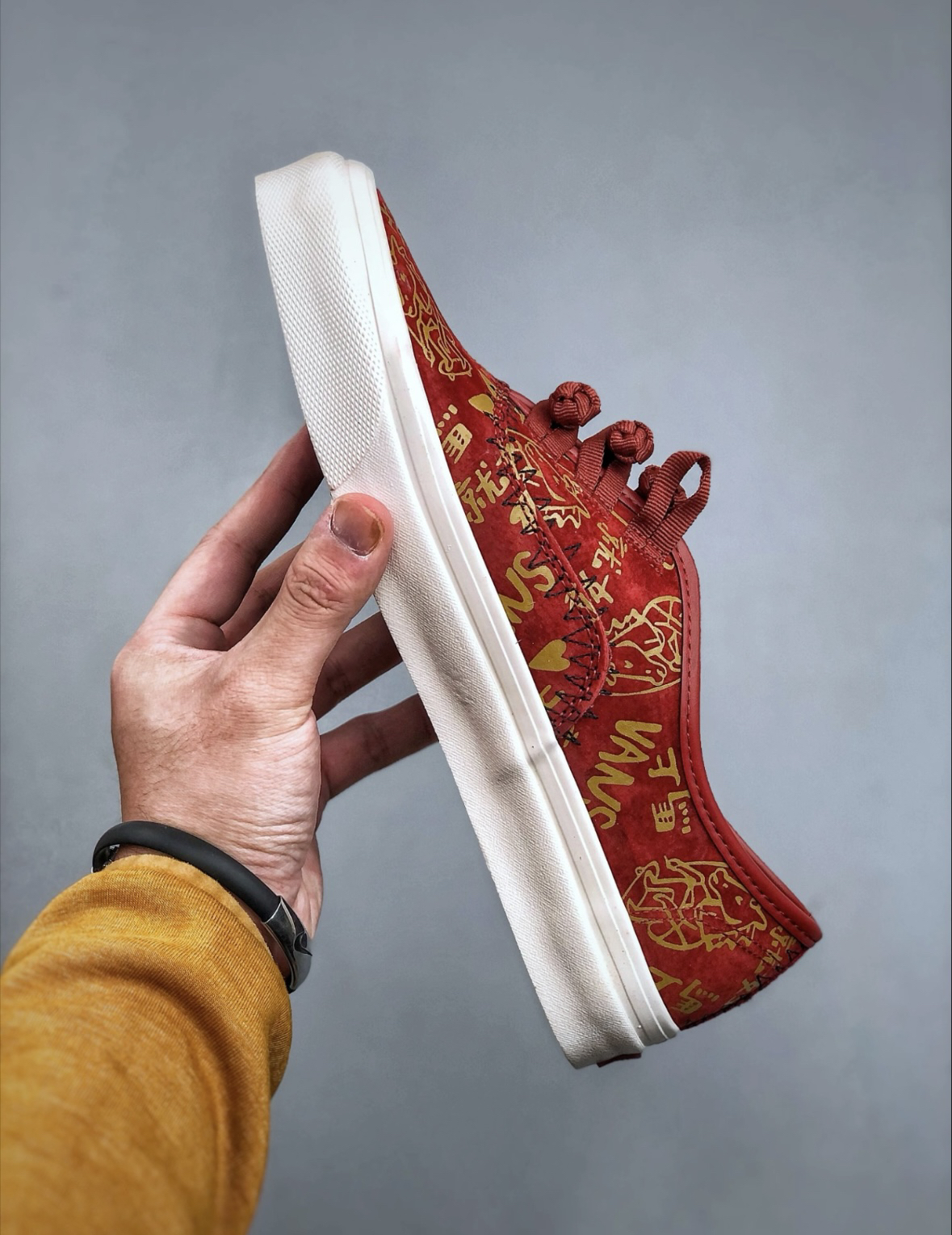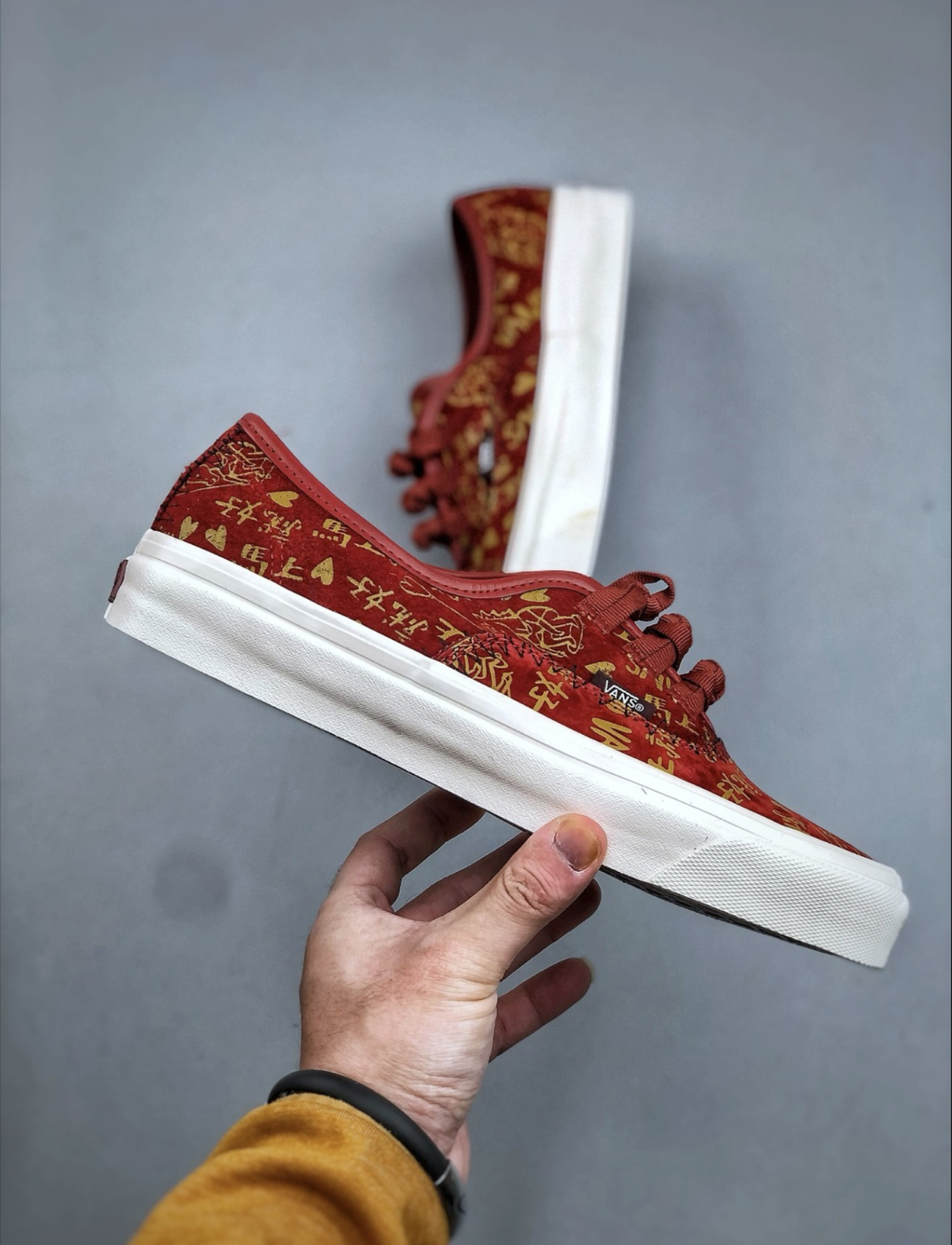 红运当头,马上有钱!这双Vans新年限定太会了,中国红的鞋身铺满了金色的吉祥话和爱心图案。 特别是这个别致的中国结鞋带设计,年味直接拉满。新年穿它,把所有的祝福和好运都踩在脚下,新的一年必定红红火火!
