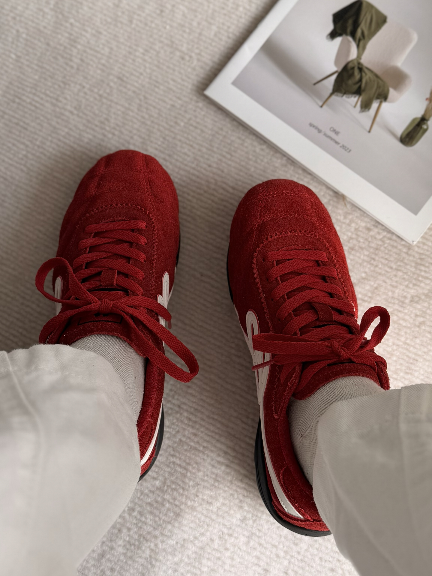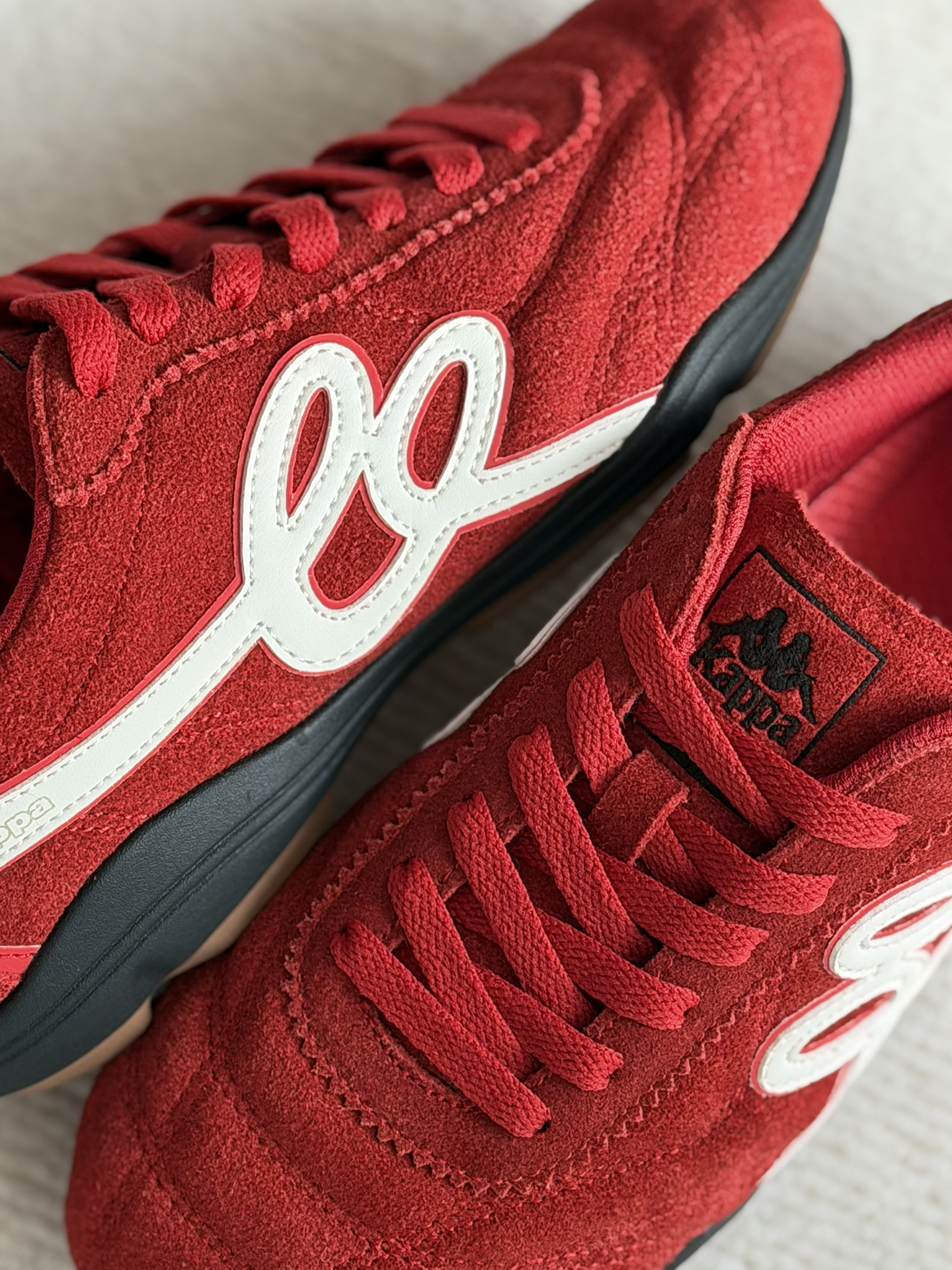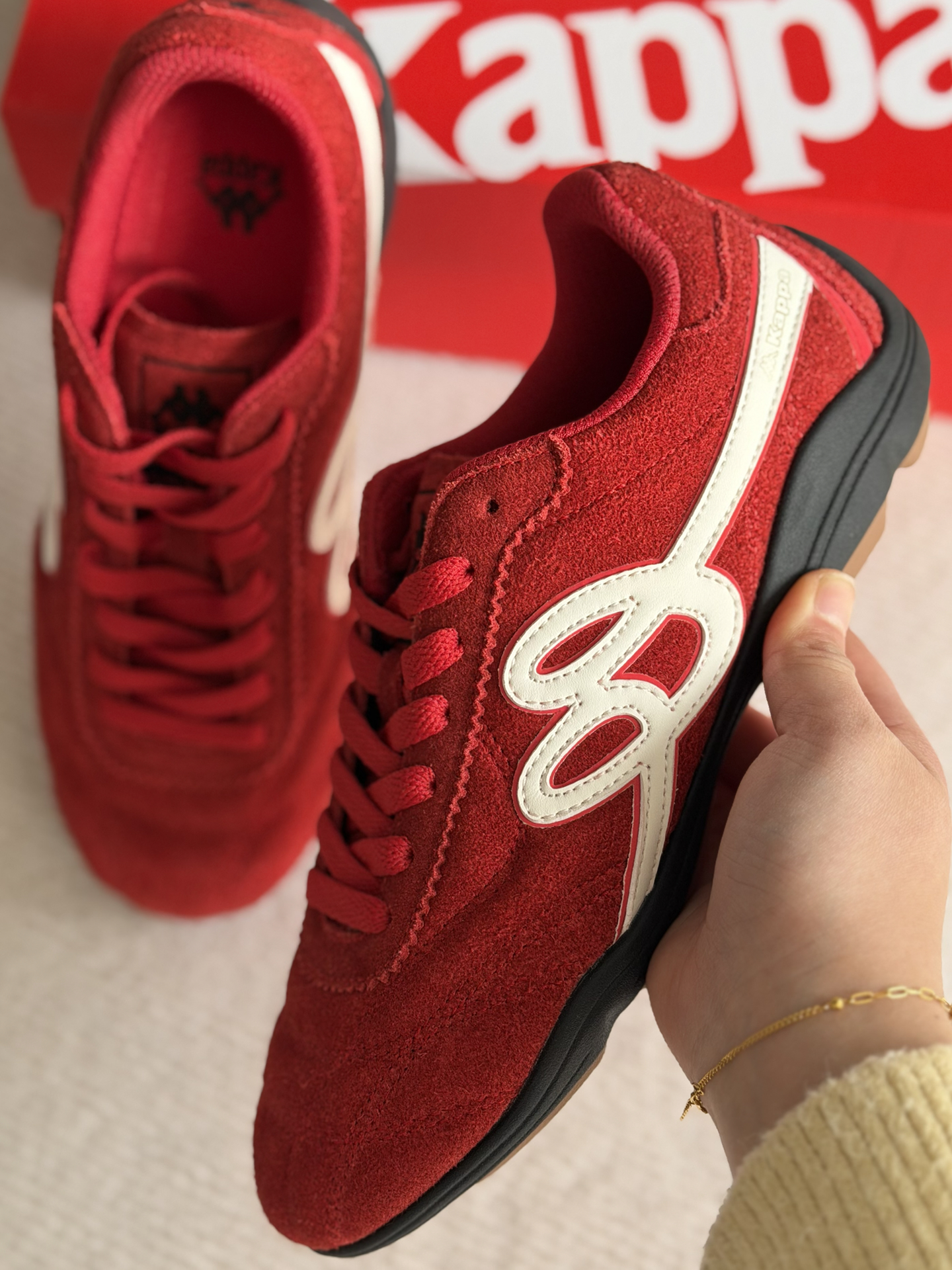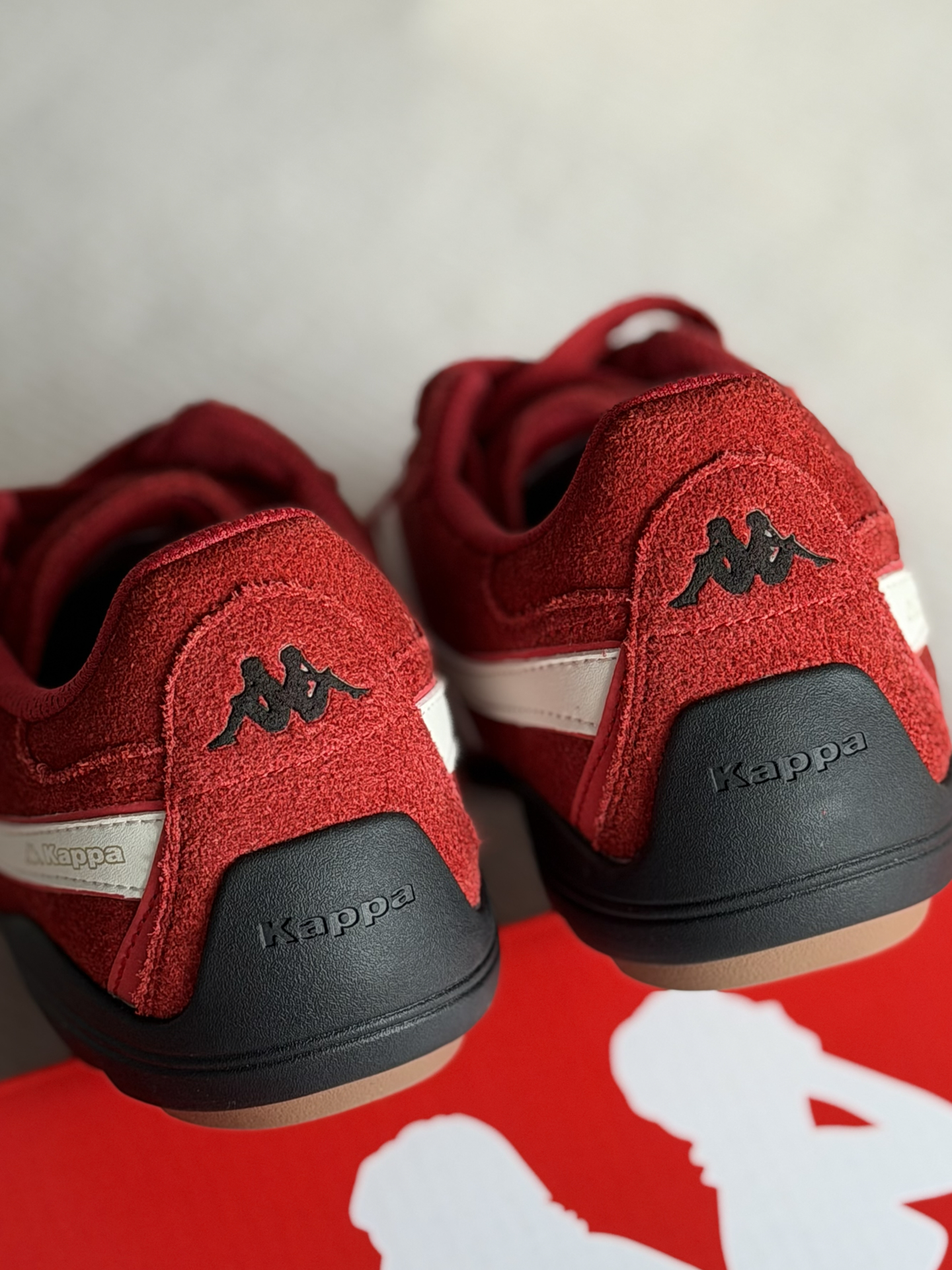 这款kappa卡帕德训鞋 红白的配色 看上去很喜庆 就很适合在即将到来的新年穿着 反毛皮的鞋面 有着高级的质感 它的脚感蛮舒适的 久穿不累脚 搭配牛仔裤 阔腿裤 卫裤都很好看的! #kappa #背靠背 #Kappa情人结 #送对礼物好事成双 #马年限定穿这双