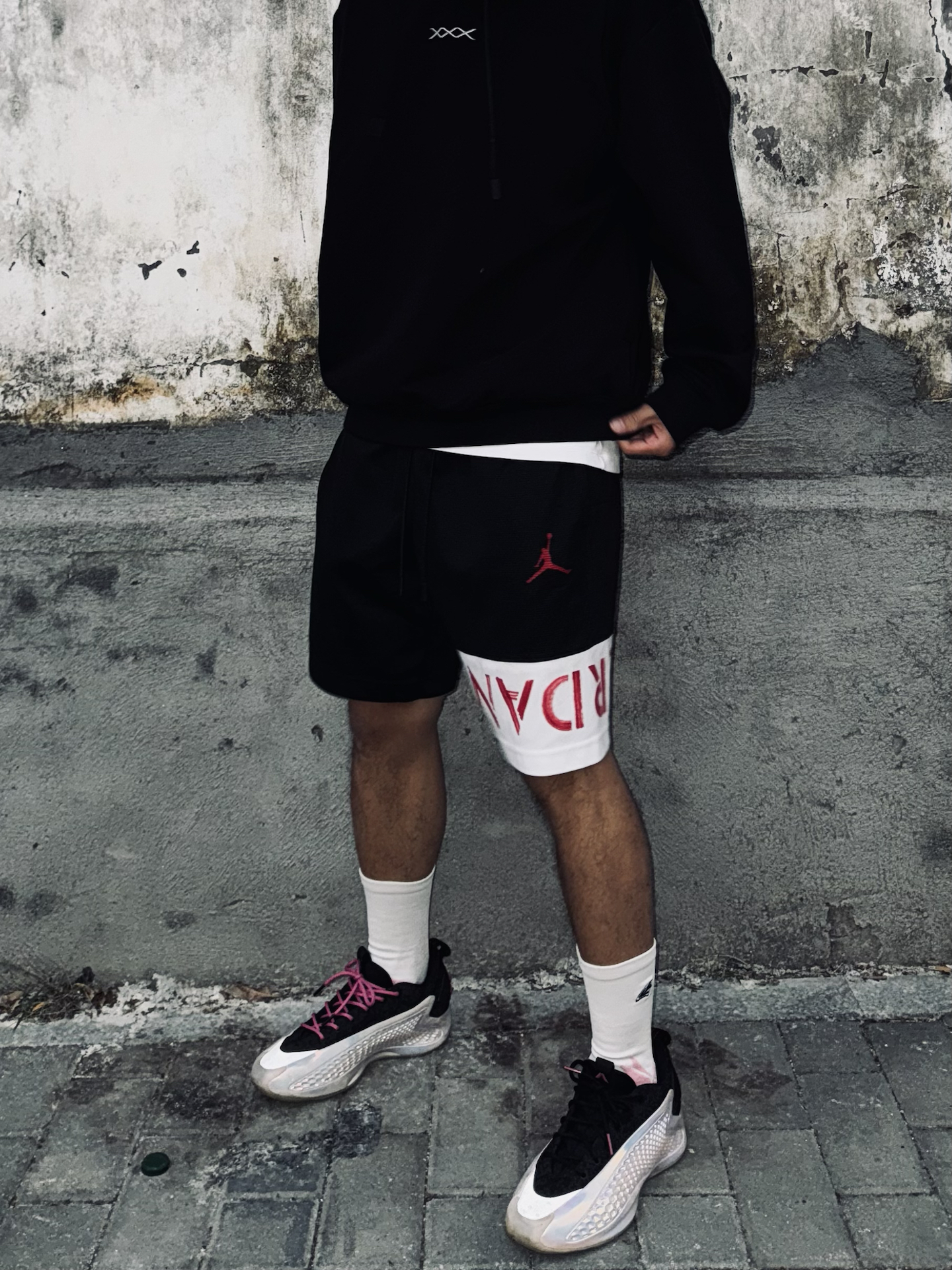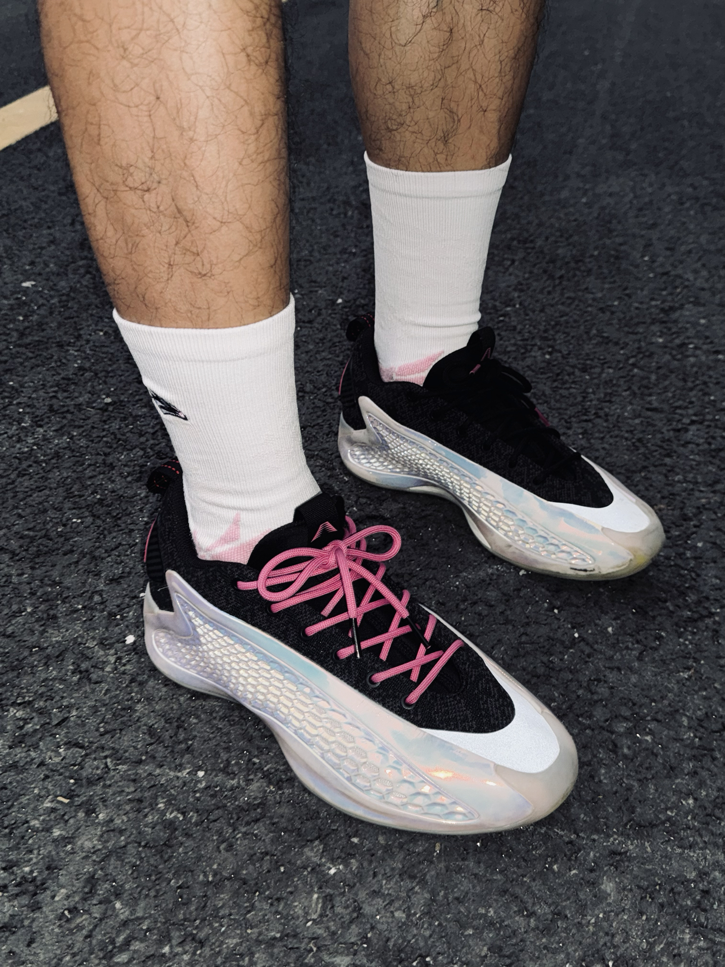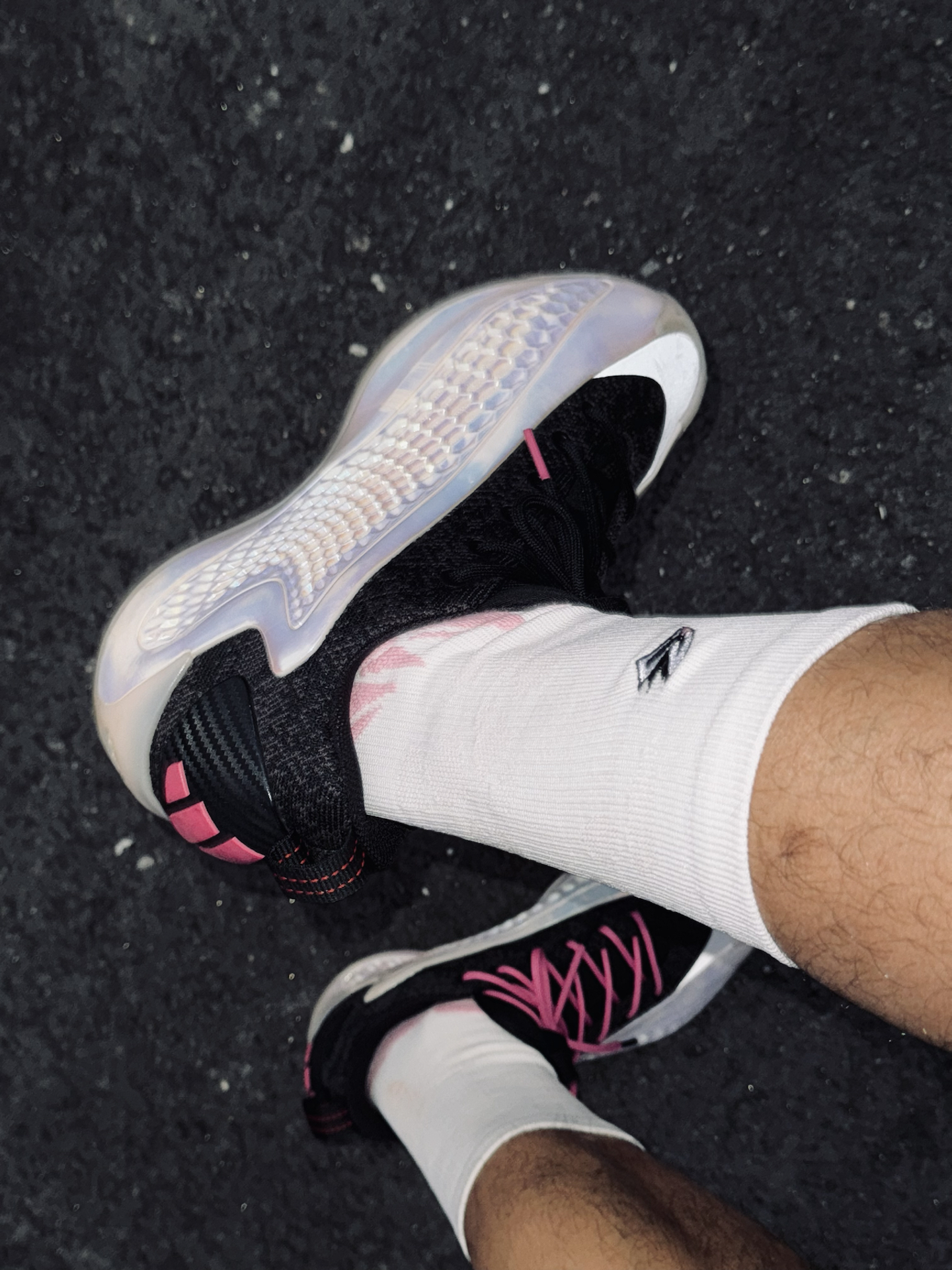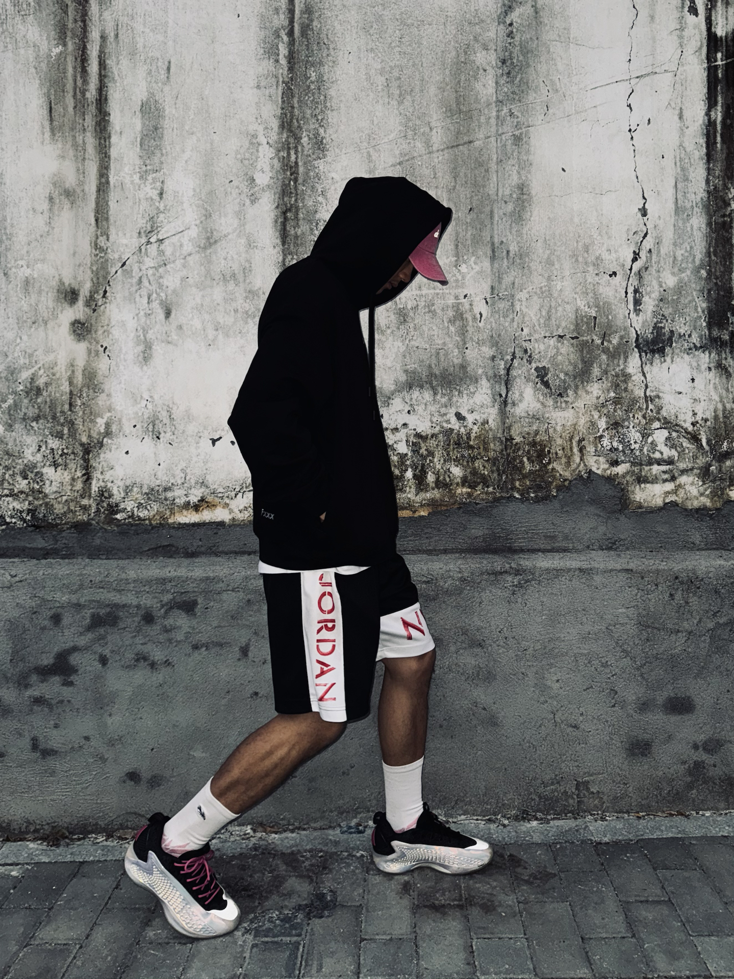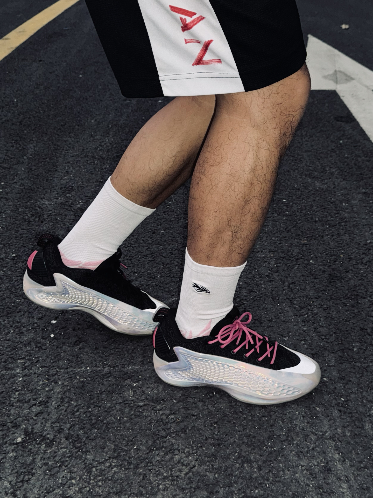 今天走黑白粉配色🖤💗 黑色卫衣搭配Jordan短裤,用alo粉色帽子和脚上的AE1蛇年限定做呼应,连袜子也选了粉色,整体细节感直接拉满。 今天上脚的是维动隼球袜,轻薄款穿着很舒服,运动时也耐磨。袜口的隼刺绣很有辨识度,脚踝处做了加厚设计,像羽毛一样包裹住脚踝,运动时更有安全感。 这一套不管球场还是日常通勤都能穿,出门就是全场最亮的仔✨ @维动VEIDOORN #拜年战鞋极限N选一 #新年...