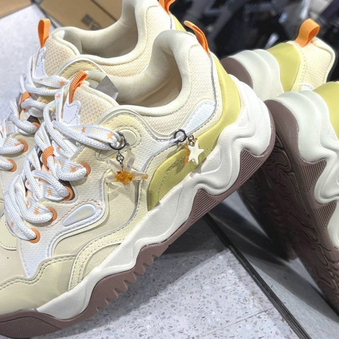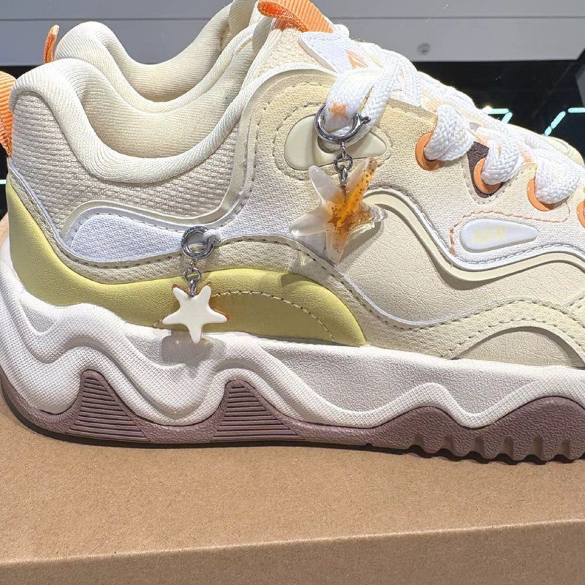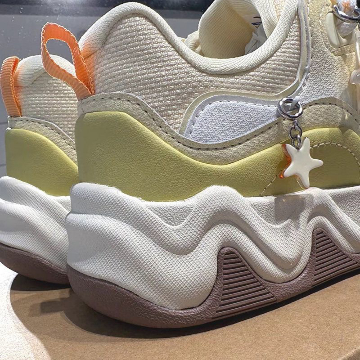“🍦奶油系复古天花板!这双安踏小海星的白是带点暖调的米白,配合做旧中底,完全不死板,怎么搭都自带温柔滤镜。Cleanfit衣柜必备单品+1!”
