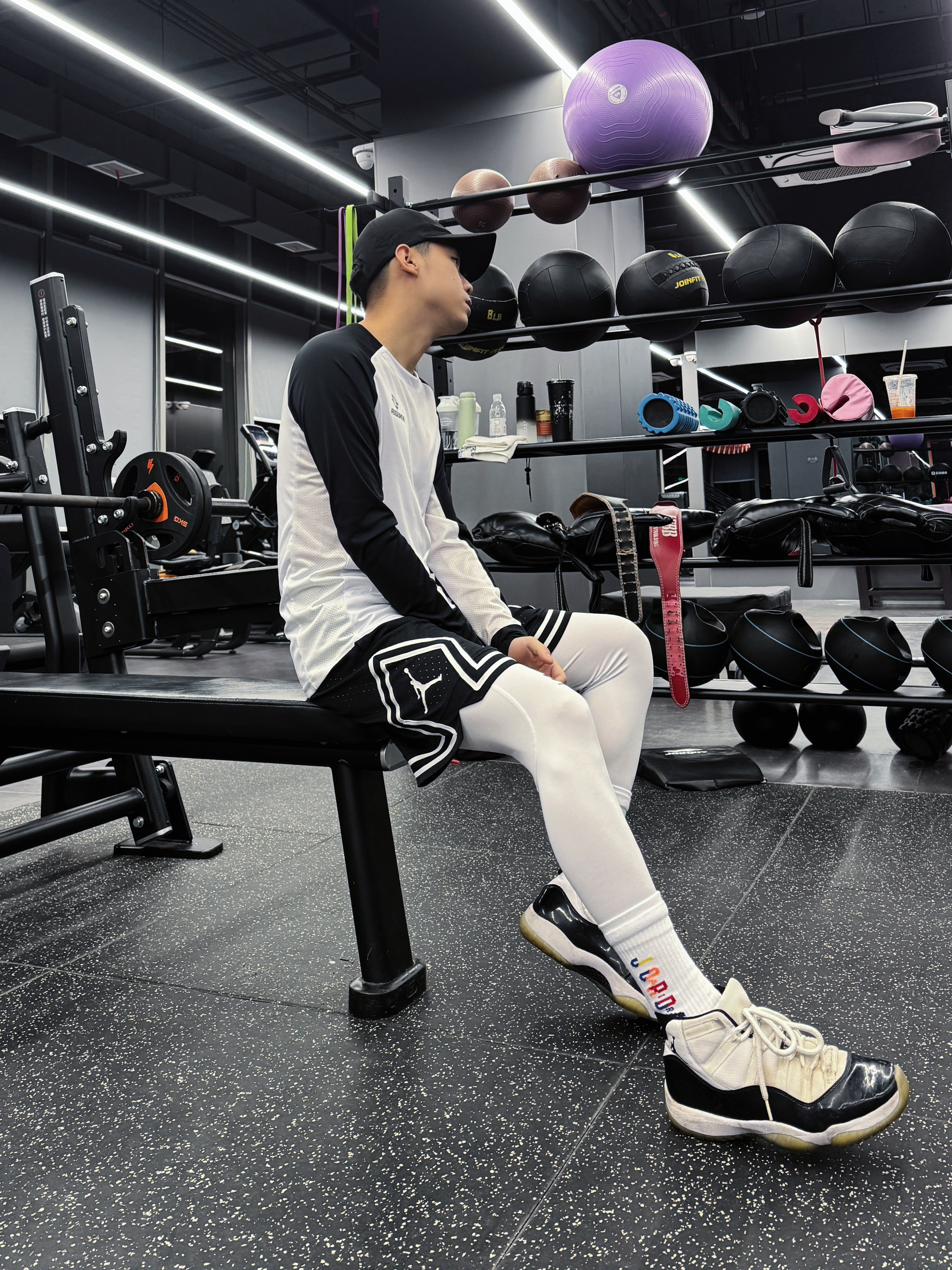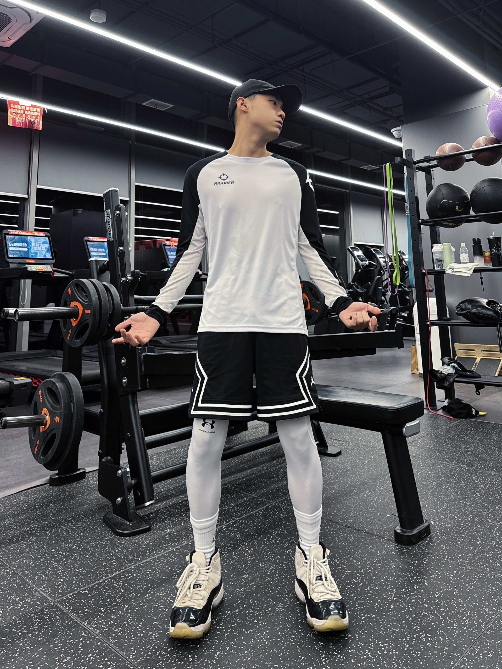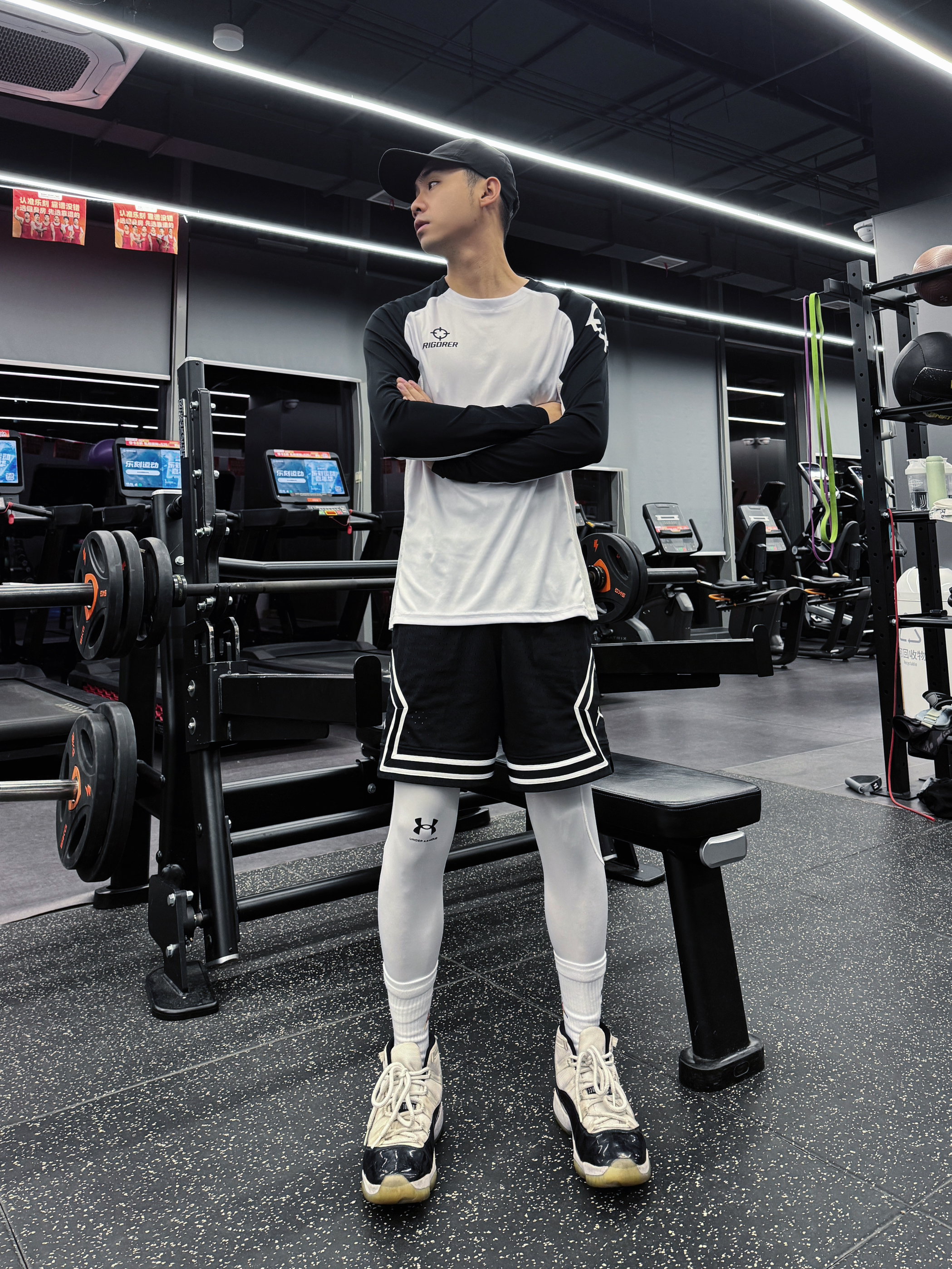 hello大家好我是辣堡 今天又来健身房撸铁咯 上身一件黑白长袖,下搭同色系aj短裤 不过天确实冷了,为了更好的训练效果 下身内里还穿了一条安德玛的高弹,可能还有人不知道它的作用 在我们平时多训练中穿高弹可以减少运动中肌肉的抖动🫨,增强血液循环的同时降低乳酸的水平 还可以减轻运动后的肌肉酸胀,所以我一般训练都会穿💗 上脚的是我的健身好伙伴hh👟是aj11康扣 冬天穿这双保暖很不错,并且健身房穿这...