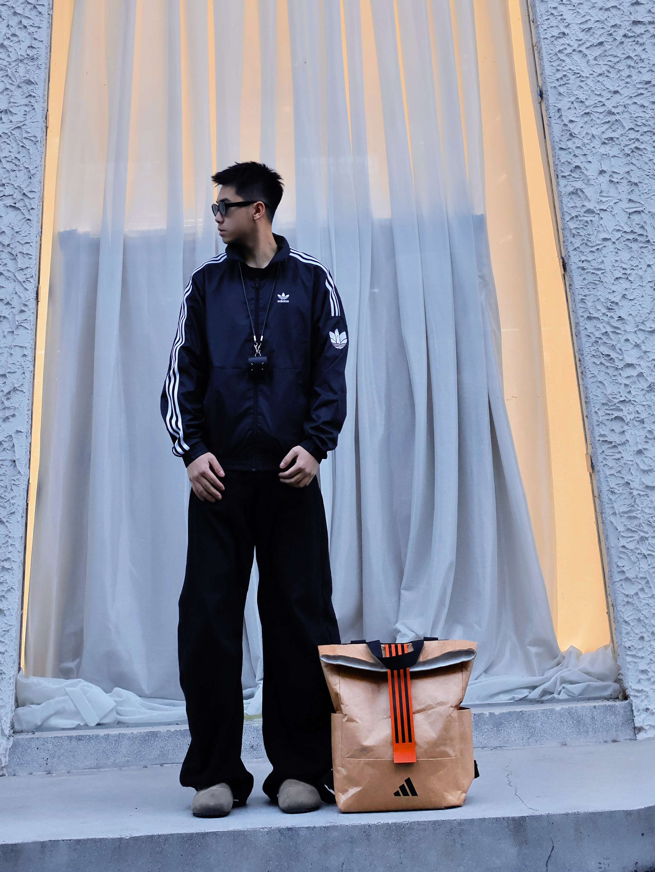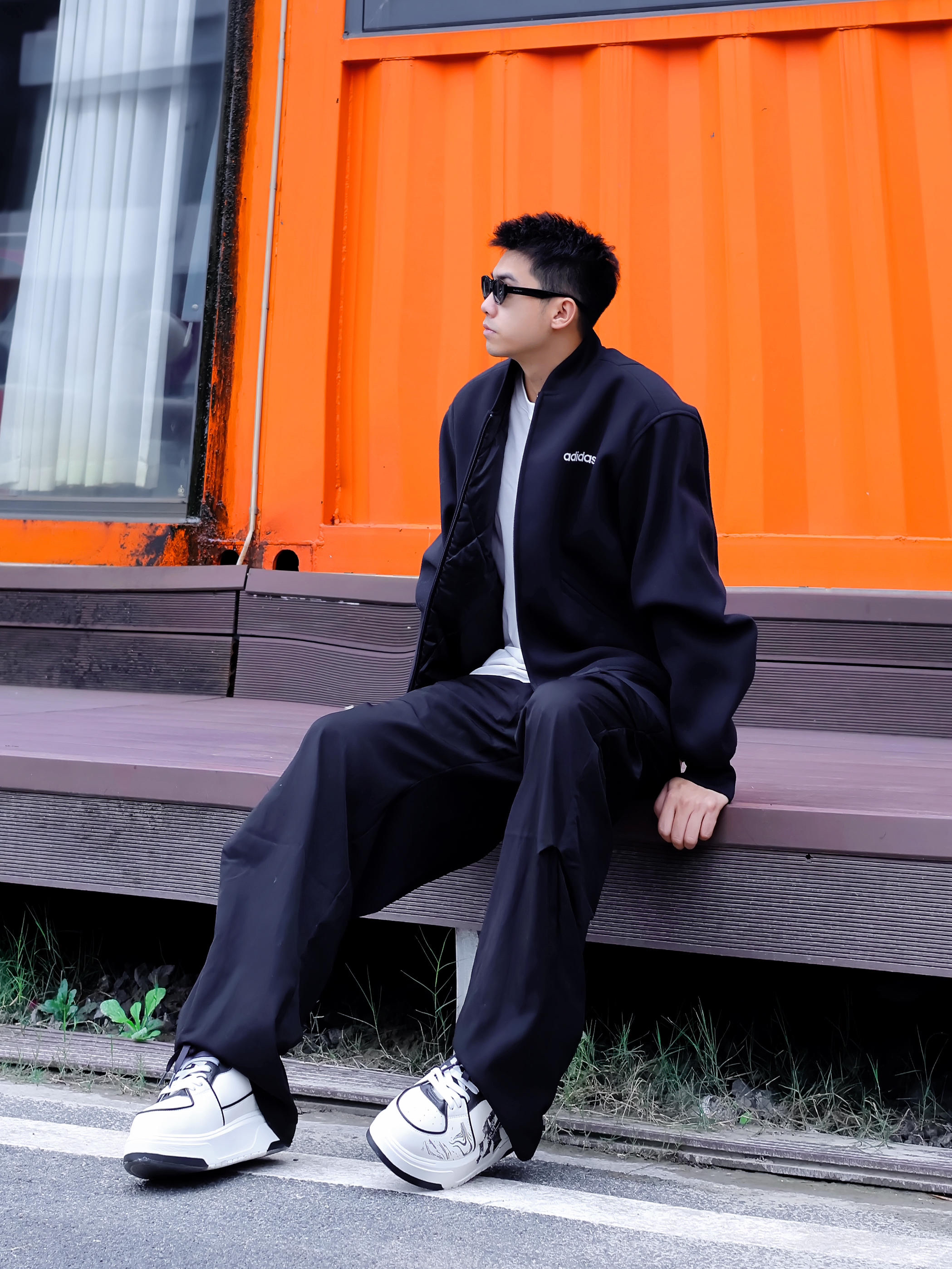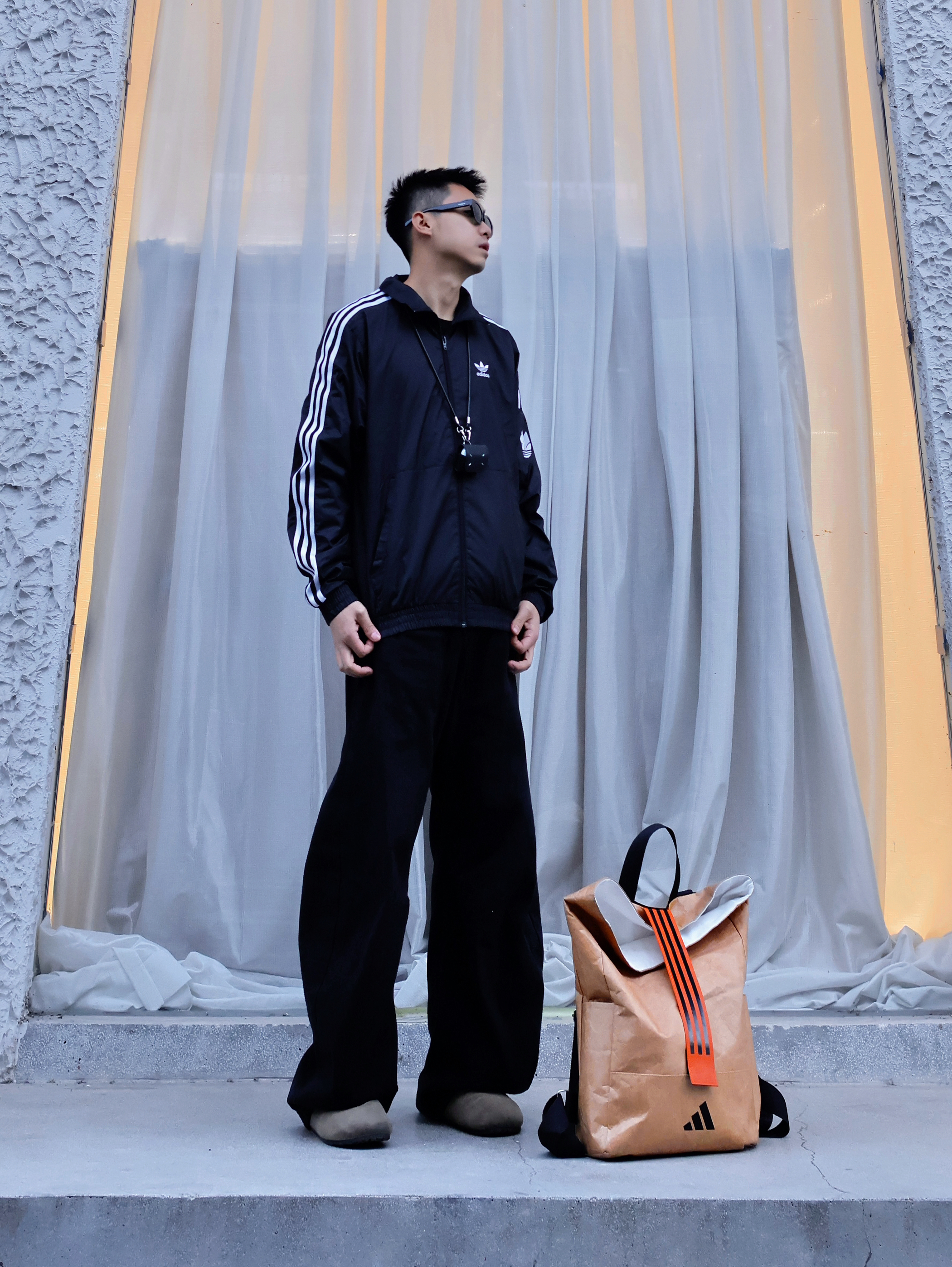 美式男高穿搭来咯 今天这一身尊滴帅到没朋友啦 上身一件经典黑色三条杠adidas的夹克 简约的黑色加上利落的潮流线条感很酷⚫️ 搭配一条同色系阔腿的裤子拉一下身材比例 上脚一双勃肯鞋点缀出这一身的慵懒感 另外选择了adidas的牛皮袋双肩包作为穿搭小亮点 这一身简约又耐看,穿搭也不用费力