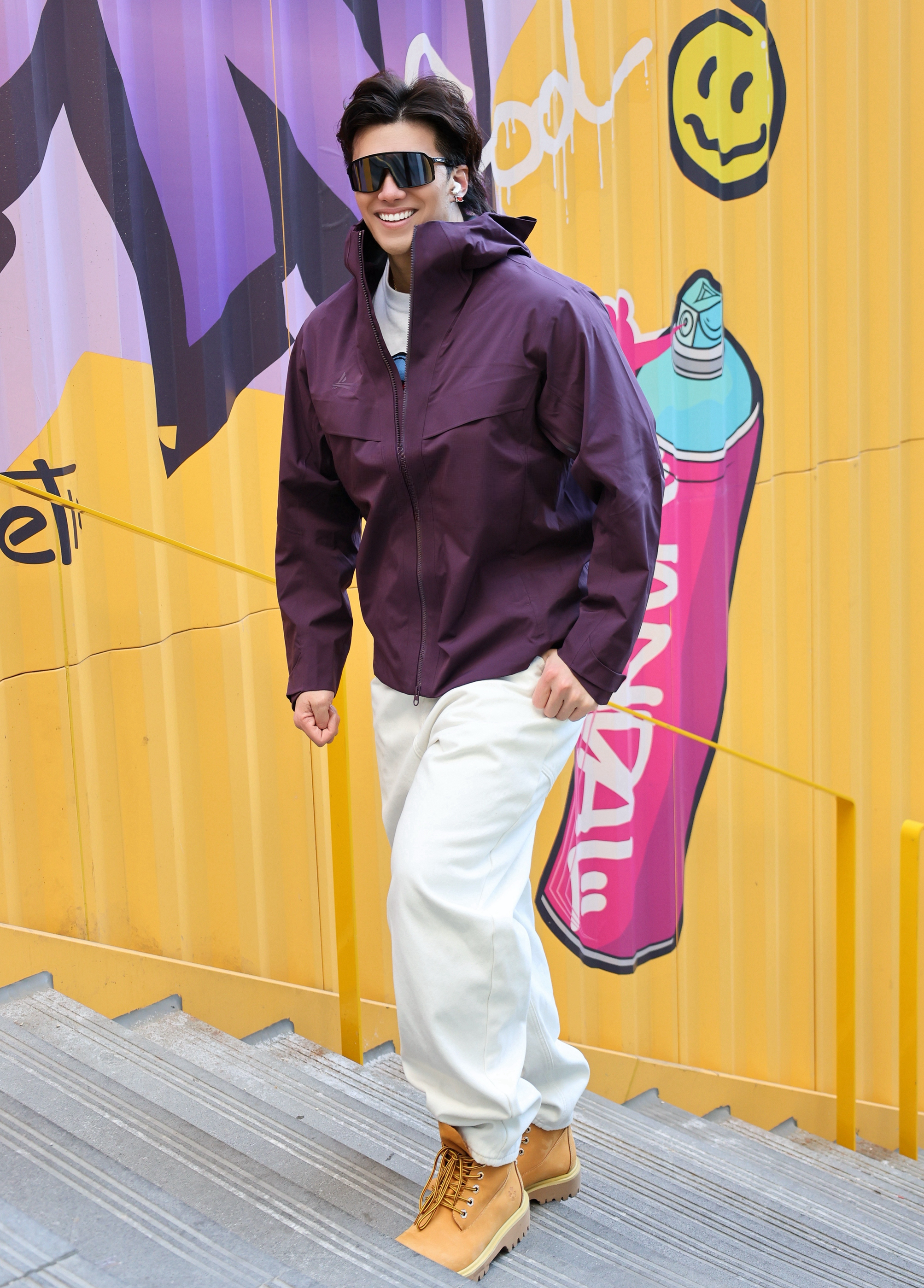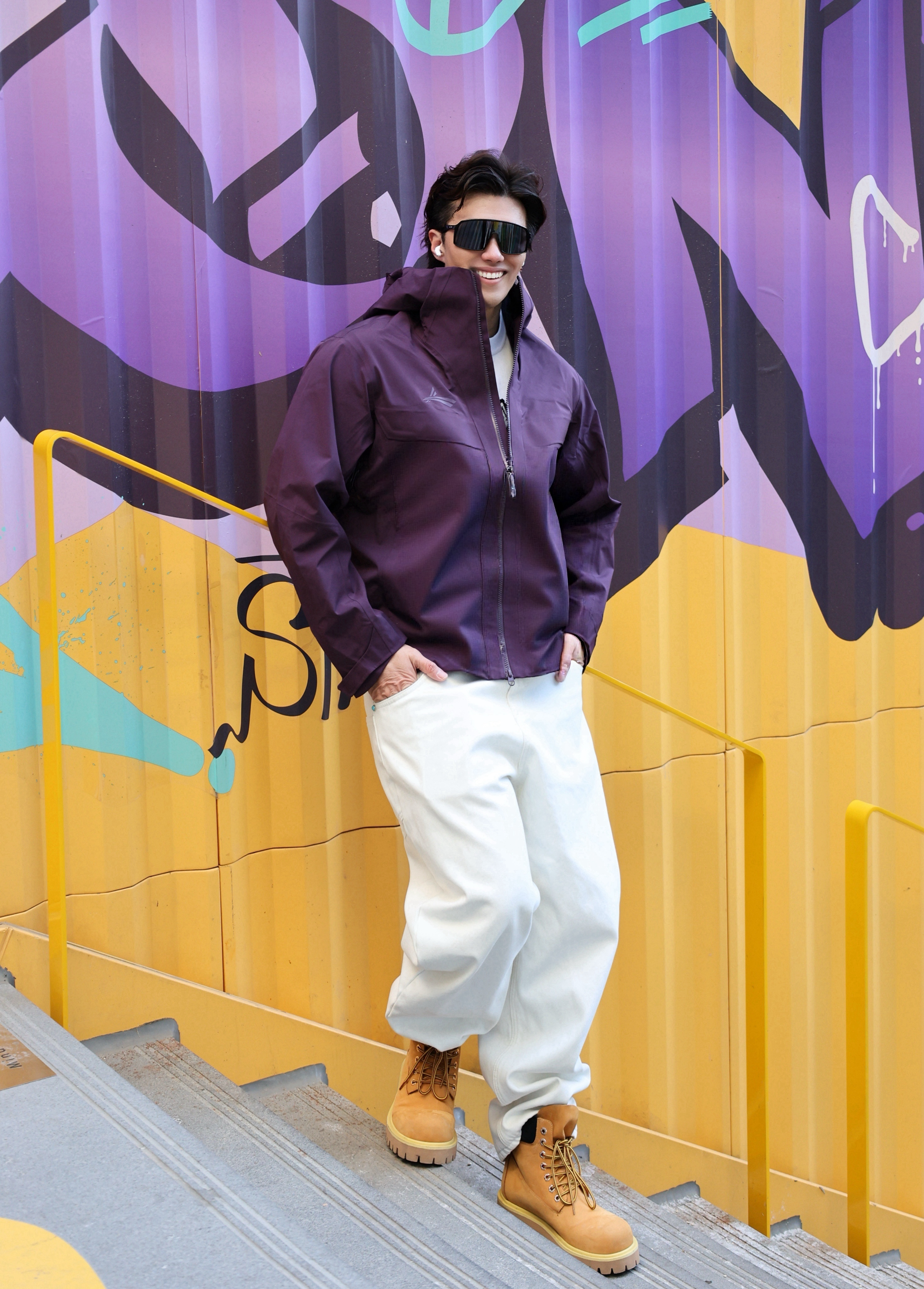 今天这套直接锁住冬天运动舒适区。上身air-one-FL紫色夹克,防风防水还透气,起风时拉链一拉,暖意立刻裹住全身,运动出汗也不闷。下身配条白色休闲长裤,版型利落,给上半身的亮色留足呼吸感。大黄靴一蹬,硬朗工装味立刻拉满,踩在地上踏实有劲。 一套搭完,户外徒步或城市穿行都能轻松拿捏。你们冬天最爱搭哪双鞋出门?👇