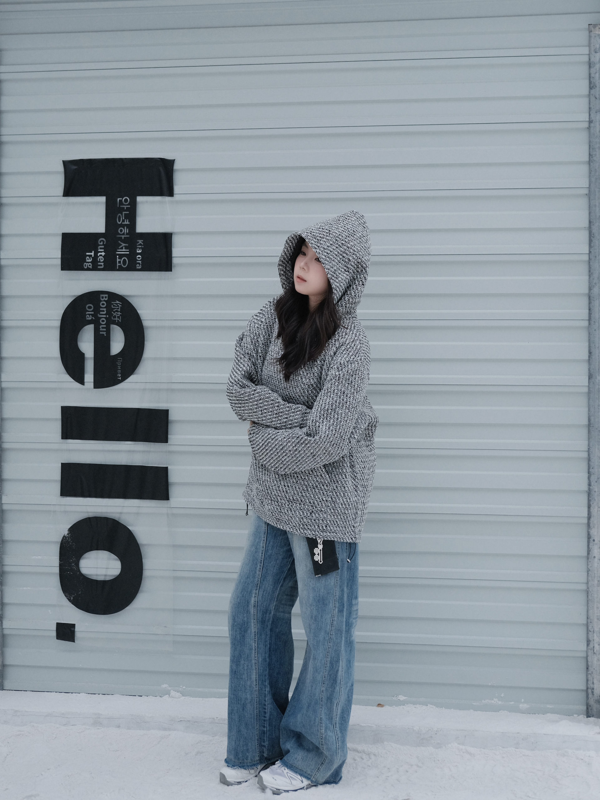 小香风卫衣+牛仔裤👖 穿出不一样的慵懒感 卫衣的面料是肌理感颗粒的 板型宽松百搭不挑人 随便一搭冬天的氛围感就来了