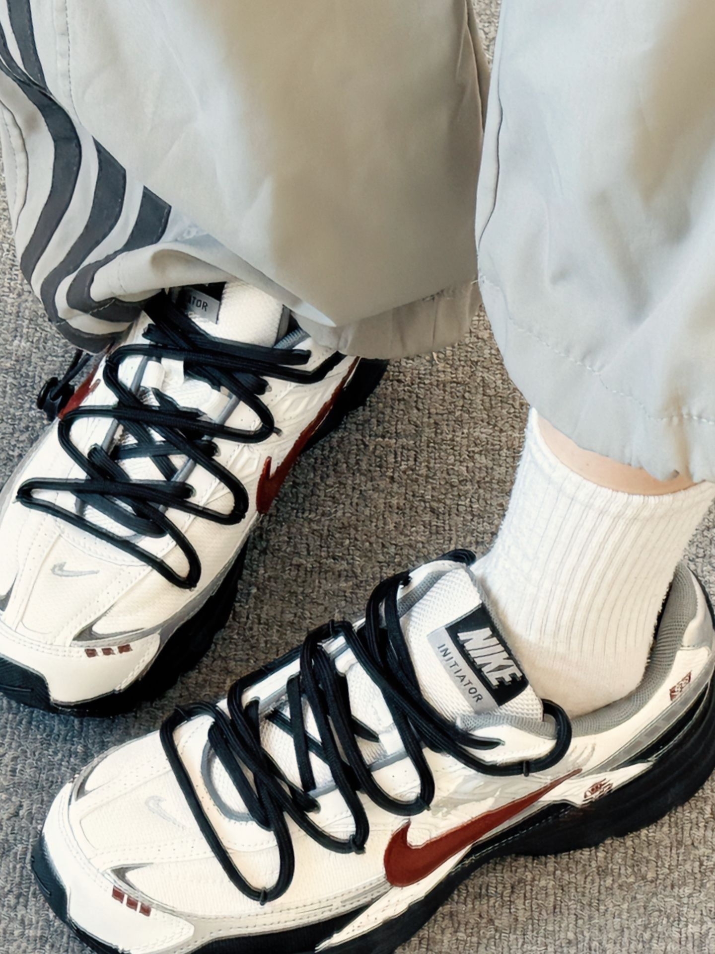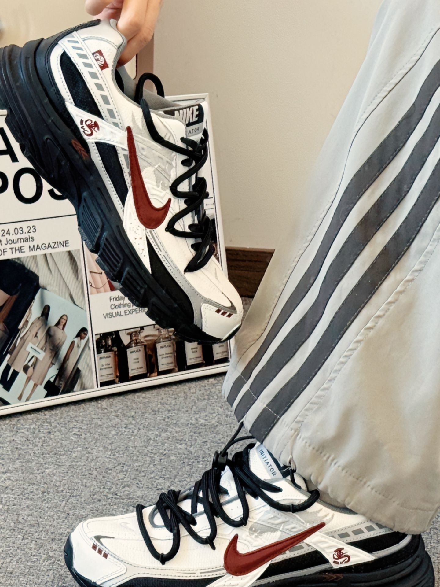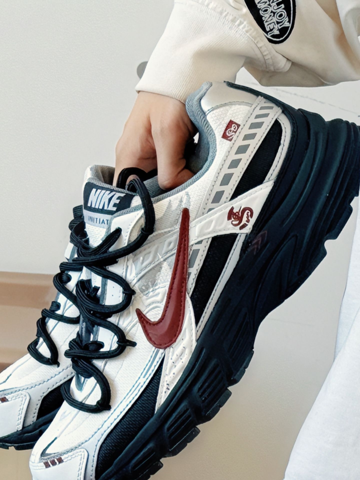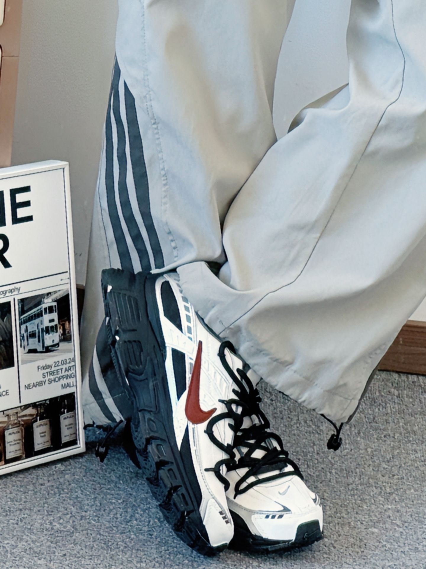 逛老巷时阳光穿过枝桠,落在鞋身的银白亮面上晃得人眼亮✨ 走在路上,软弹中底托着脚感很稳,搭配浅灰加绒阔腿裤和米白卫衣,被路边店主夸配色舒服,只是蹲下来系鞋带时,才觉出鞋身有点重👟 尺码选正码就刚好,美中不足是深冬穿网面会有点冻脚,你们觉得这双鞋子搭配什么衣服会更好看呢❓#耐克nike #感谢得物官方送我上热门 #新年宝藏百搭老爹鞋 #今天只晒鞋 #我要上热门🔥