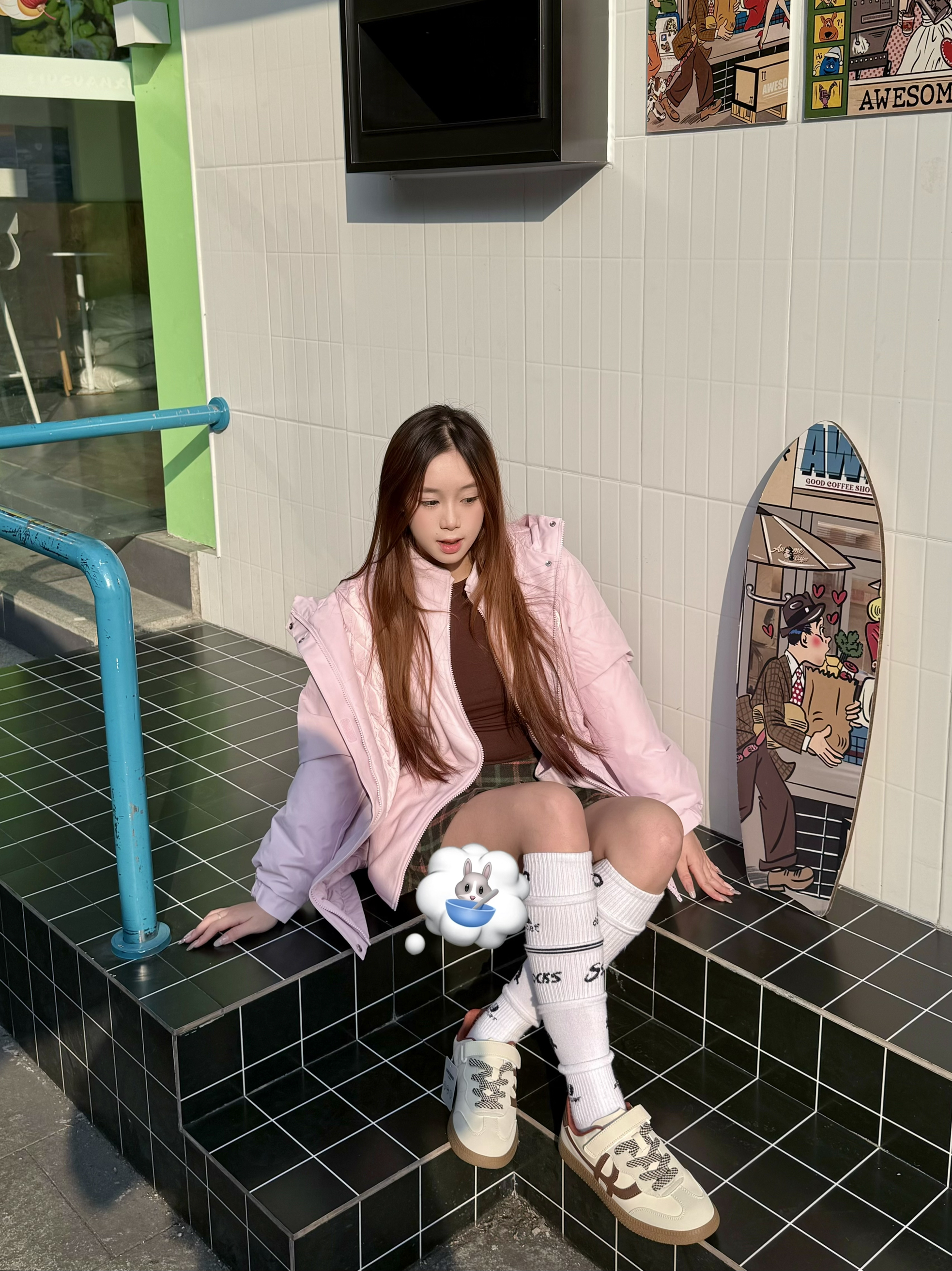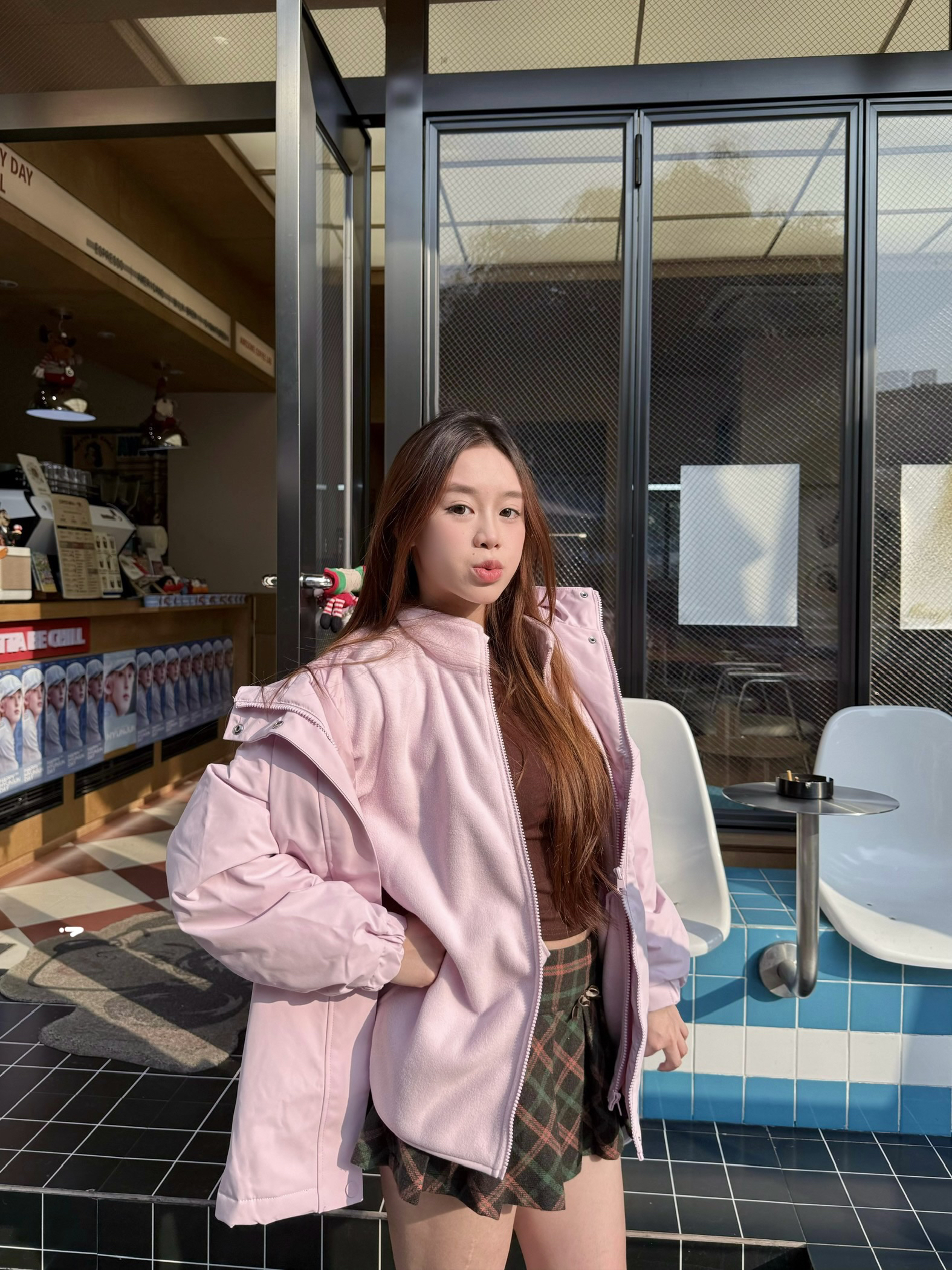 买到了超满意的三合一冲锋衣! 巴拉巴拉这件粉粉嫩嫩的,兼顾保暖和时尚 内胆毛茸茸的,几度的天气也能穿 下装搭配短裙➕德训休闲鞋👟 这套出街就是很懂穿搭的感觉谁能懂呀 而且粉粉嫩嫩的颜色情人节过年穿也贼有面子啦