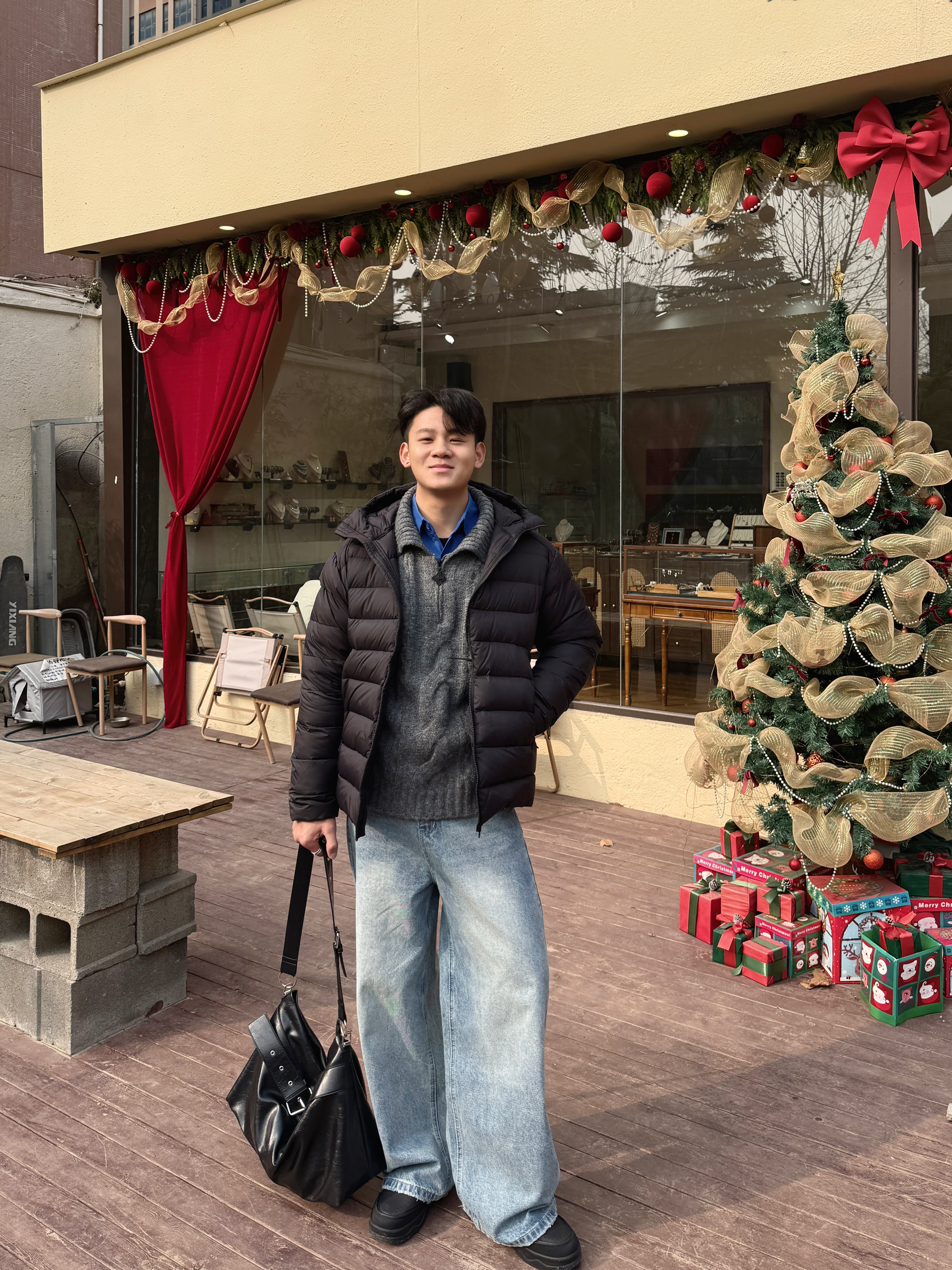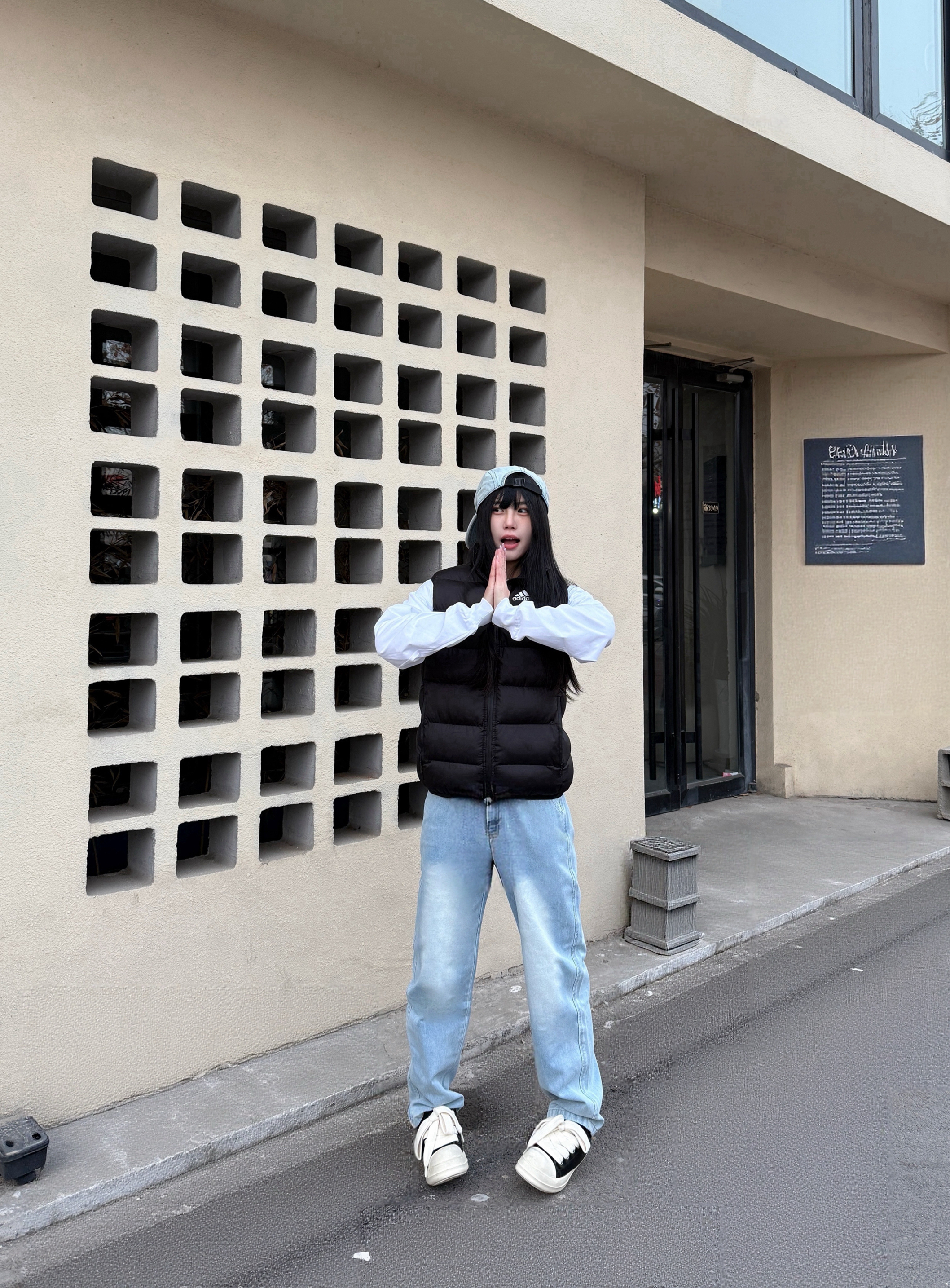 新年当然要穿的简约又高级 卫衣➕马甲➕牛仔裤高级感满满 这条裤子的设计感就很不错 浅色系就很清新有少年感 抽绳设计也很方便 搭配一个帽子潮流感十足