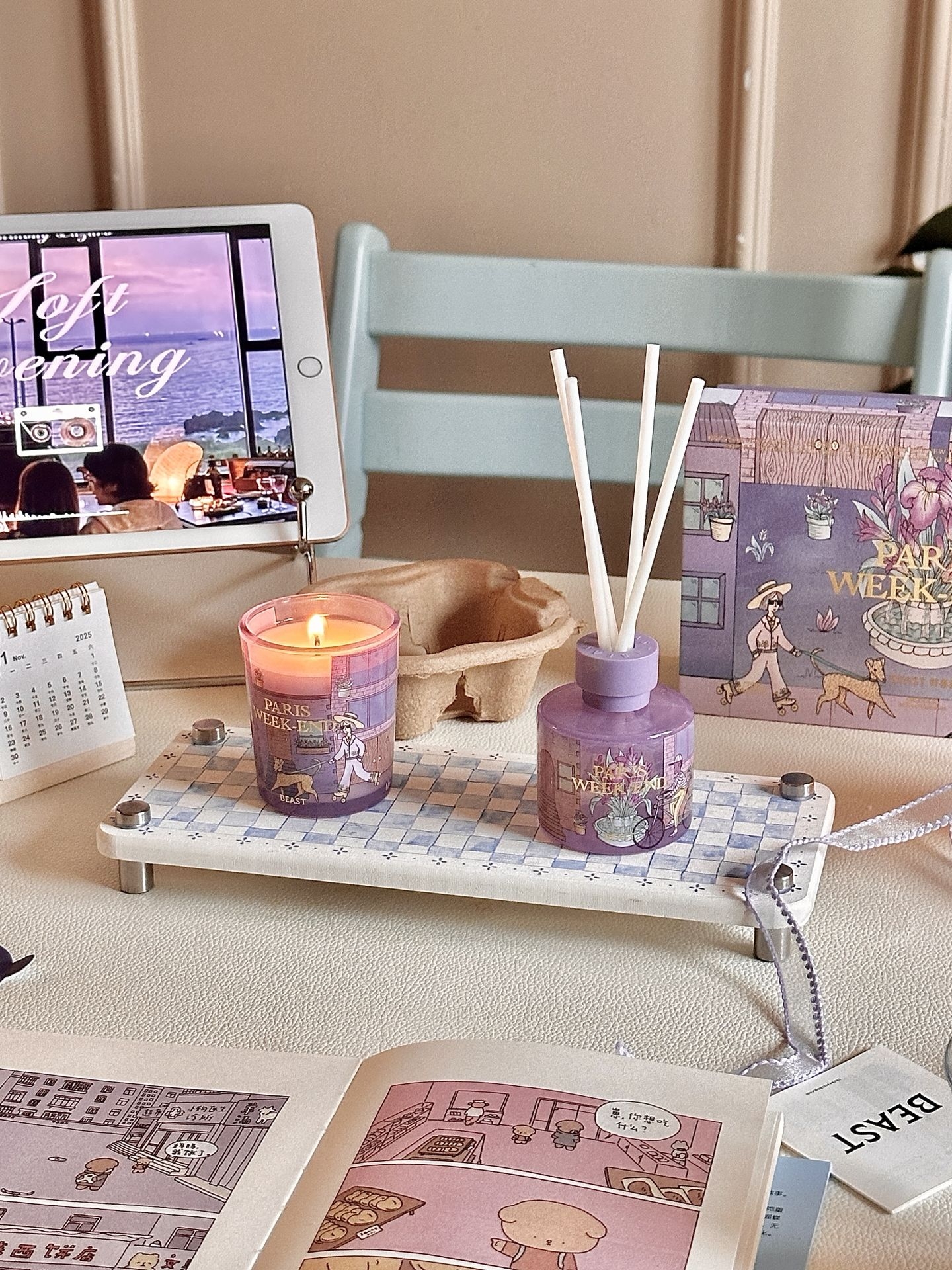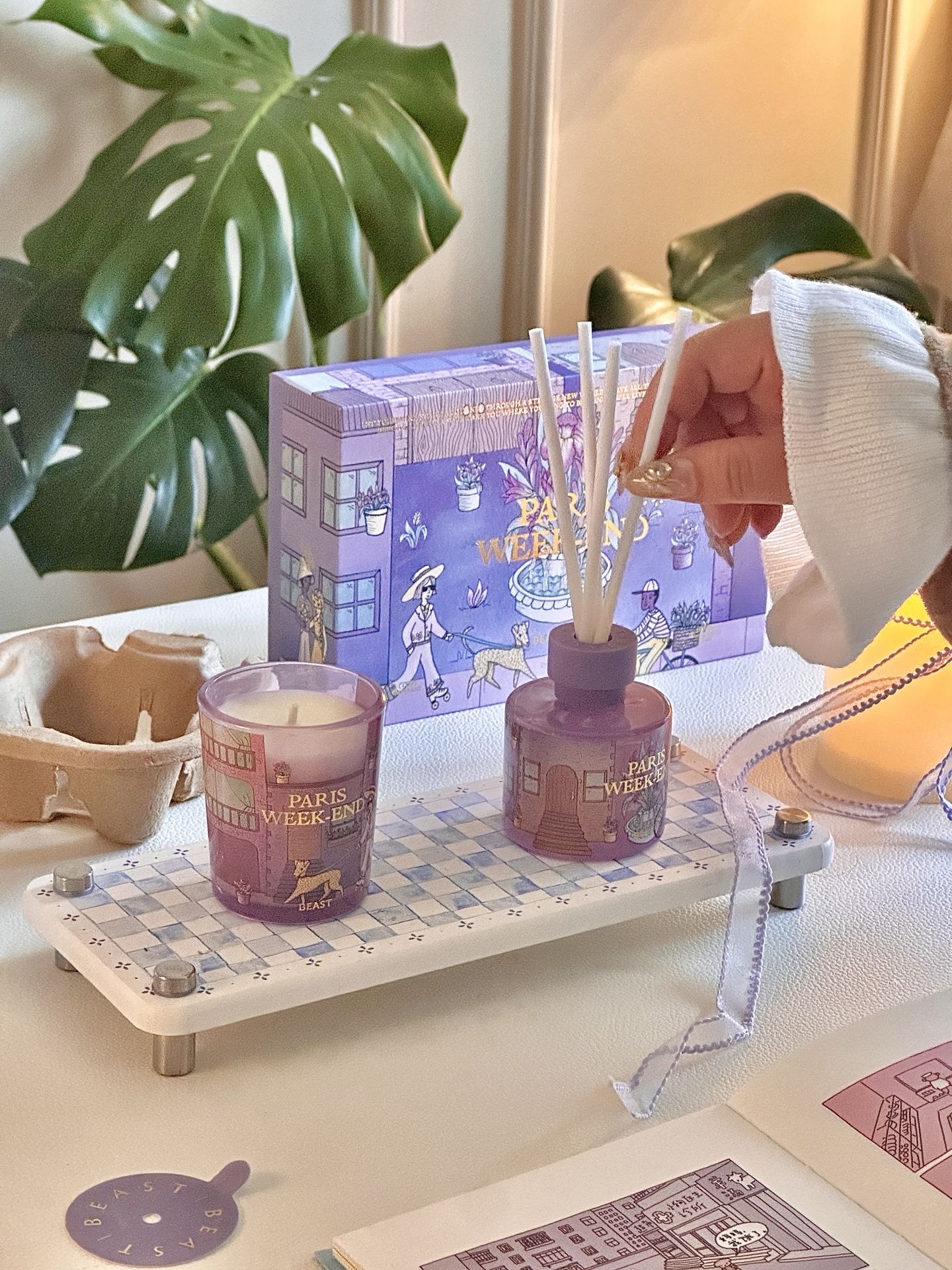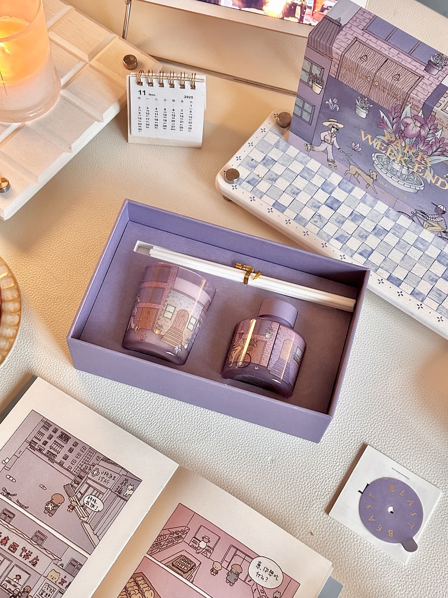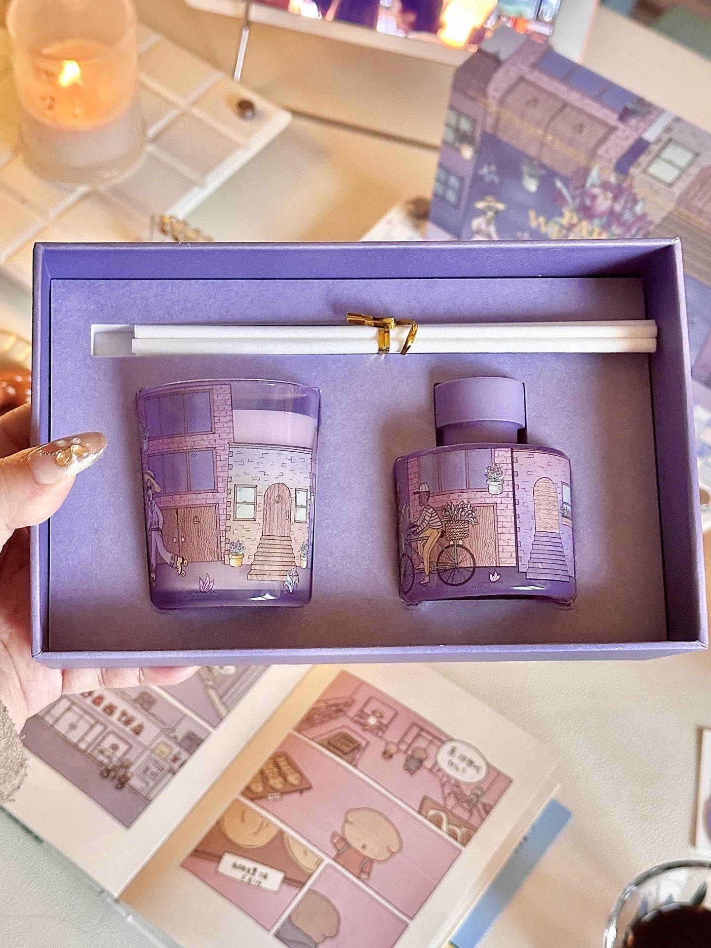 我家秋冬氛围已就位~是紫色的温柔感 不得不说,野兽派的香薰很对我胃口 这次买的好好闻💜是那种很高级的木质调 还有巴黎街头印在蜡烛和扩香瓶上✨ 佛手柑、晚香玉➕雪松,温暖治愈 像在桌上放了杯热红酒🍷整个人都放松了 点上看书工作都好感觉啊,礼盒颜值也高 温柔的紫,用来给朋友当礼物也不戳啊💗 #家的秋冬新皮肤 #一闻倾心的宝藏香薰 #送给女孩子的宝藏礼盒 #双十一必入的生活好物 #野兽派 @得...