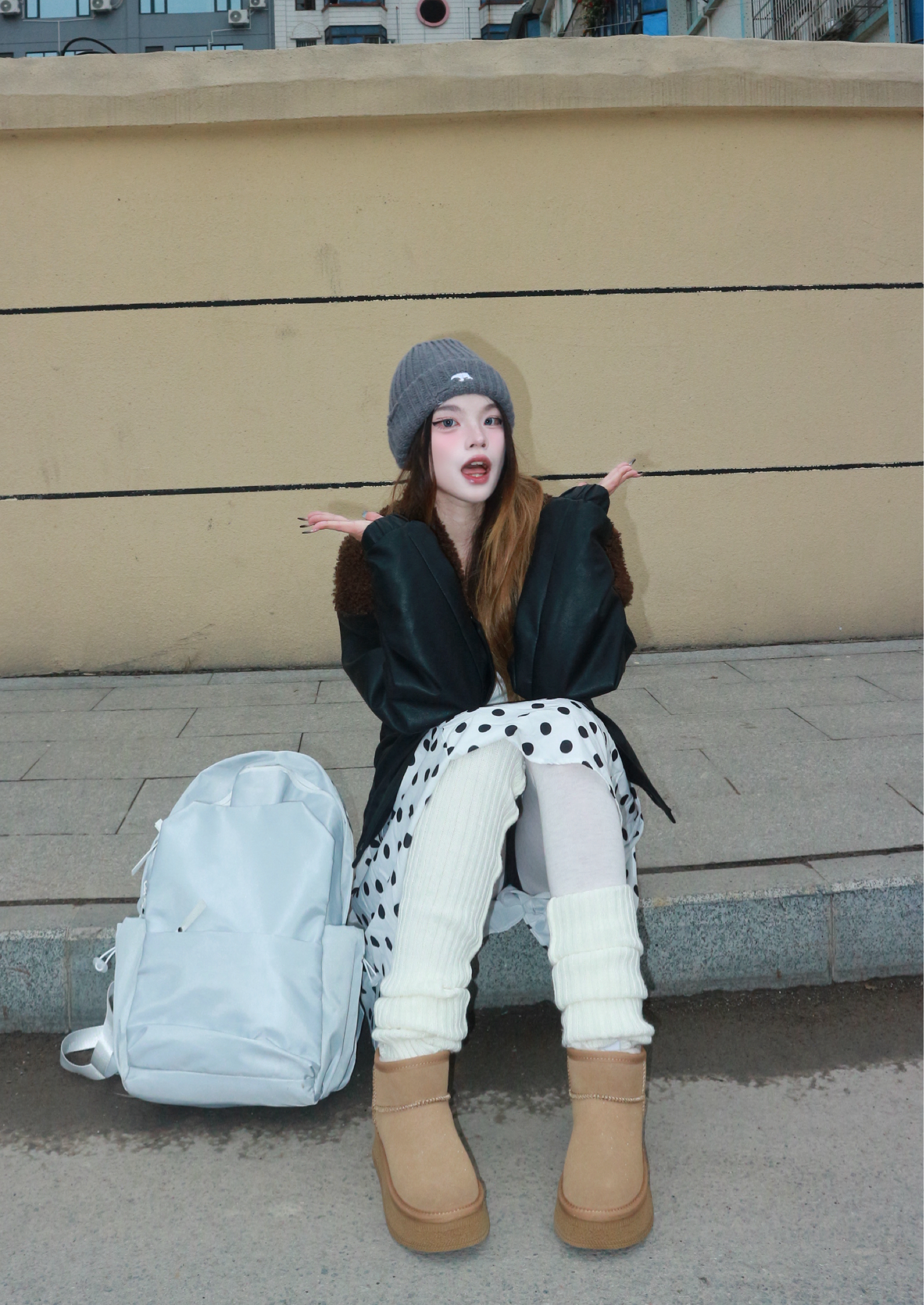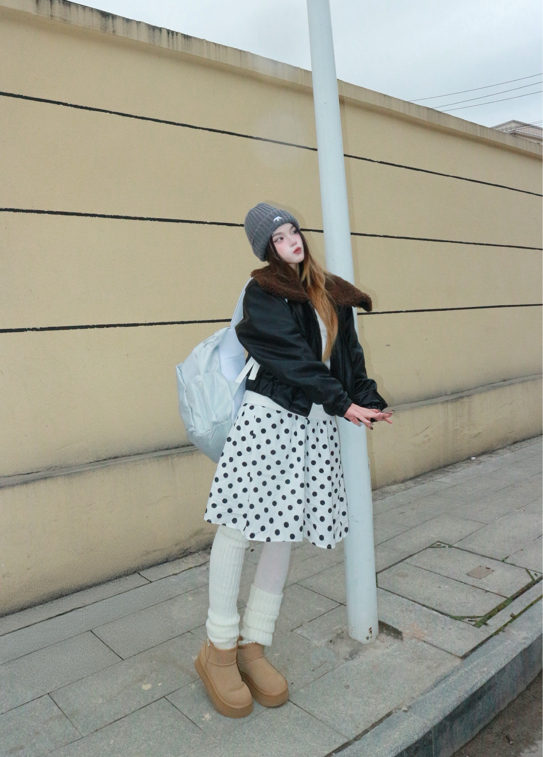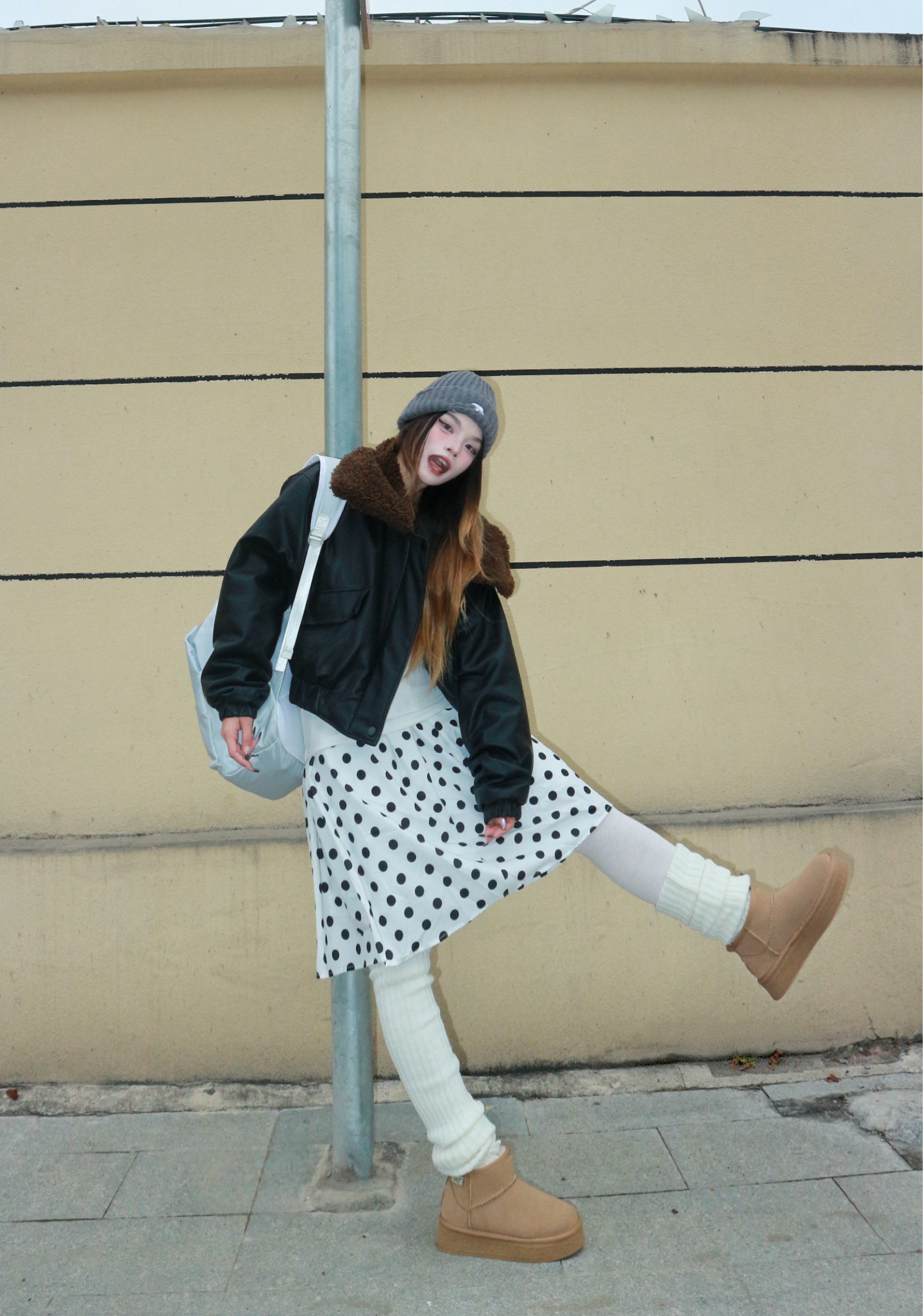 雪地靴做增高也太贴心了❄️ 5cm厚底直接把小个子的身高焦虑治好了,加绒内里暖到可以光脚穿,真的很厚💕 配堆堆袜+波点裙直接把甜酷感拉满。✨ 💡 我的使用感受: • 鞋底柔软有弹性,逛一天街都不累 • 鞋面防水防污,下雨天也不怕脏✅ • 浅棕巨百搭,搭皮夹克、卫衣都好看 我在南方几度的天穿 特别暖和🔥