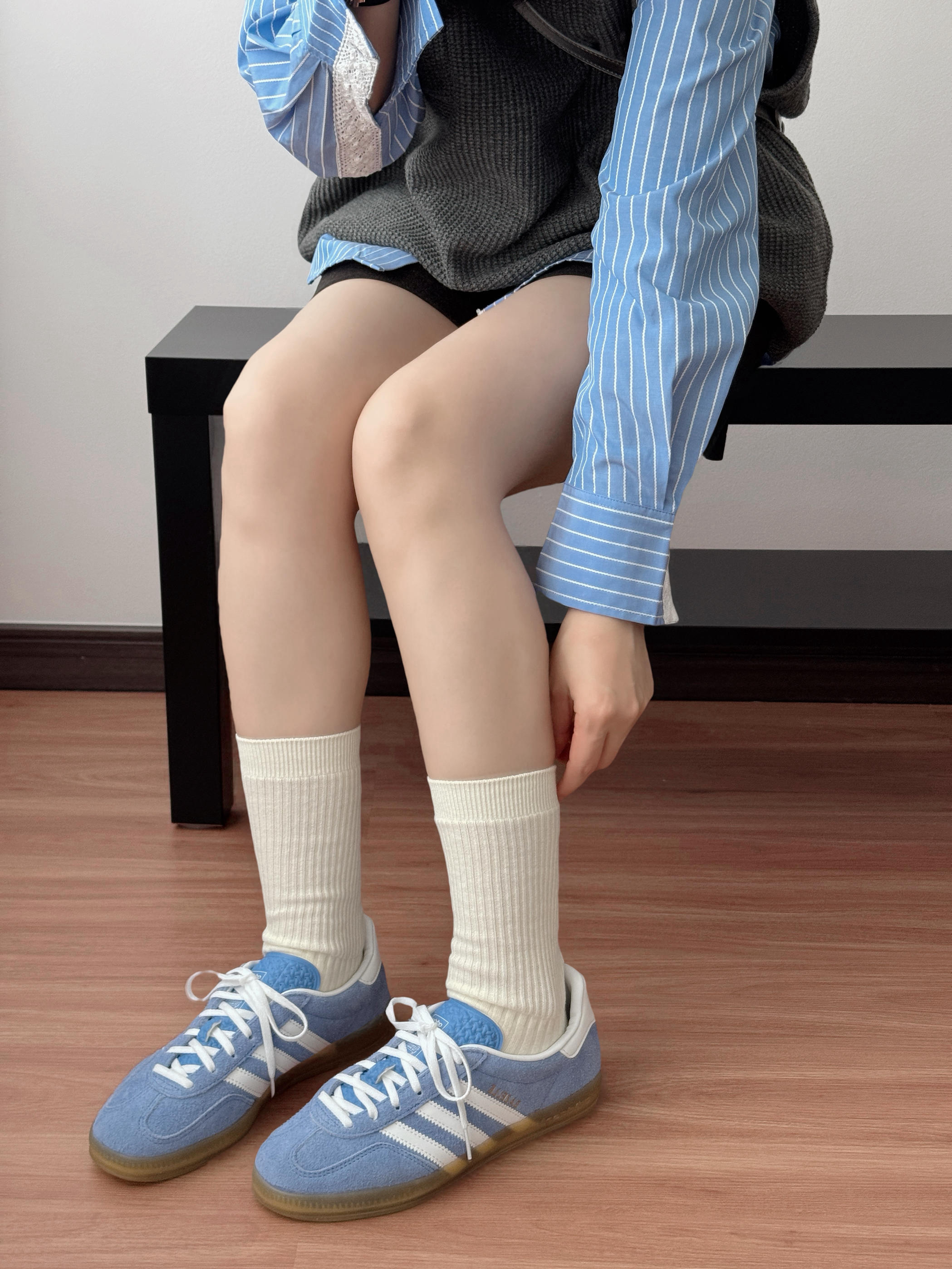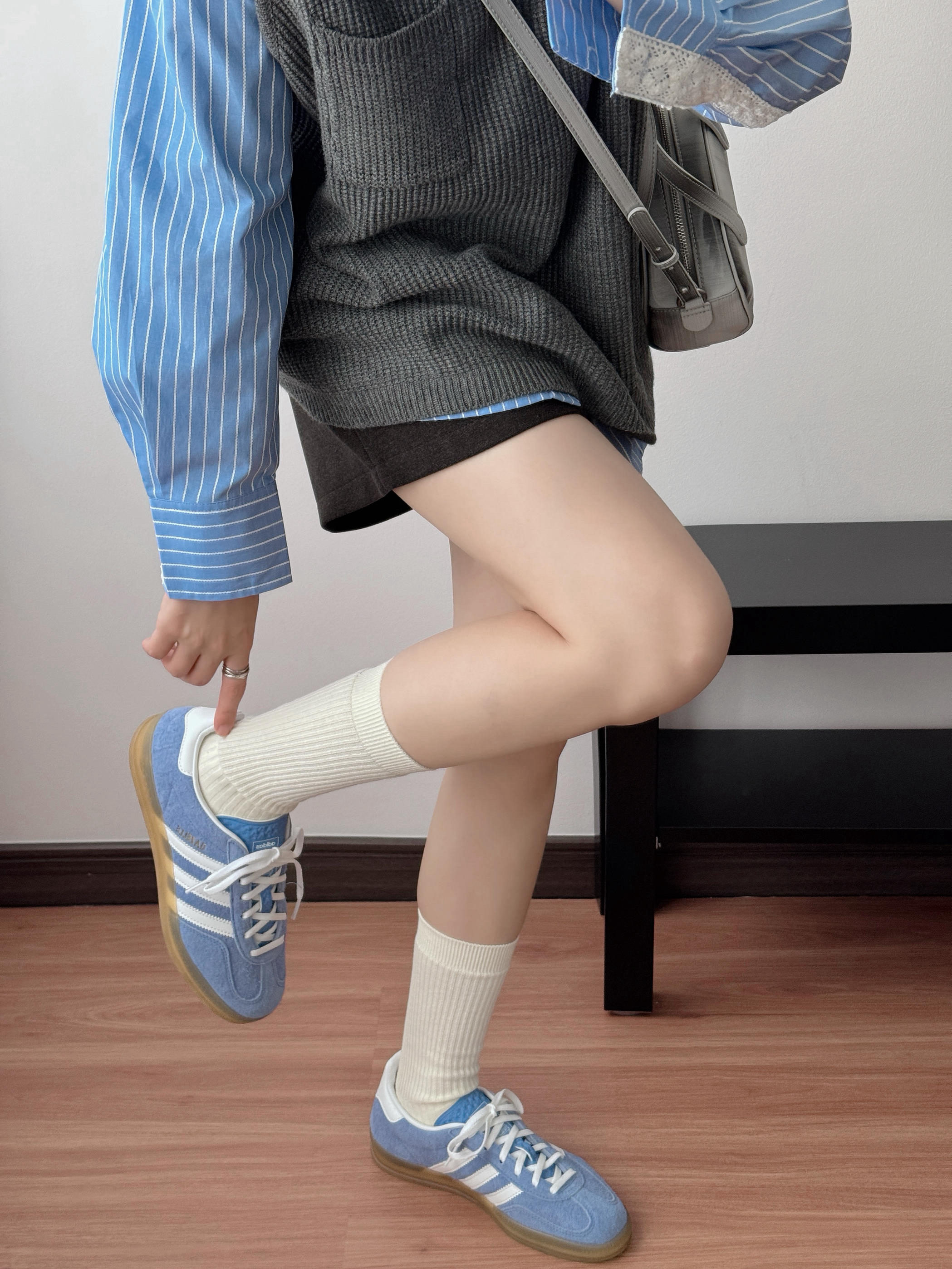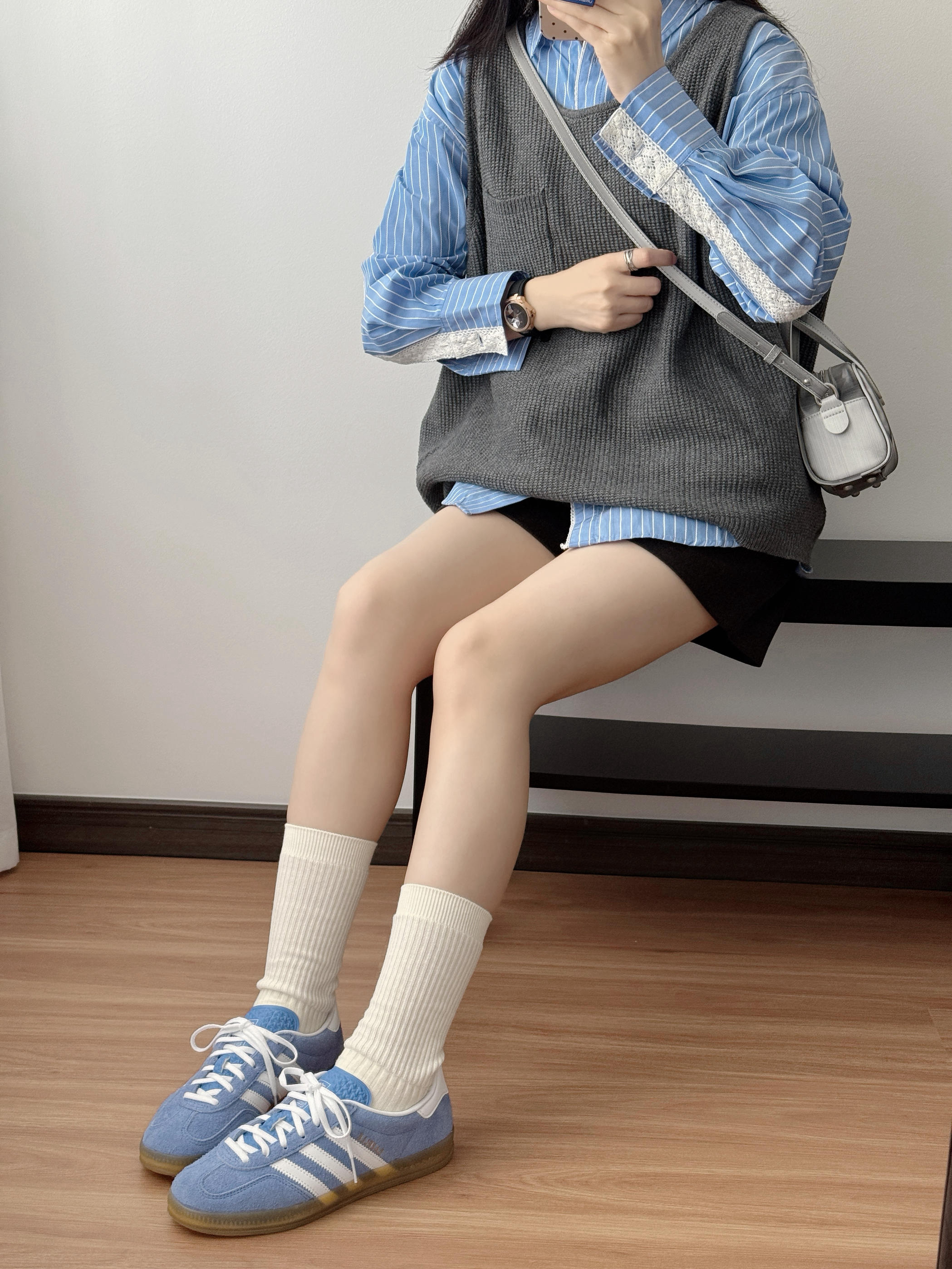 最近的新宠就是这双蓝白德训鞋 颜色清爽又复古,配堆堆袜+短裤 直接把腿长拉满,小个子狂喜! 重点是巨软巨舒服 暴走一天都不累~ 配牛仔裤、百褶裙、运动裤都好看💫 简直是懒人福音✨ 随便一套就能出门,百搭到想焊在脚上!