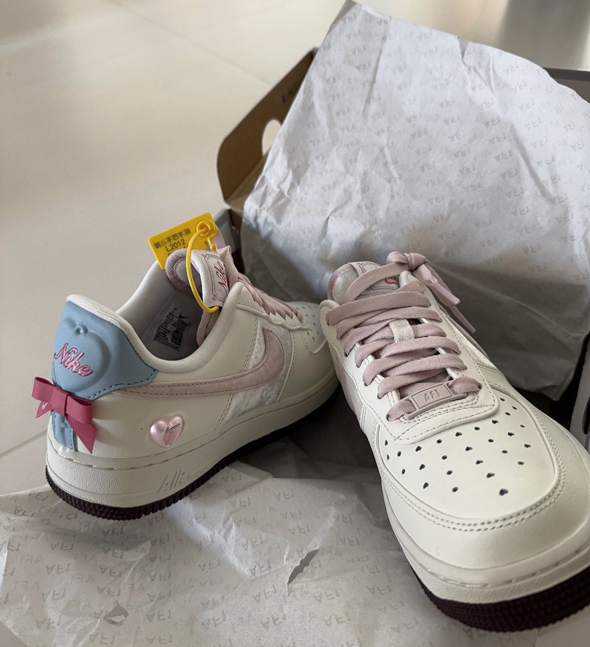 【情人节送礼必备!这双粉白AF1限定款,颜值和细节哪个更让你心动?】,由用户 球鞋同学 分享,来自湖南。这是一篇来自识货社区的真实用户分享笔记。