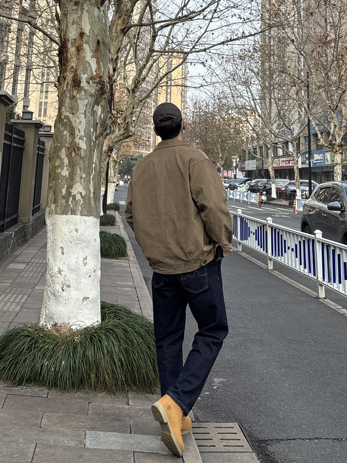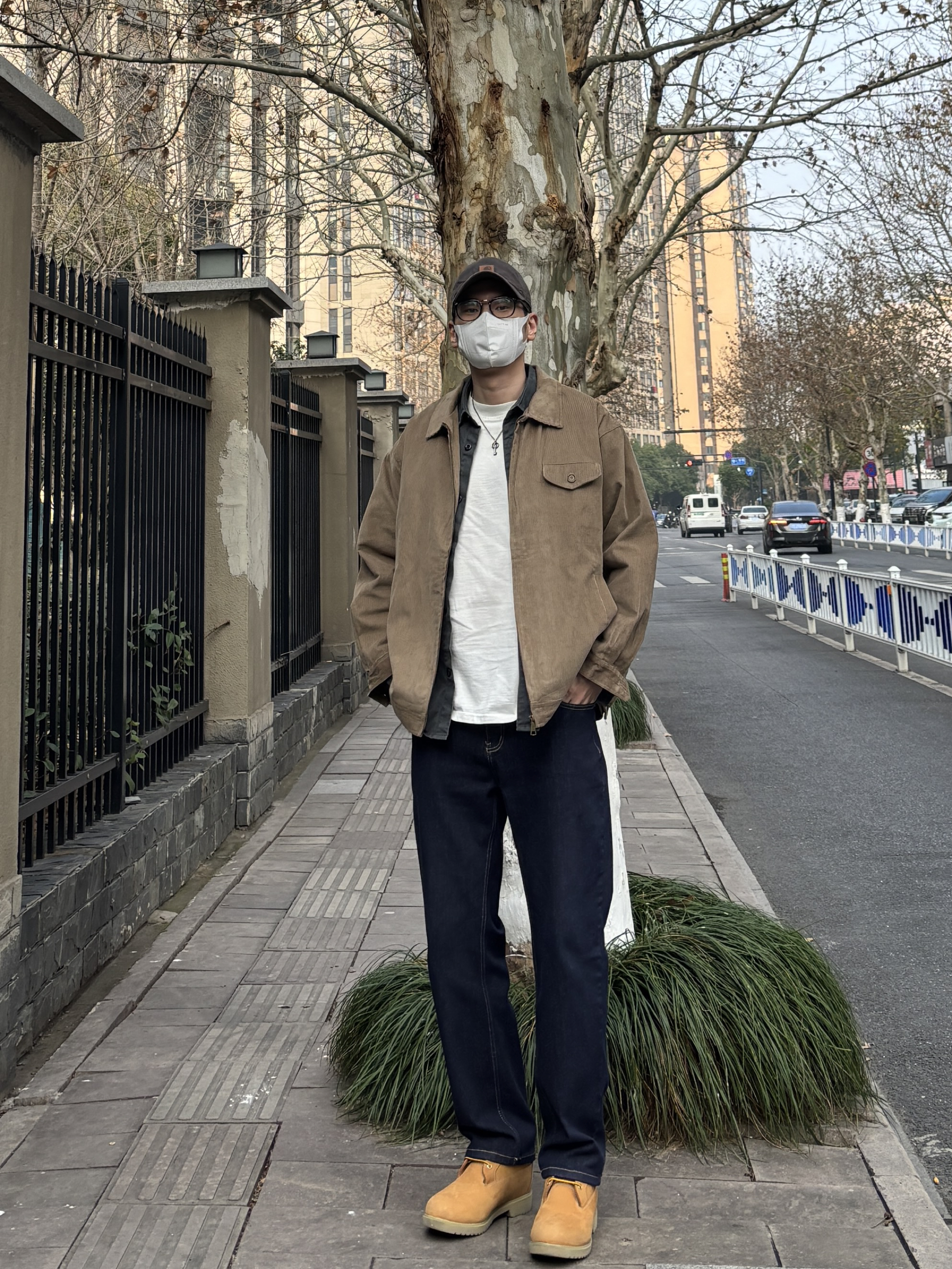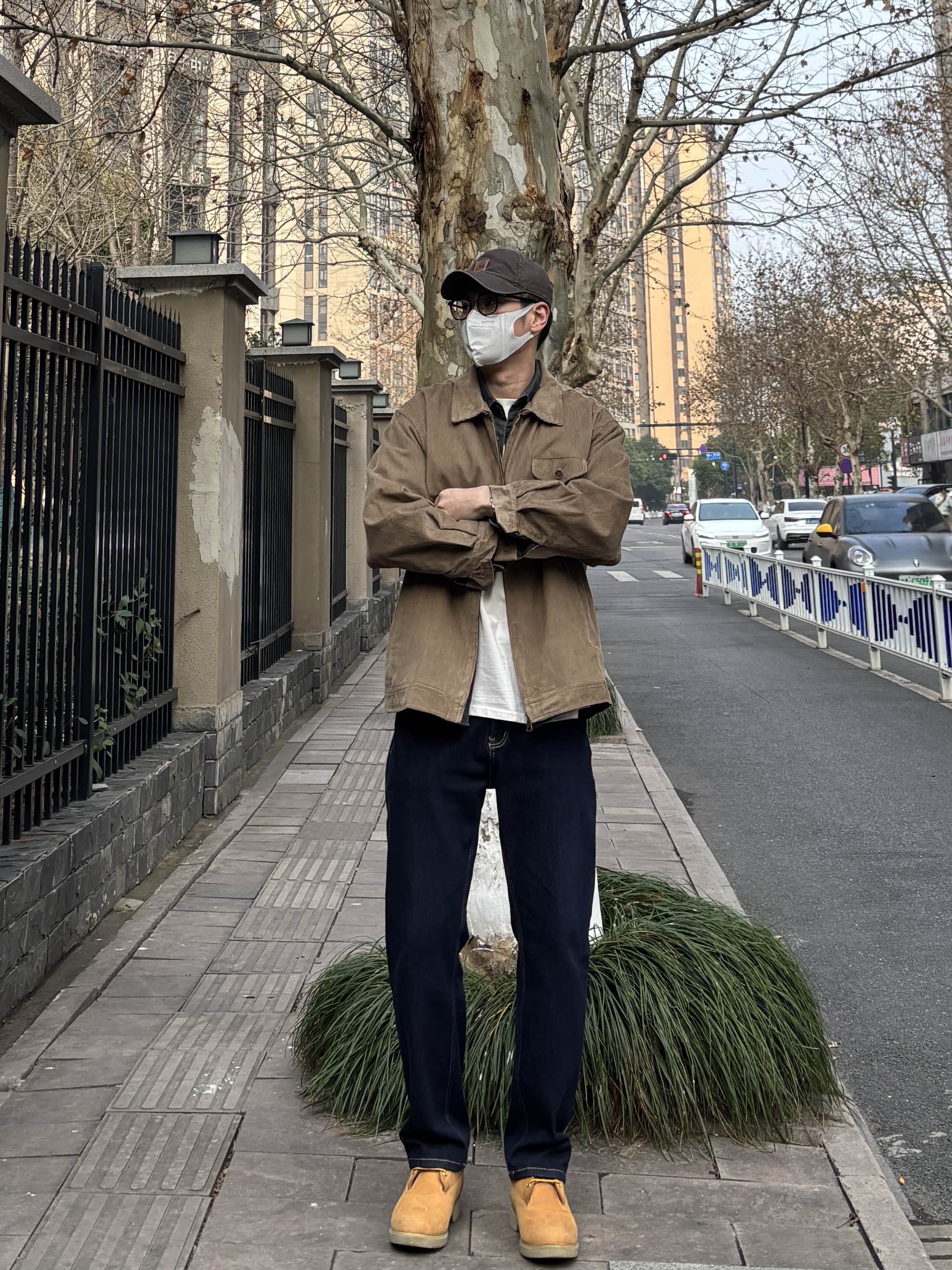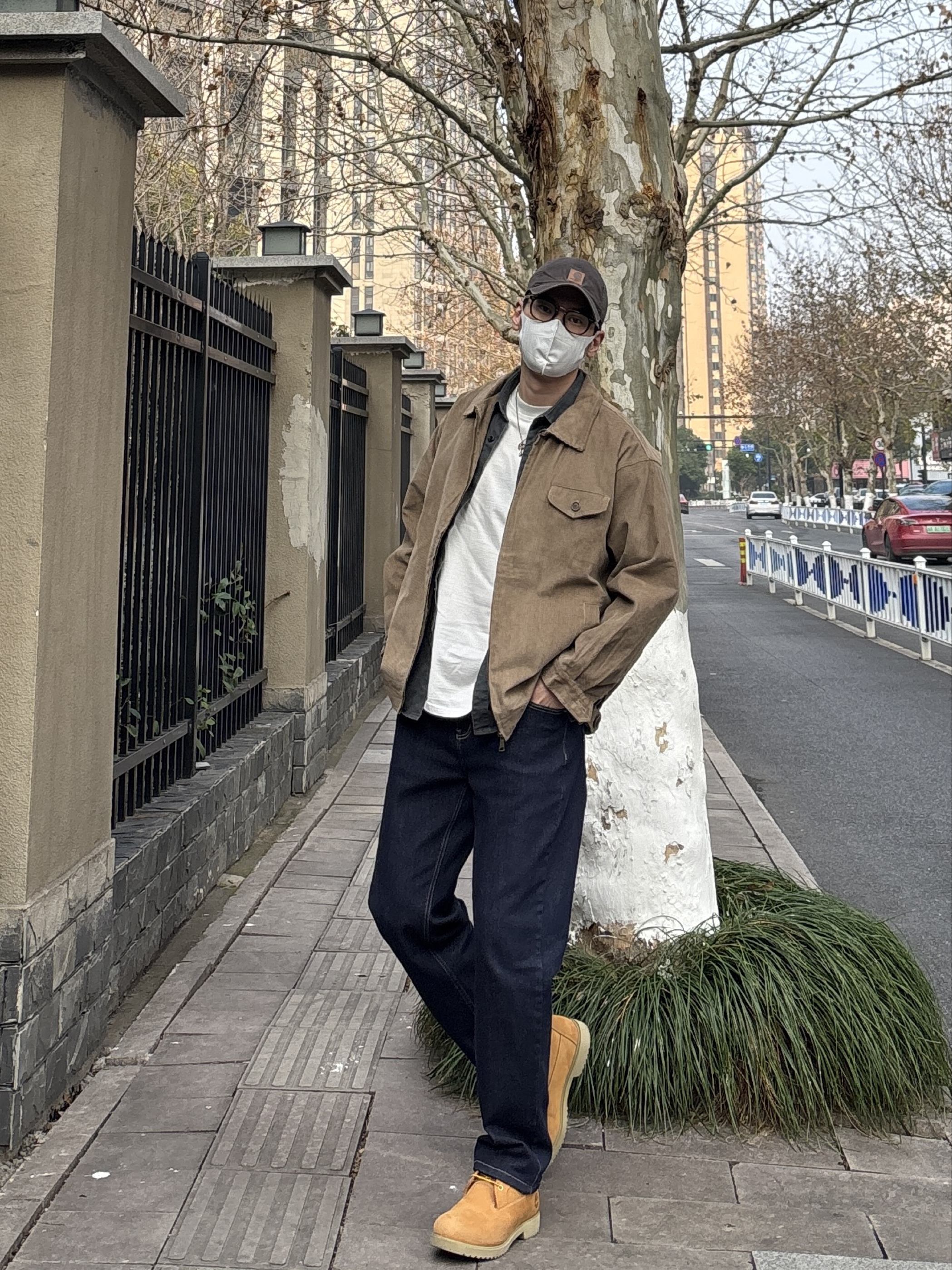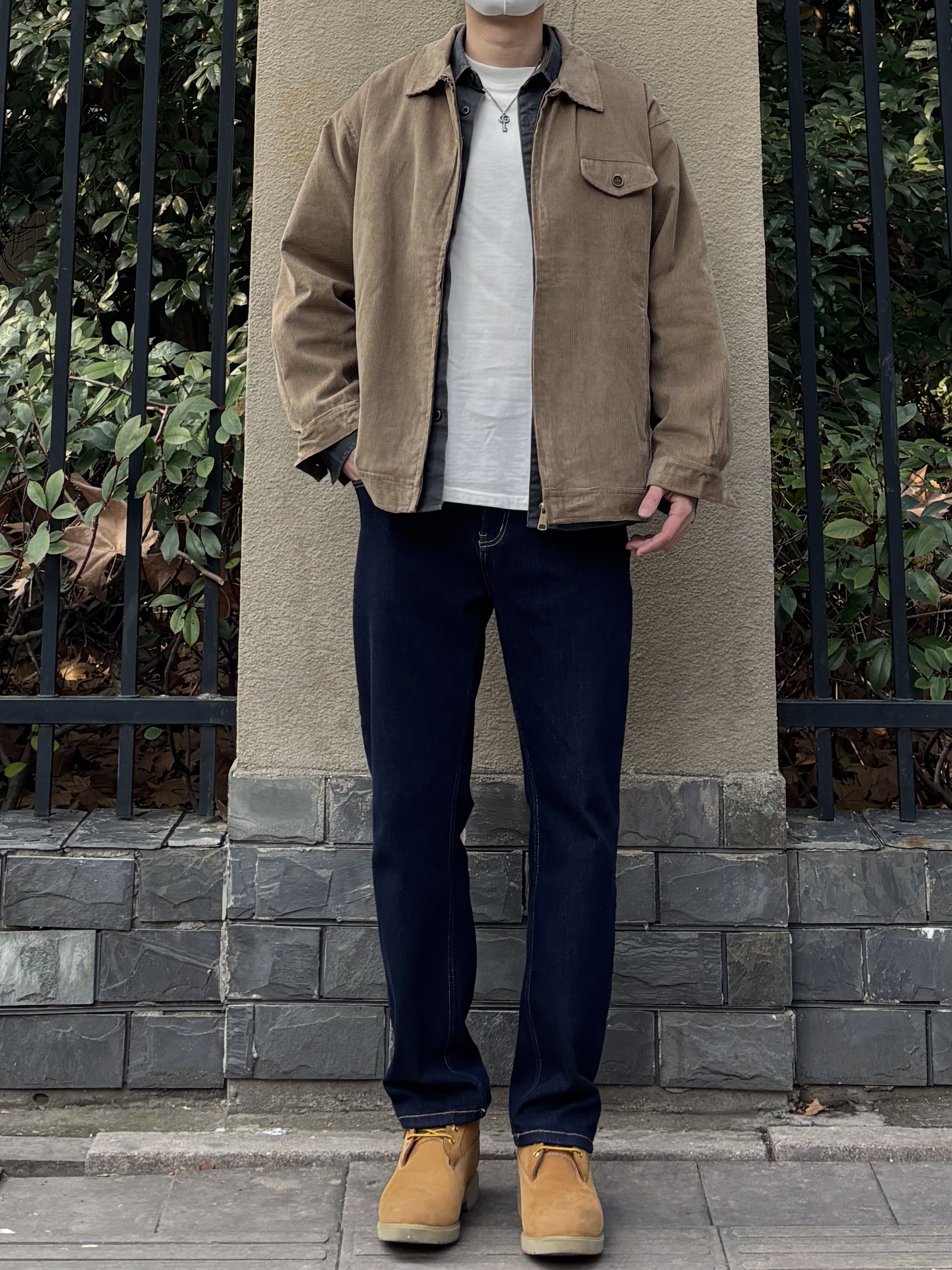 早春这么穿,温度风度双在线,男生们快抄作业。 卡其色重磅灯芯绒夹克叠穿白T+深灰猎装衬衫,领口露出层次感,简约中和外套的厚重感。下半身搭配原色牛仔裤和沙漠黄工装靴,深蓝色与卡其外套撞色超和谐,鞋子颜色呼应上装,让配色更统一高级✌️ - 今日搭配 衣服裤子:NICE LILI 鞋子:timberland