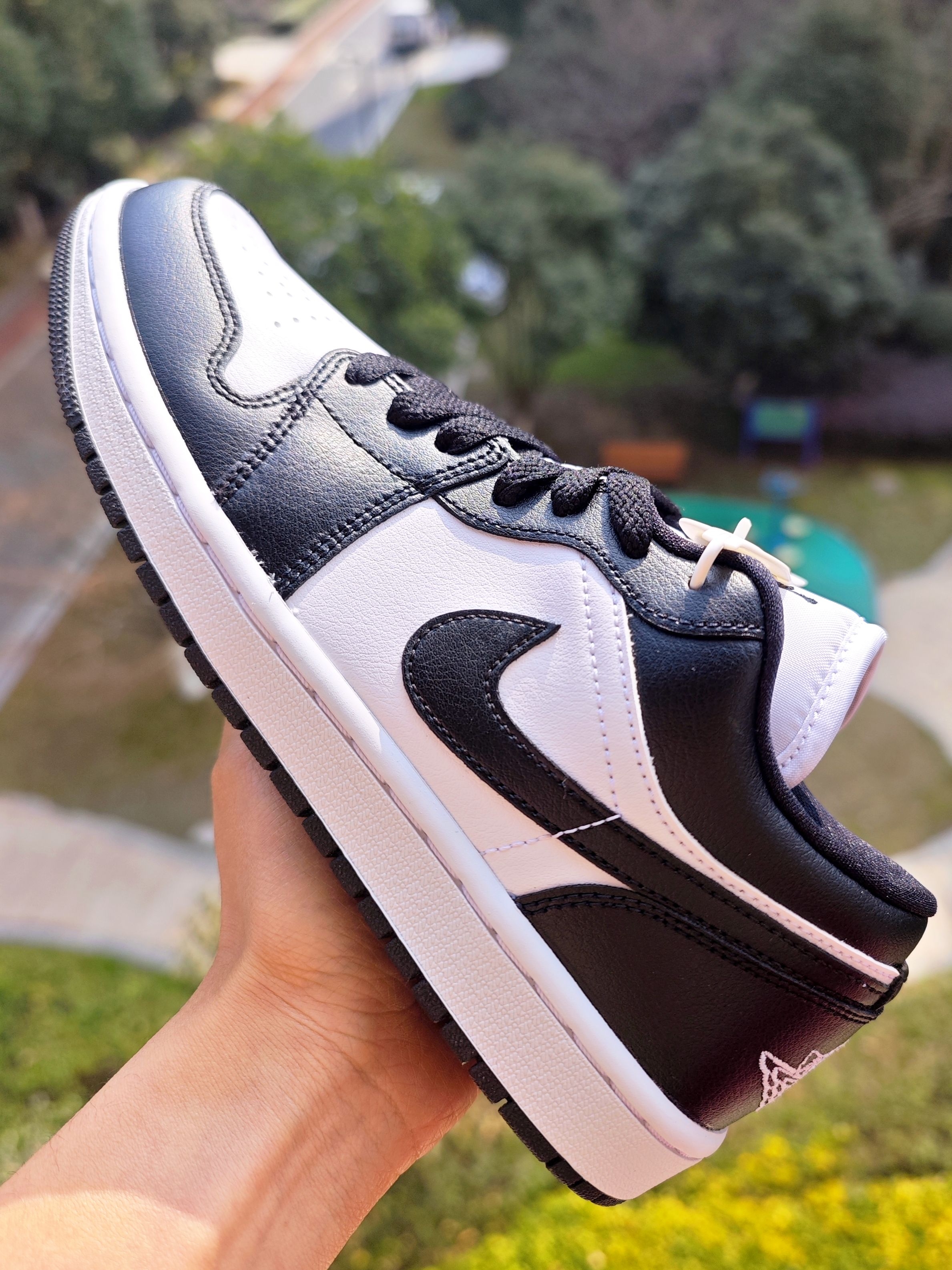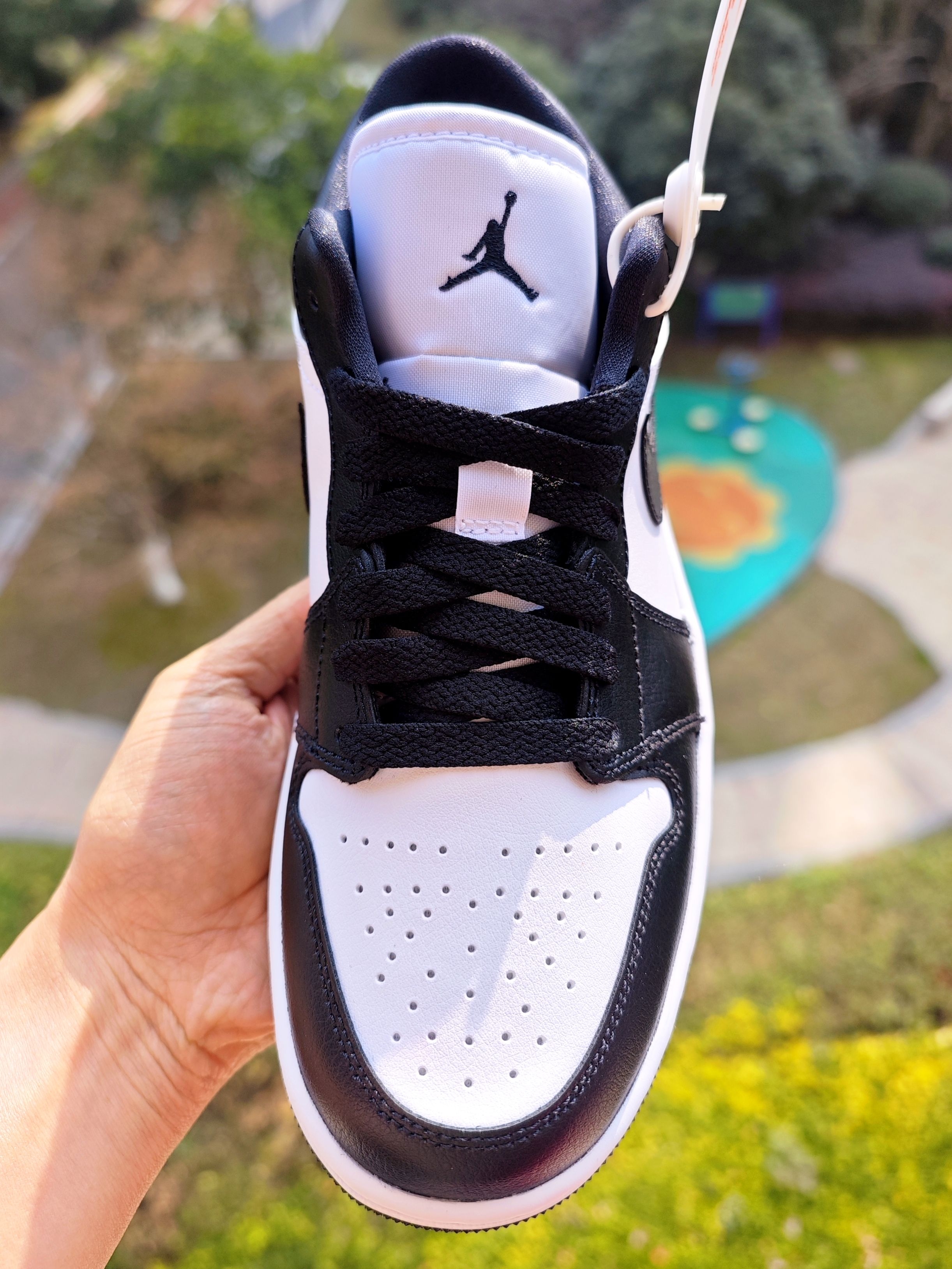 👀满大街的熊猫dunk,大家每天应该能看到路人穿着,看厌了吧 其实AJ1 low低帮版本也是有熊猫配色的,同样的黑白配色,穿搭属性是无限接近熊猫dunk的 两双鞋我都上脚过了,基本脚感没有差别,都是板鞋么 二者差异也比较明显,个人觉得最明显就2处, 第1、就是鞋舌为jumpman飞人刺绣,熊猫dunk是Nike logo,个人还是喜欢飞人LOGO多一些,情怀作...