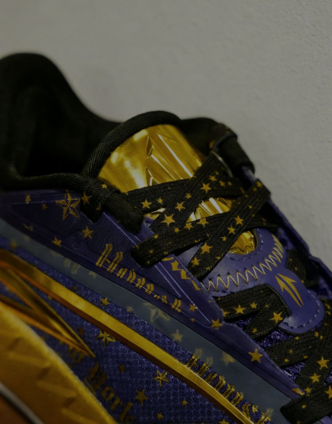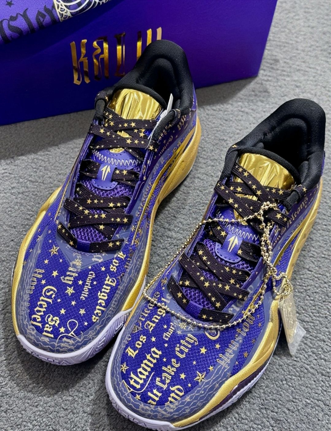 安踏欧文3代「紫金王朝」实战测评 当紫金配色遇上欧文的华丽球风,这双安踏欧文3代不仅是情怀党眼中的艺术品,更是球场上的实战利刃。 ✨ 颜值设计 这双鞋的紫金配色堪称一绝,鞋面以深邃的紫色为底,搭配闪耀的金色点缀,完美复刻湖人王朝的经典色调。 鞋面上印着“Los Angeles”“Lake City”等城市字样,搭配星星纹路,仿佛将欧文的篮球旅程穿在了脚上。 金色链条与星星鞋带的细节设计...