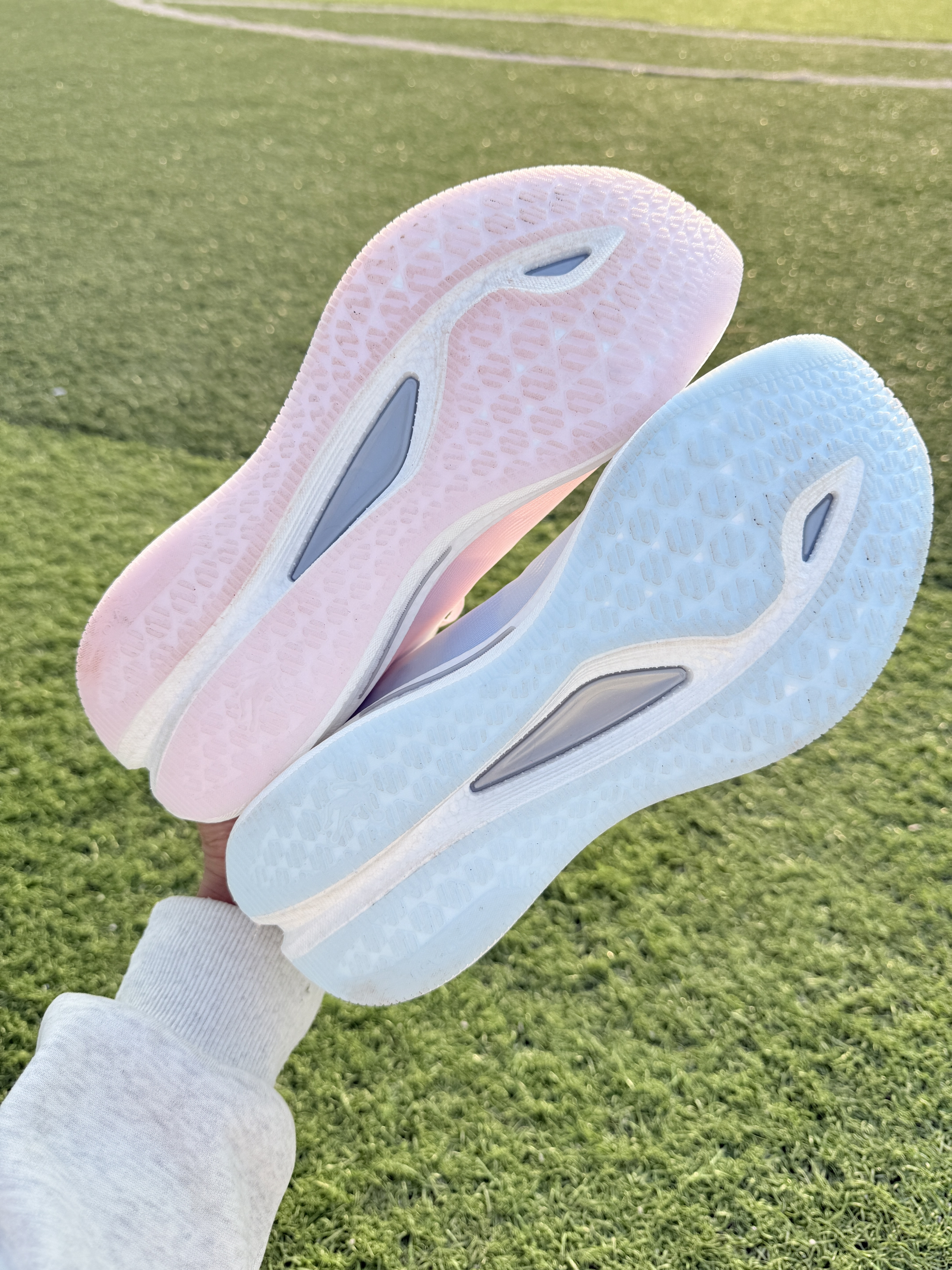 今天穿的这双跑鞋出去跑步了,这双是蓝粉鸳鸯的感觉脚感很不错,颜值也很棒,平常训练都是很可以的呀,大家感觉怎么样呢?