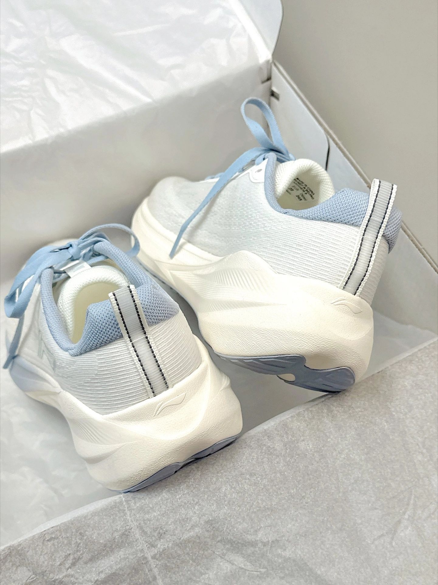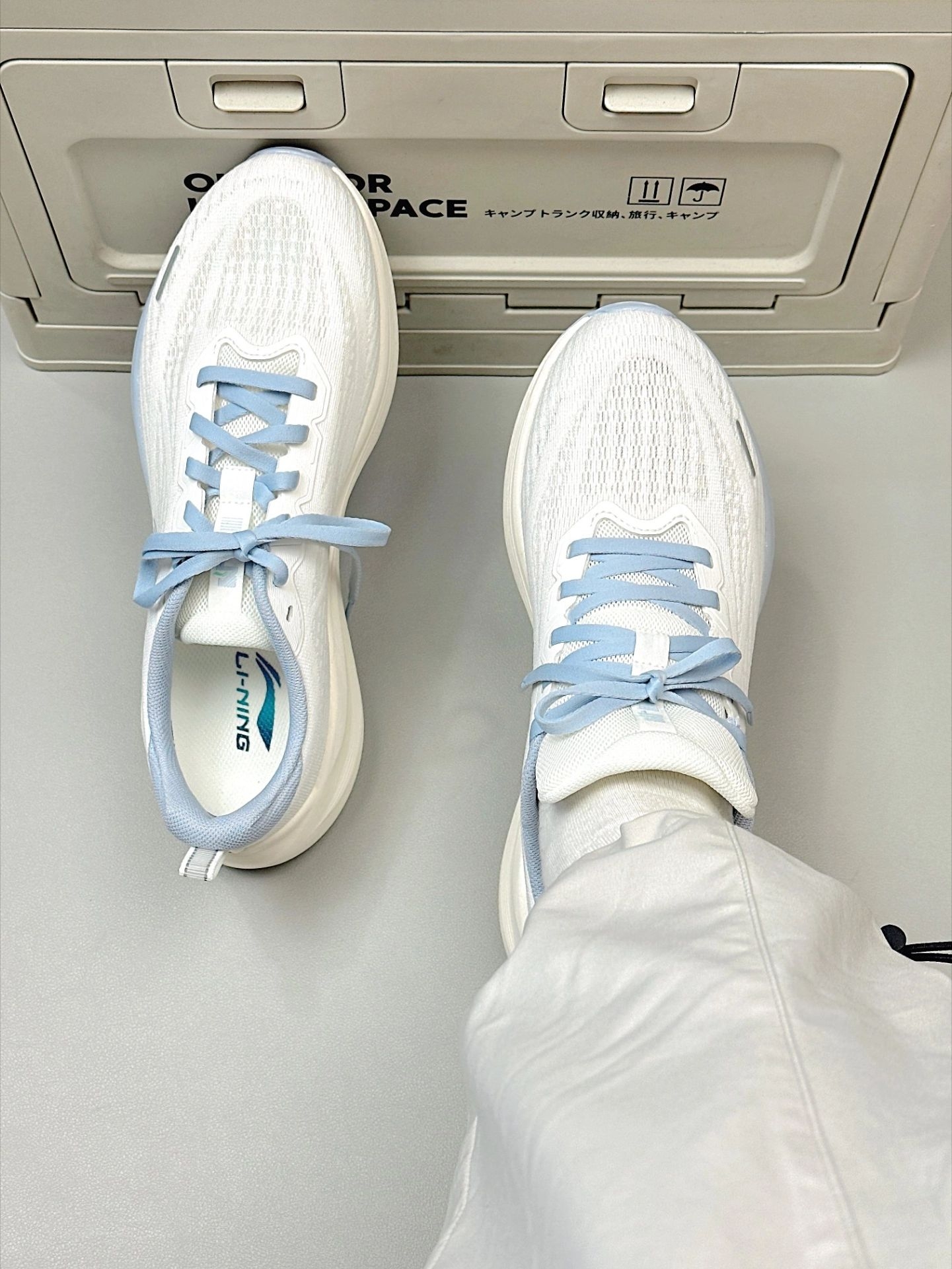 ☁️淡淡的乳白色➕蓝色点缀清透感十足~ 干干净净的不仅穿起来舒服还出片✨ 软弹大底➕贾卡鞋面🦶🏻上脚轻盈透气不闷脚~ 🧥平时搭配衣服也不怎么卡穿搭,休闲运动都可以驾驭✔️ 🏃🏻♀️通勤慢跑体考体测穿都可以🫐 #李宁吾跃