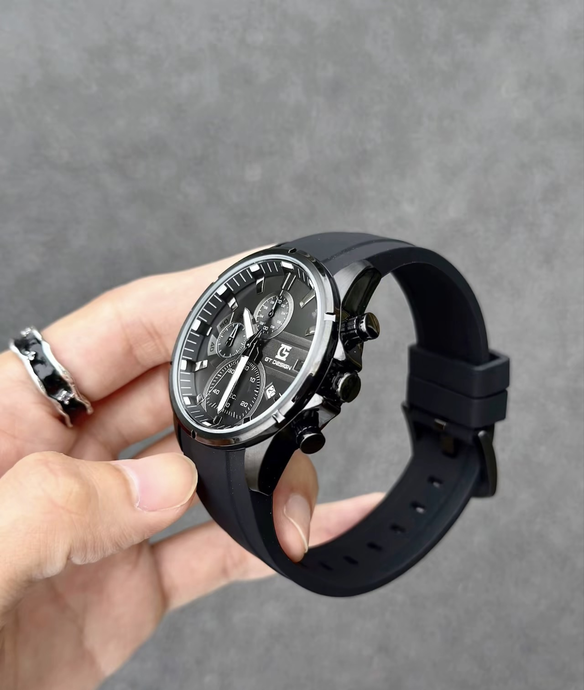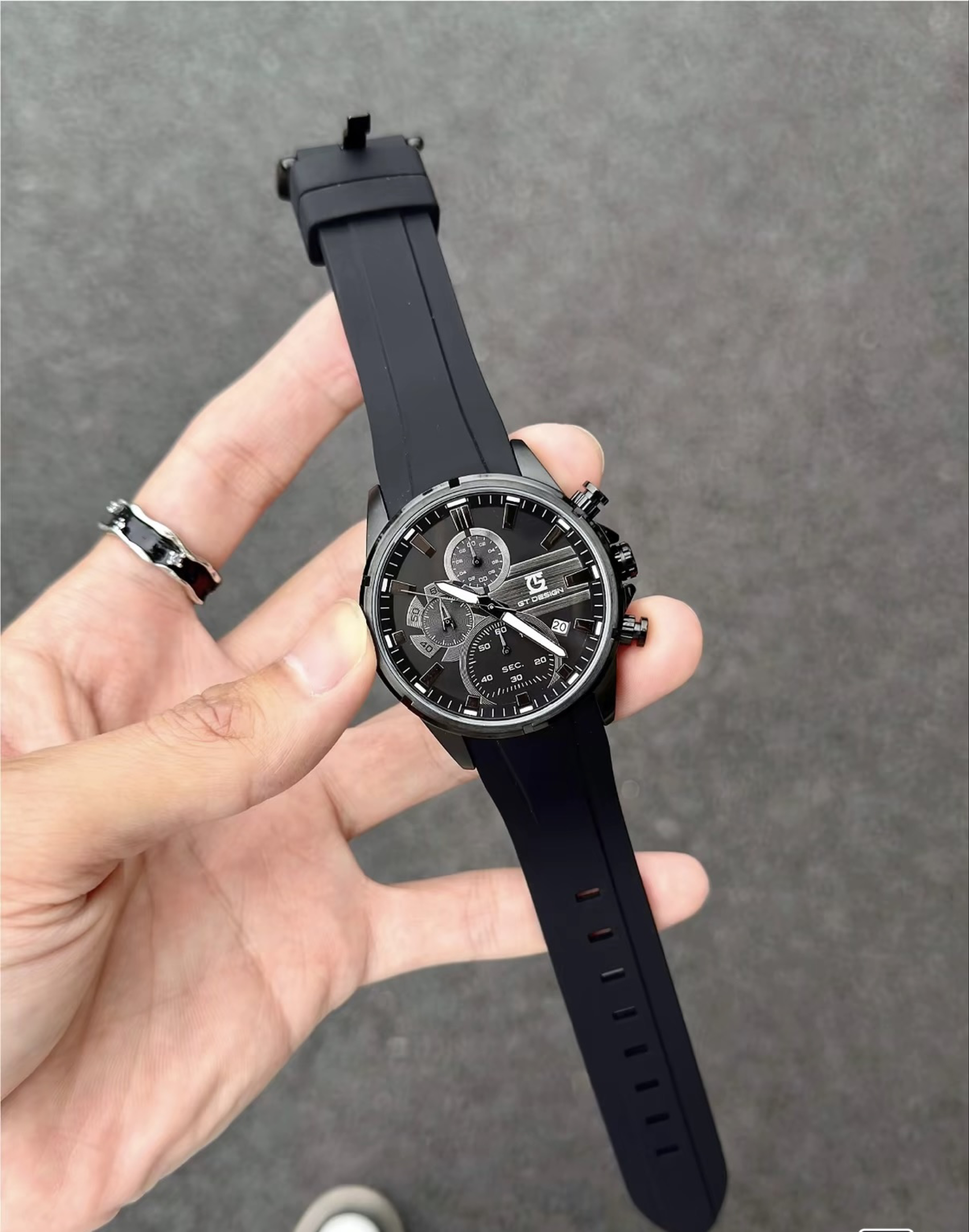 本篇笔记关联了GT DESIGN 黑武士撞色简约时尚复古百搭休闲防水三眼六针硅胶表带石英男士手表 【礼盒装】黑色钢带 GTM2023079 等商品,为用户提供真实的使用体验和购买参考。