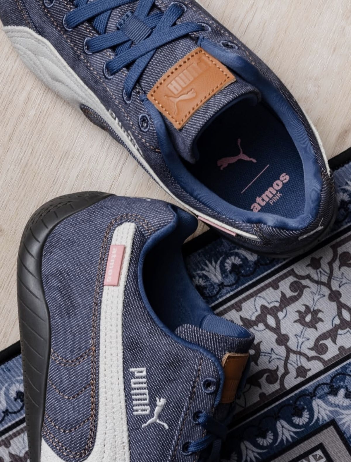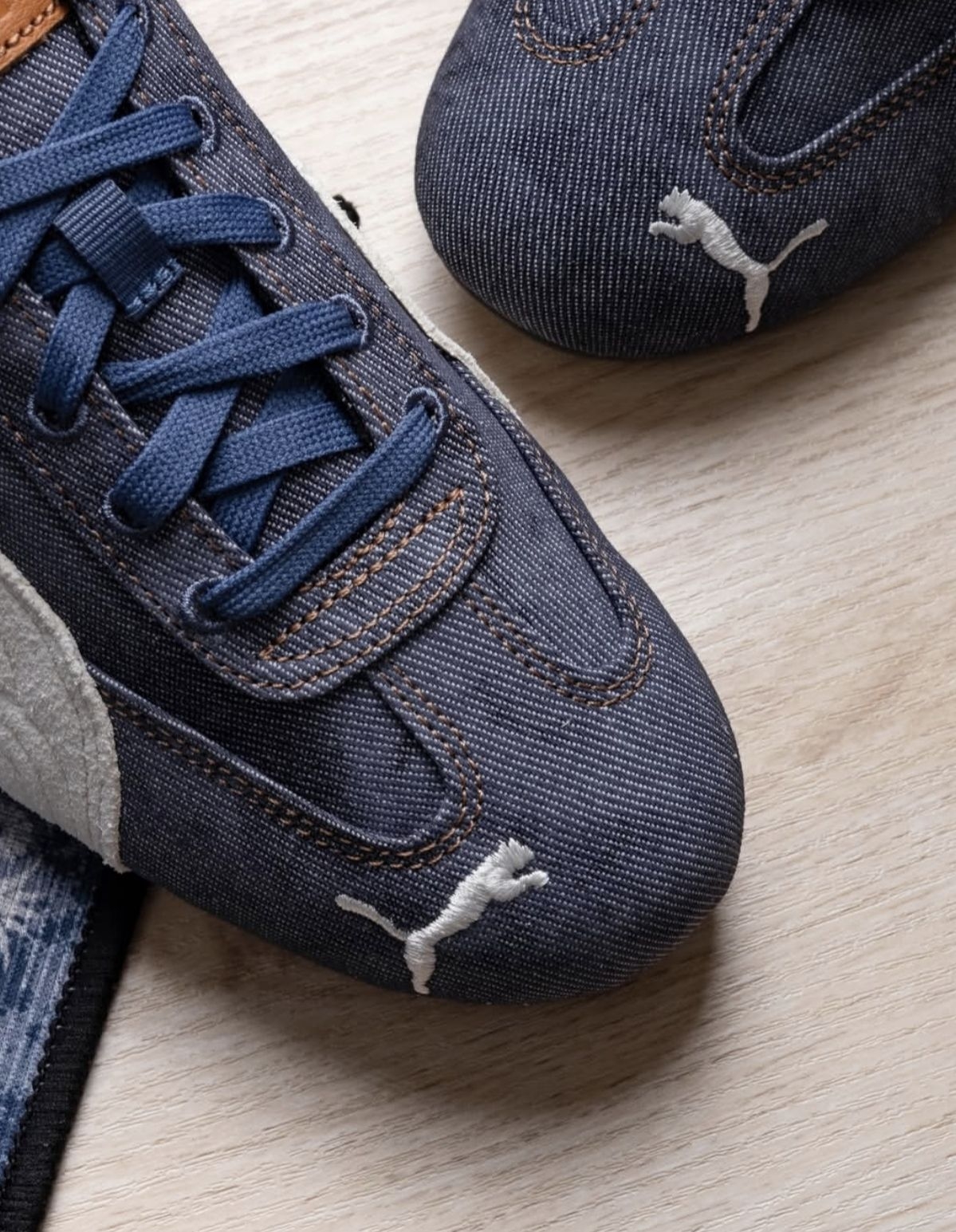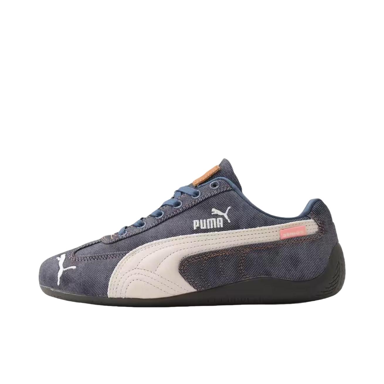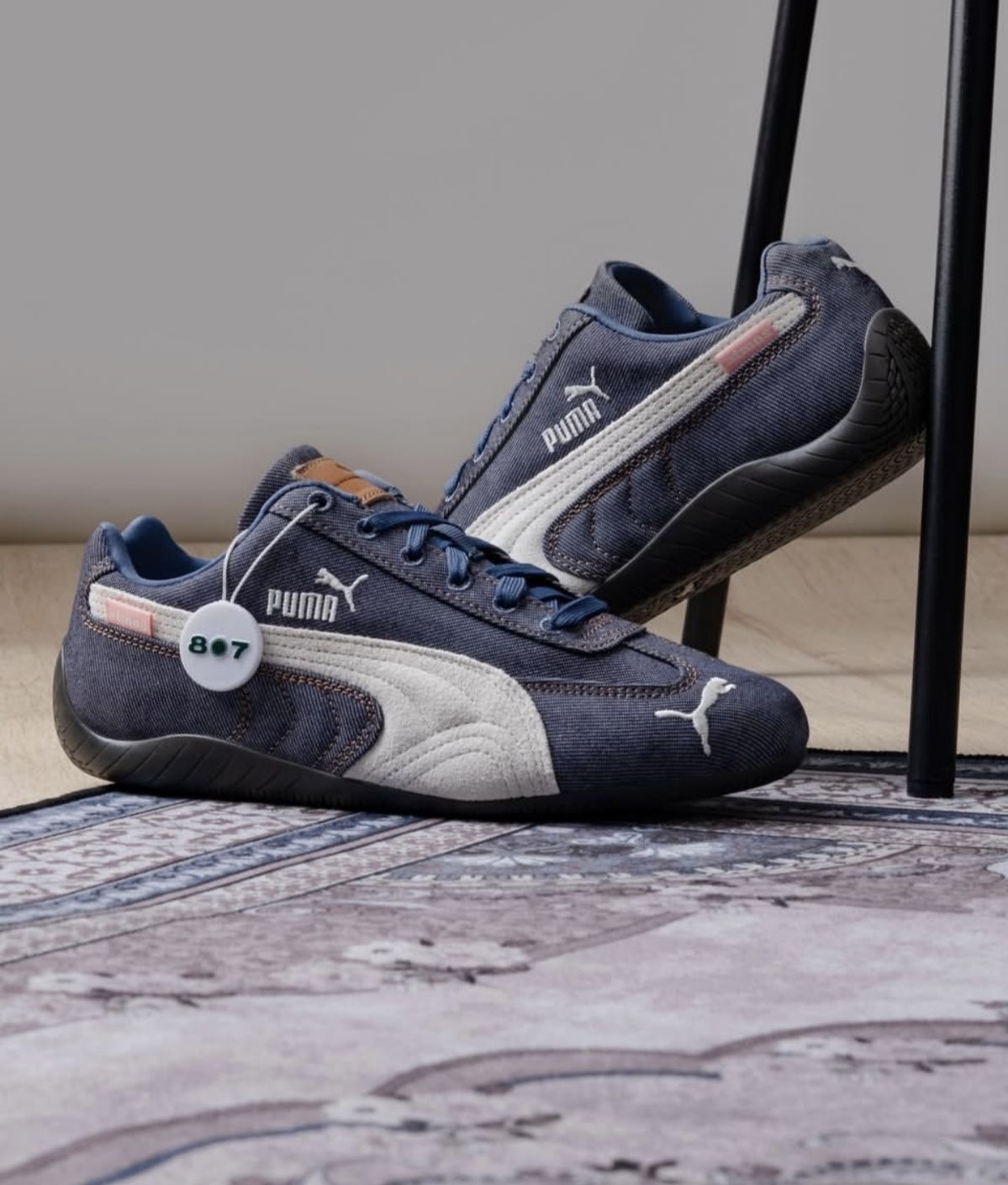 - 传承Speedcat经典赛车低帮流线廓形,利落窄版鞋型,视觉显脚瘦显腿长;深靛蓝麂皮/优质皮革鞋面,质感高级哑光,低调不沉闷,搭配同色系精致车线与撞色PUMA跑道Formstrip,辨识度拉满;鞋头刺绣美洲狮Logo、鞋舌联名双标、后跟压印细节,处处见联名质感;低薄鞋口加衬,贴合脚踝不磨脚,男女上脚都有腔调。 - 配色高级耐看,深靛蓝适配牛仔裤、休闲裤、工装裙、西装裤,cleanfit、c...