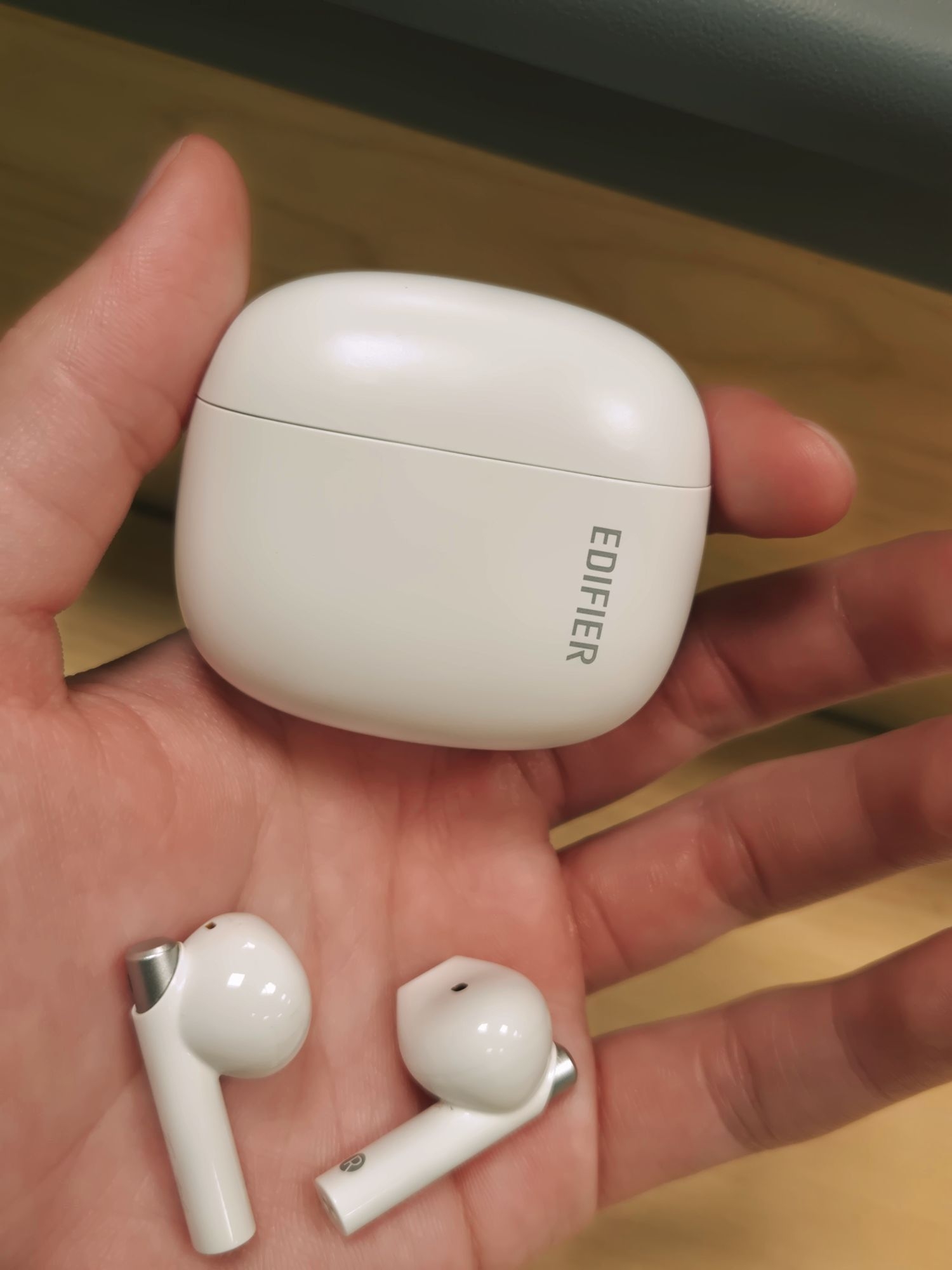 上手漫步者花再Zero Buds,重量很轻,半入耳3.7g久戴无压迫感,AI通话降噪蛮明显,续航表现一般但够用;蓝牙连接还是蛮快的,不建议打游戏,半入耳隔音弱,不过追求降噪的也不会买半入耳哈哈哈,高频音质偏暗,总的来说性价比很不错,关键是久戴耳朵不会痛,适合休闲听音乐。