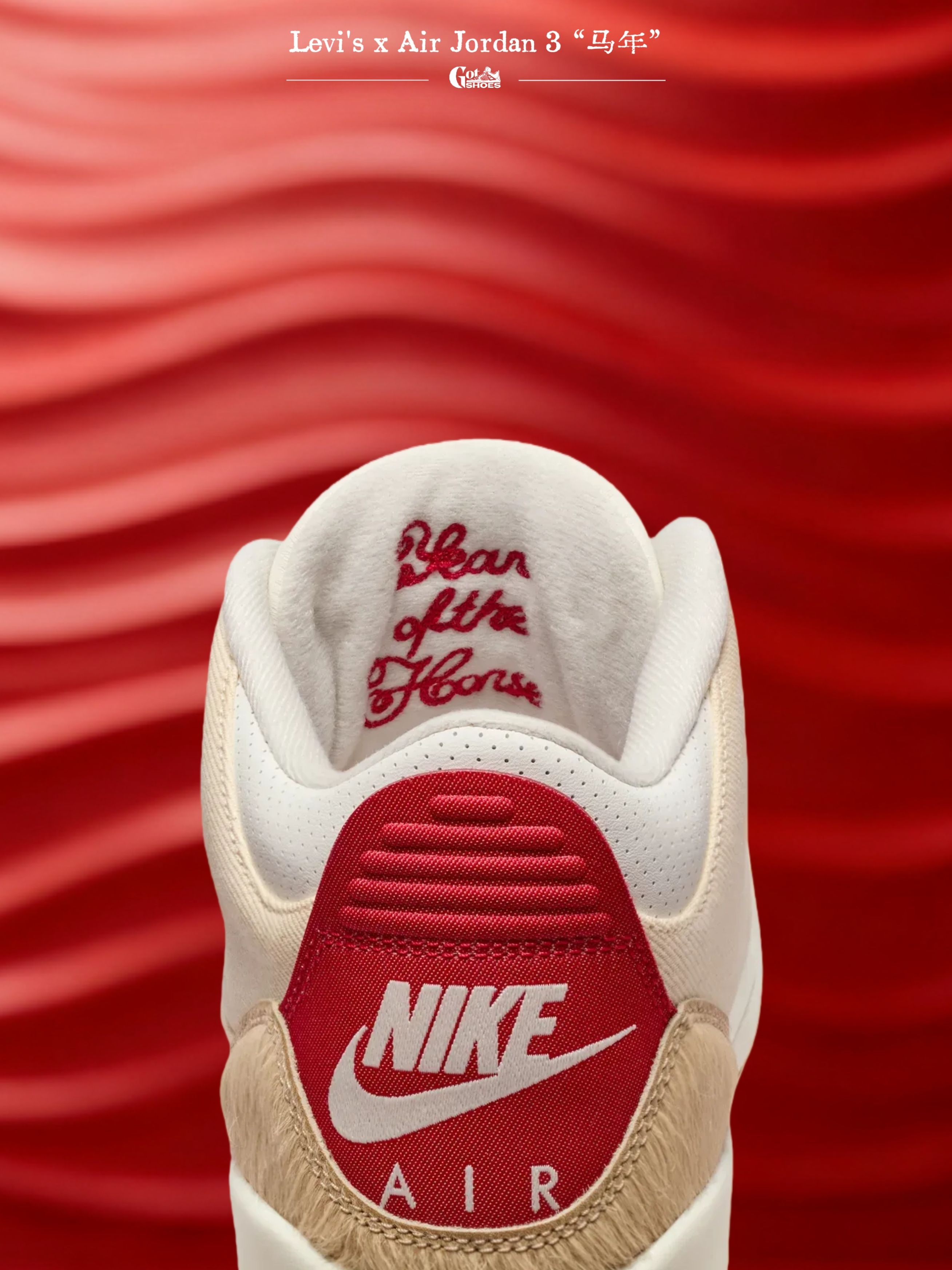 Levi's 与 Air Jordan 3 合作的“马年”限定鞋款现已正式登场,此次联名也为中国农历新年的球鞋故事续写了新的篇章。 这款“马年”限定版在设计上大胆革新,舍弃了 Air Jordan 3 标志性的爆裂纹元素,转而选用质感独特的马毛材质覆盖鞋头与后跟区域。鞋身主体以帆布色丹宁面料打造,令人瞬间联想到 Levi's 经典的工装夹克,致敬意味浓厚。红色细节点缀得恰到好处,既...