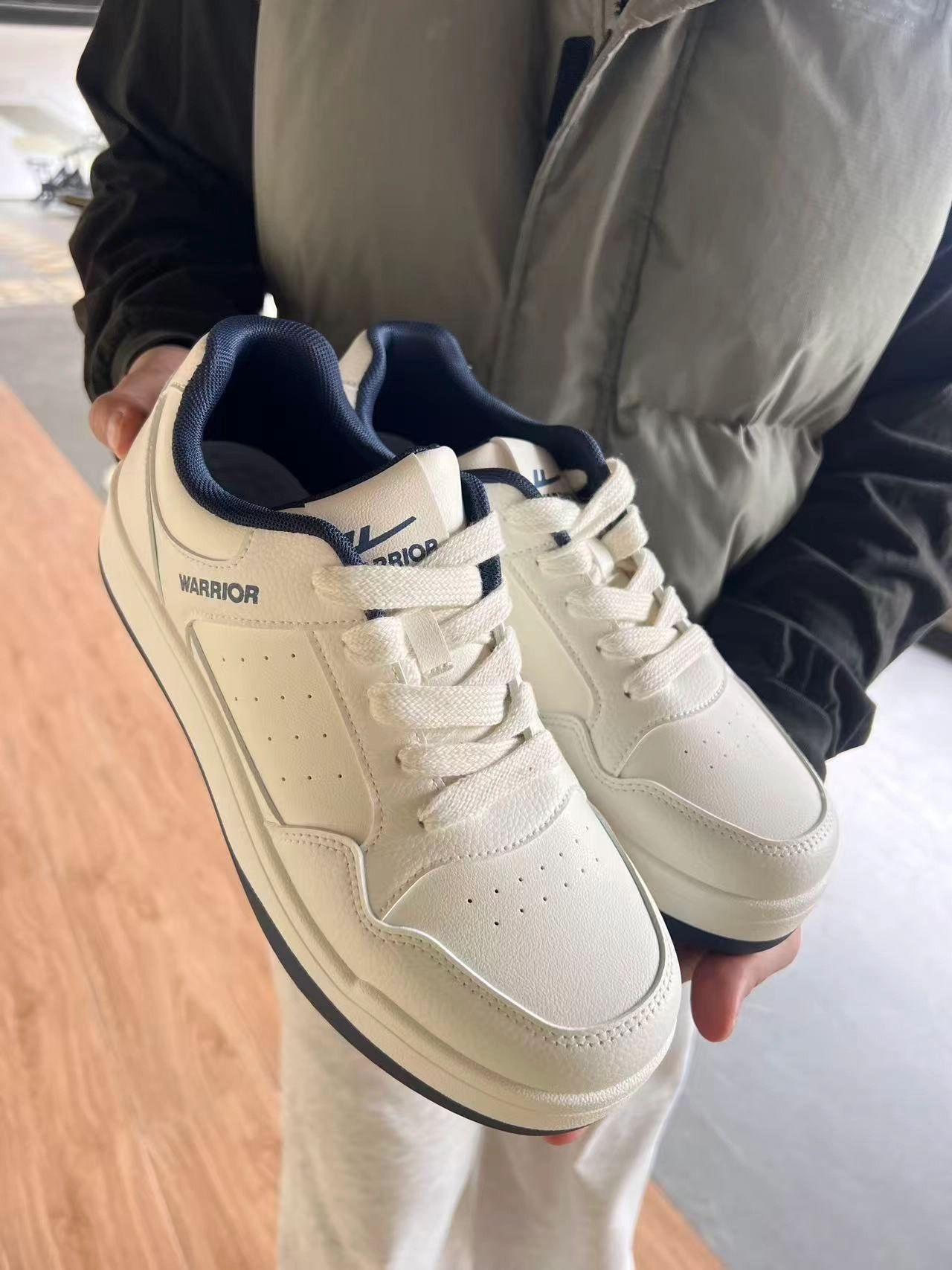 实拍细节真心绝: 米白鞋身+藏蓝撞色,侧边“WARRIOR”刺绣自带复古滤镜 鞋头透气孔夏天穿也不闷,厚底悄悄增高3cm 鞋舌蓝标和鞋垫印花全是细节控彩蛋 📸 上脚即出片体质: 配灰运动裤是慵懒少年感 搭牛仔直筒裤秒变cityboy日常 重点是真的百搭不挑人,国货之光实锤✅ 总结:一双能陪你压马路、赶地铁、拍OOTD的万能鞋(货号:WXP(WZ)-308302) ——花小钱买大快乐,回力...