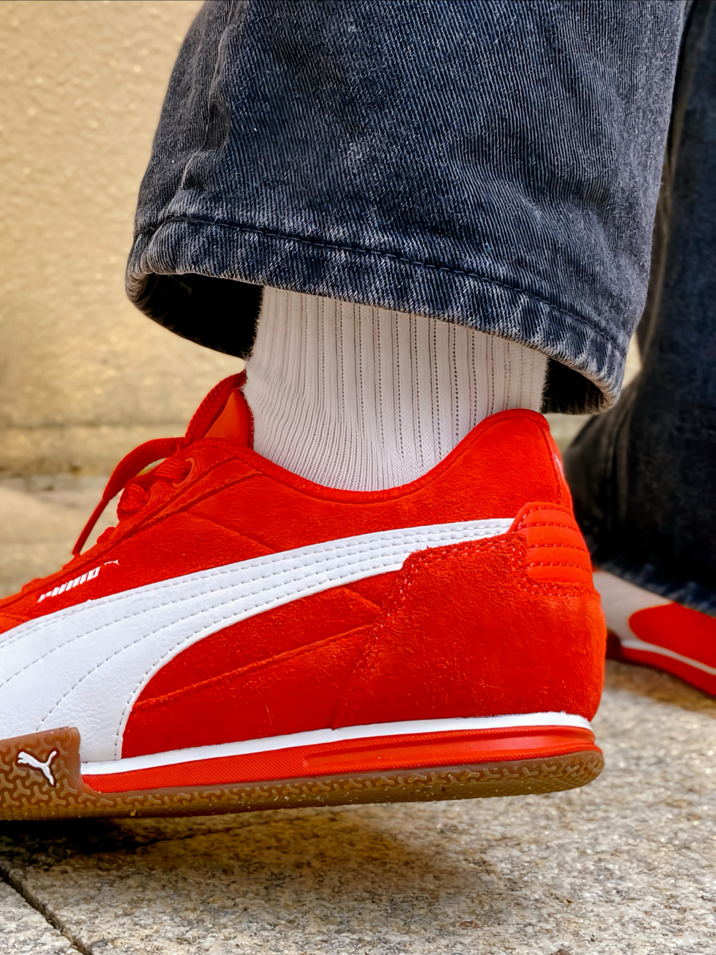 新年穿上新鞋子了 🧨 这双 #PUMA 休闲鞋还蛮好穿的 红白配的设计 新年穿它超应景 日常通勤、休闲出街也能穿 我喜欢搭配深色牛仔裤 👖 脚感我穿着蛮舒服的 轻便不累脚 尺码正常选择就 ok 啦 ! #板鞋界来了个彩色控 #新年穿新鞋 #新年红鞋开运 #PUMA复古休闲鞋 #穿新鞋美美过年