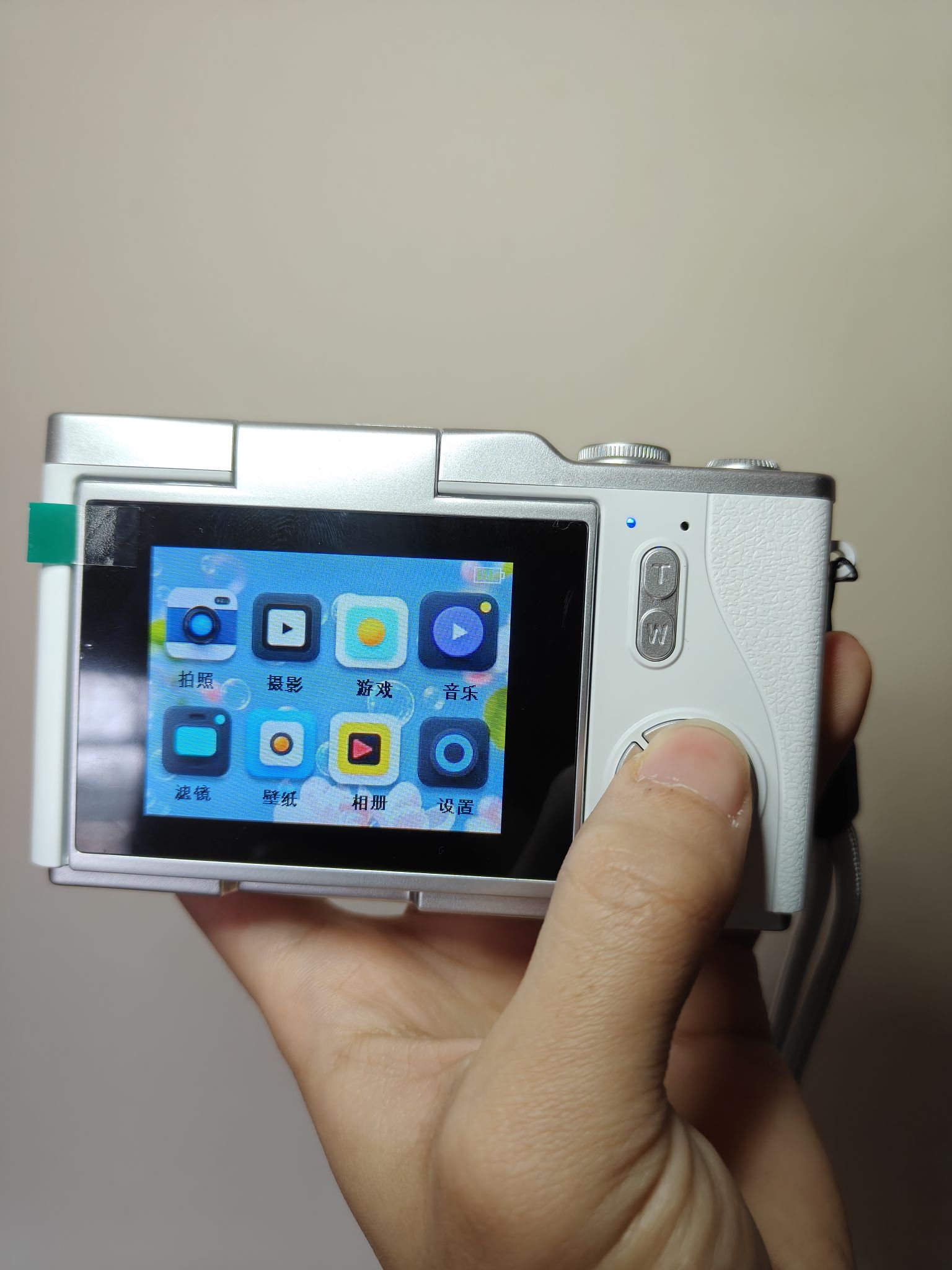 这个相机用起来还挺不错的 整体比较轻巧,而且还有一根挂绳,比较适合出门携带 像素也还行,日常记录够用了,比较适合在学校用不了手机的记录生活用 外观设计的也挺好看的,比较卡通呆萌 续航也还行,如果一直使用的话,可能能用半天这样 他上面还有一些音乐游戏,还挺不错的