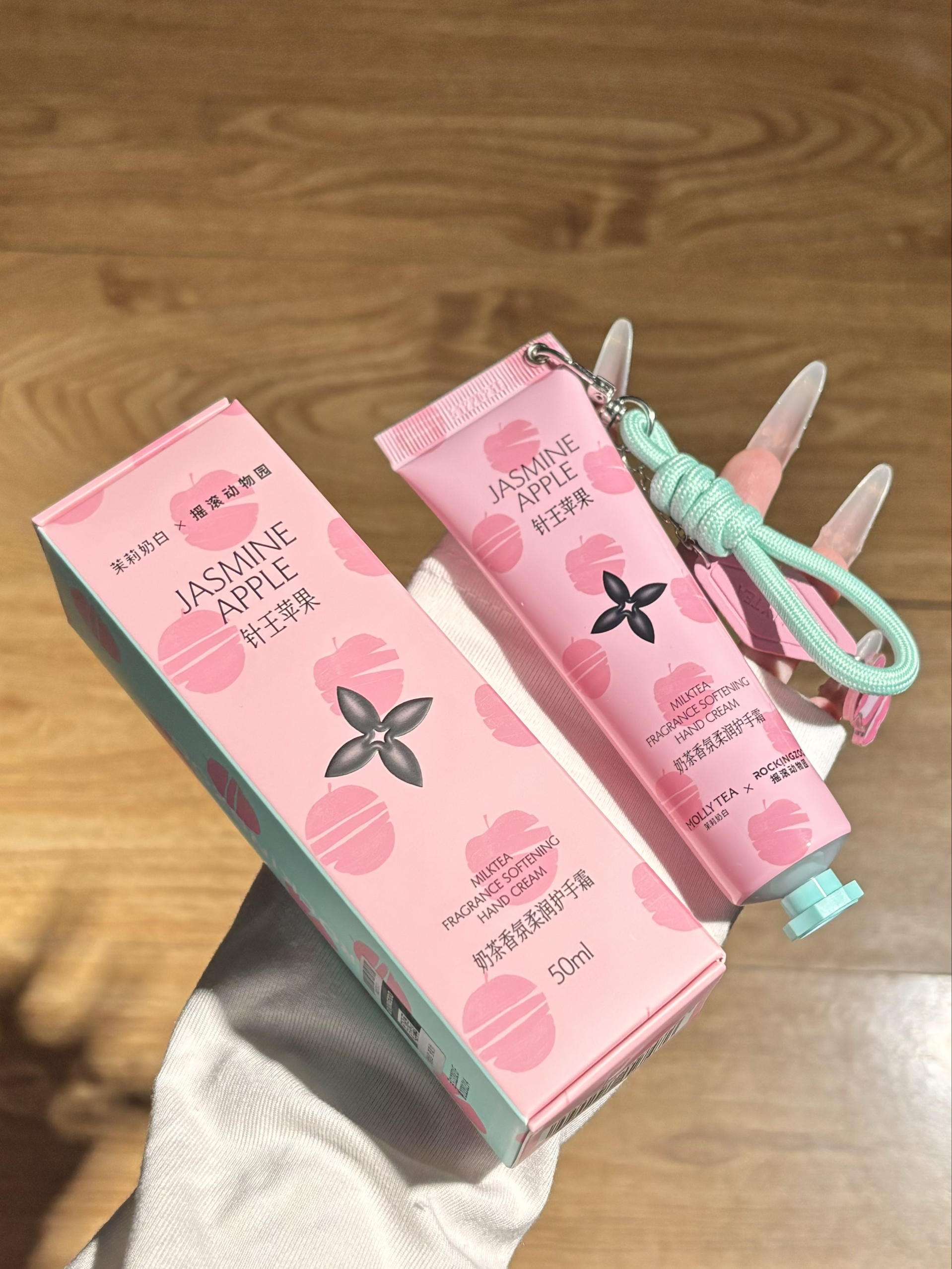 家人们谁懂啊!茉莉奶白和摇滚动物园的联名护手霜,直接把我拿捏了!🎁 粉粉嫩嫩的包装,上面印着针王苹果的图案,还带了个可以挂在包上的小挂绳,这颜值谁看了不迷糊!我现在走到哪带到哪,完全是个行走的氛围感神器。 重点是它的香味!是那种清甜的茉莉苹果香,刚涂上去是新鲜苹果的酸甜,慢慢散开后是温柔的茉莉花香,最后留下暖暖的奶茶尾调,闻起来又治愈又舒服。我同事路过我工位都问我喷了什么香水! 质地也超绝,...