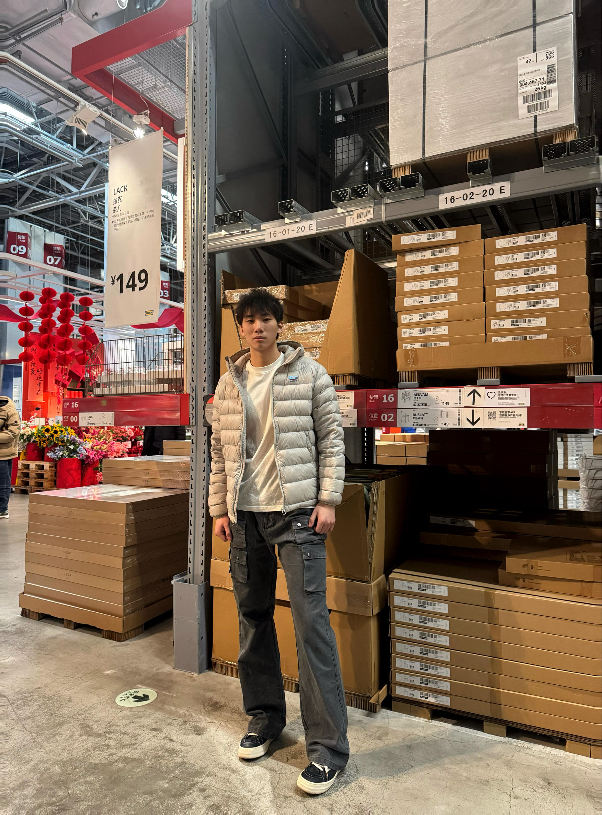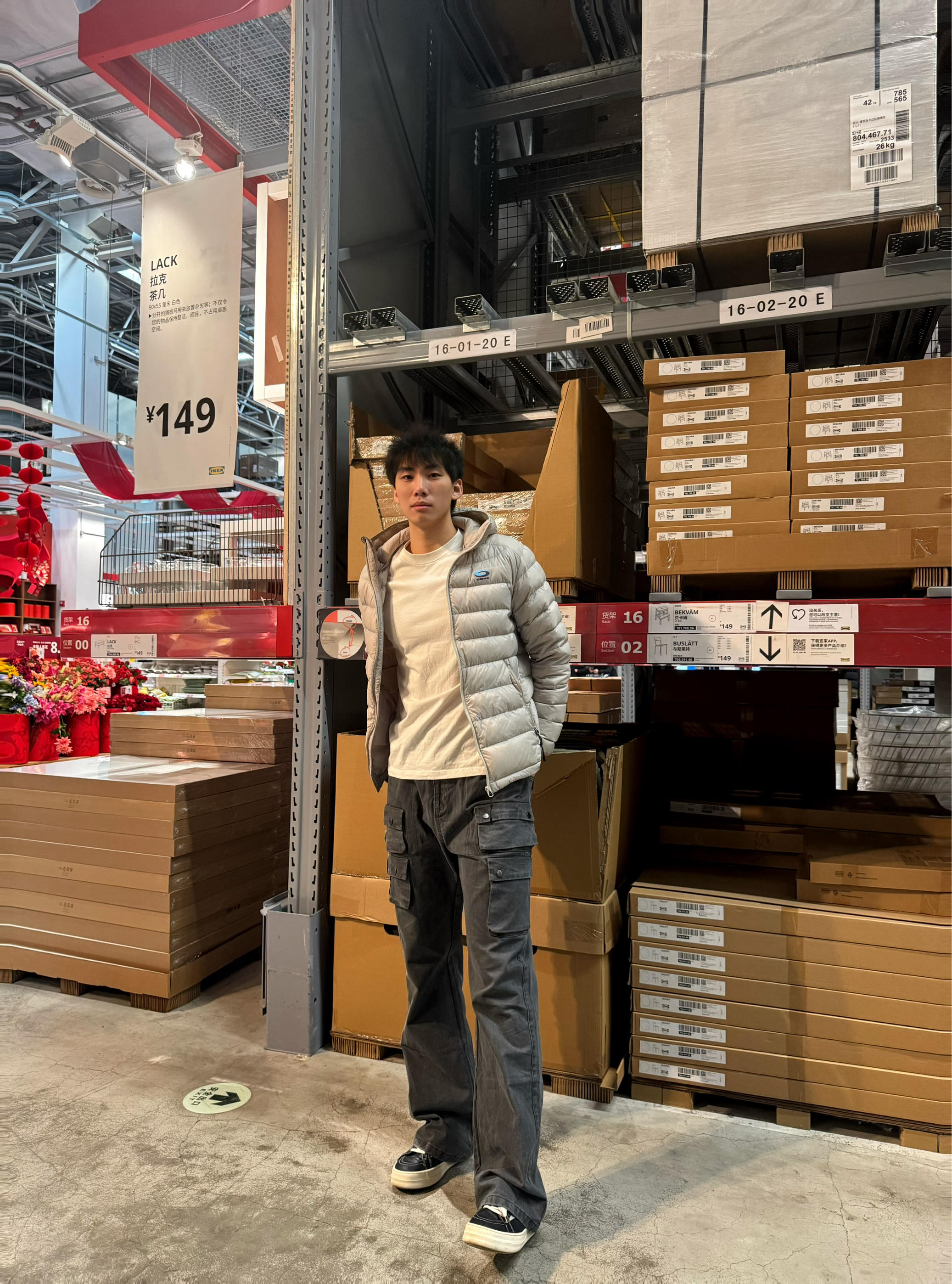 今日上身了一条灰色的工装裤,裤子我收到手摸起来手感很好,但是我没想到居然穿在身上怎么出片!!!我本人的腿型也不是很直很好看的那种,但这条裤子把我腿型的缺点全部遮挡住了,显得我整个腿型超级修长,而且感觉这条裤子搭配走高街风格,工装风格都很好看 上半身我就随意搭配了一件米白色的排骨羽绒服➕一双黑白色的板鞋,这身搭配让我感觉很舒服 本人身高185体重165上下浮动裤子是2xl