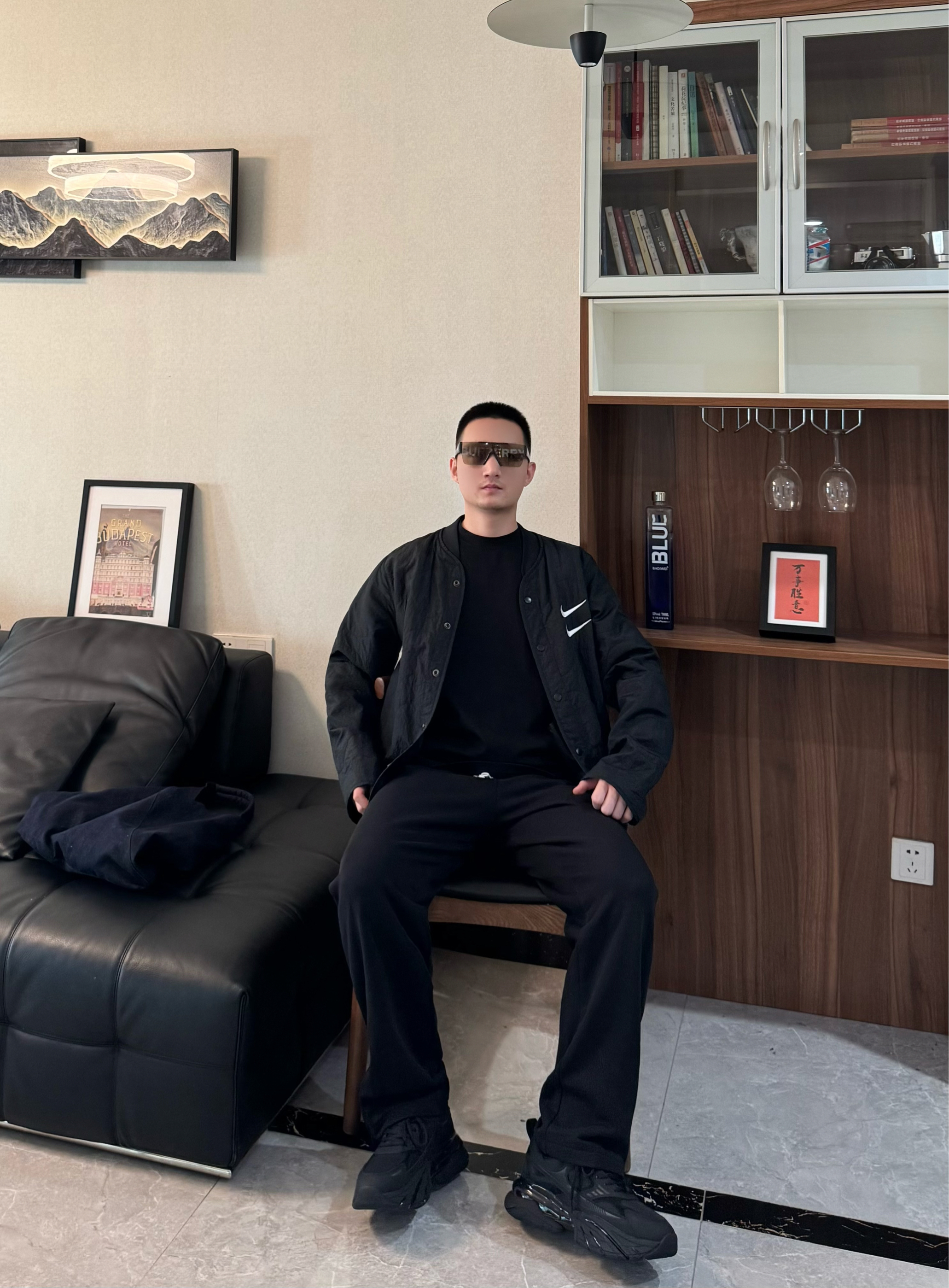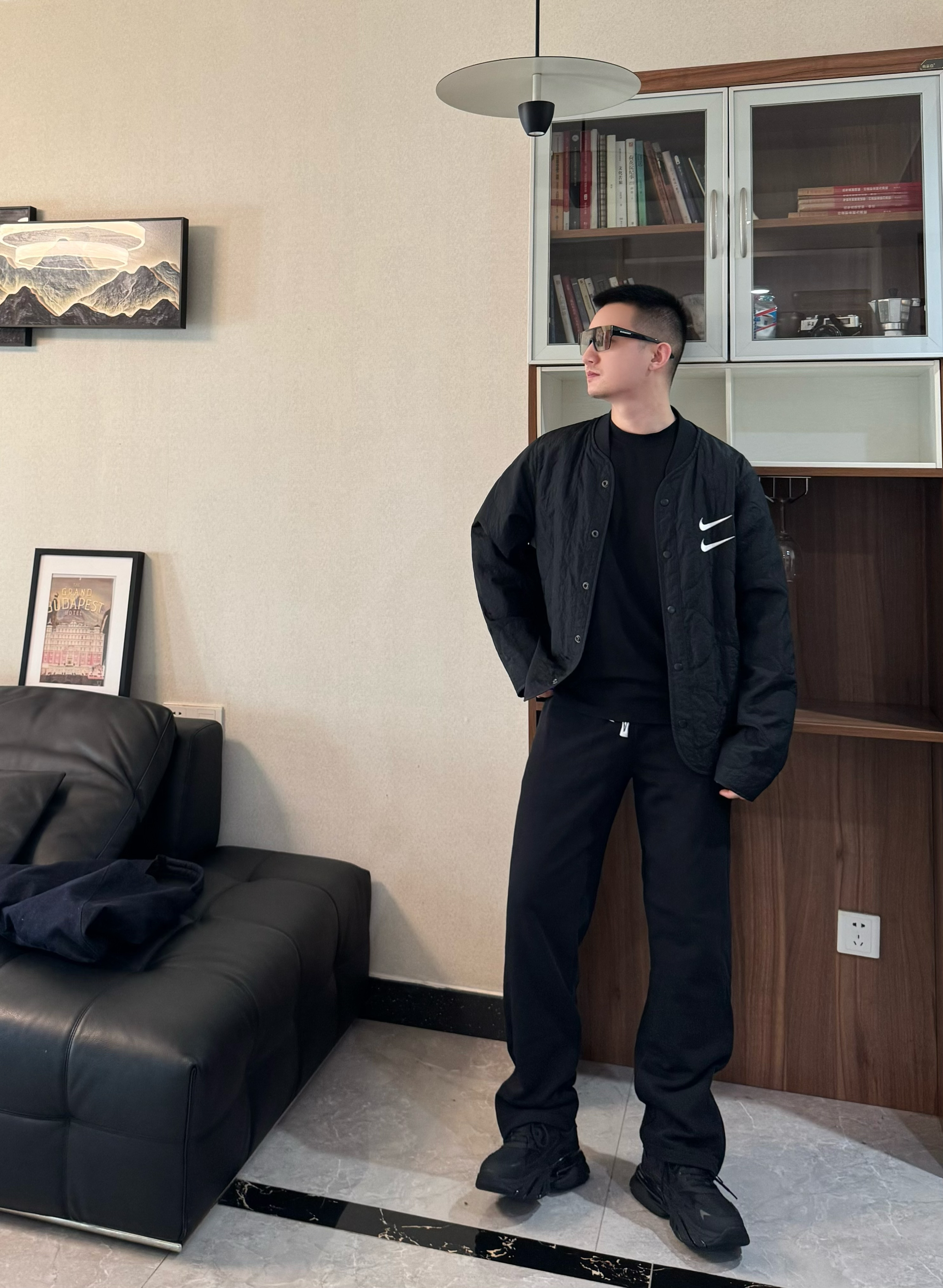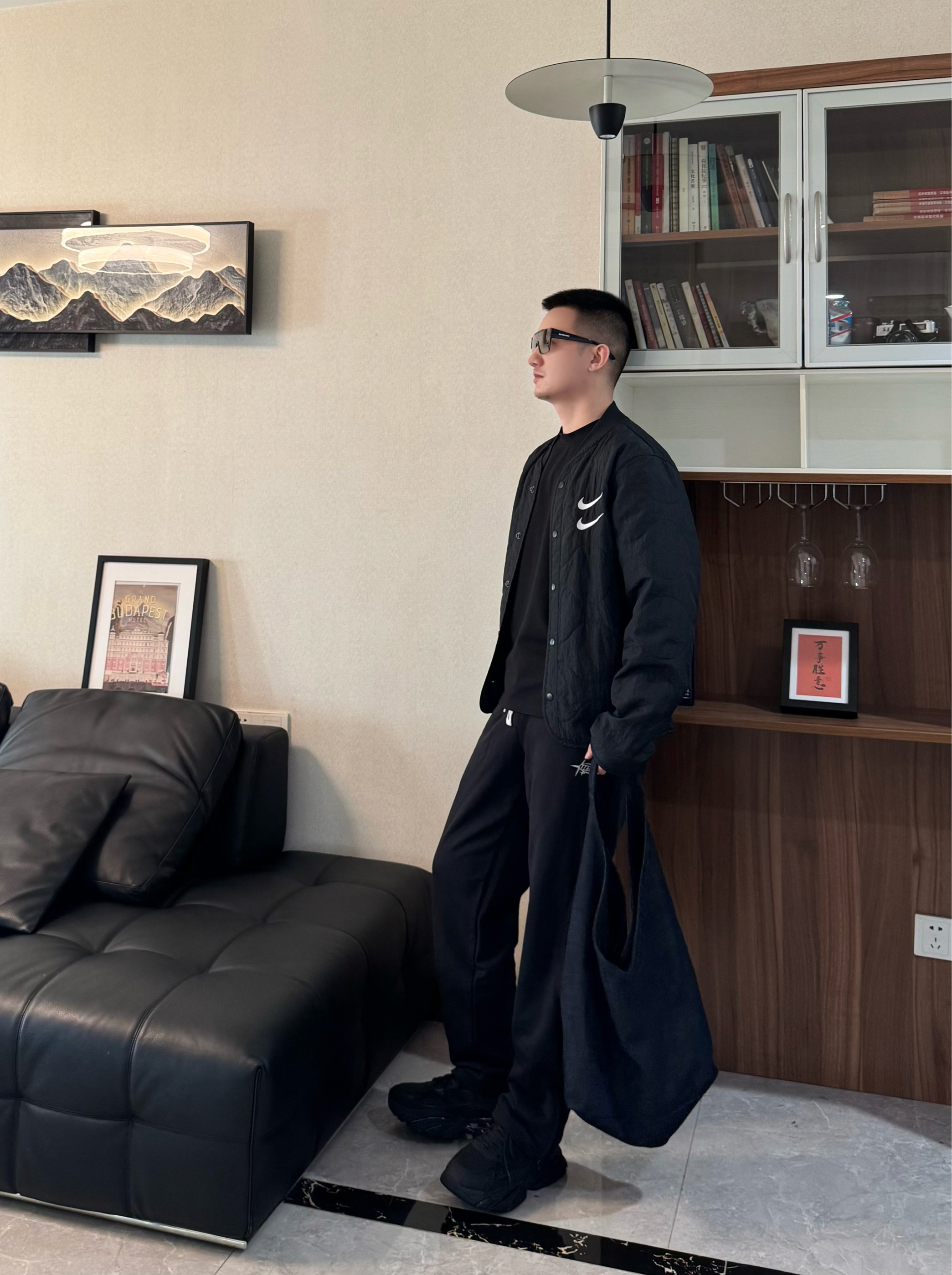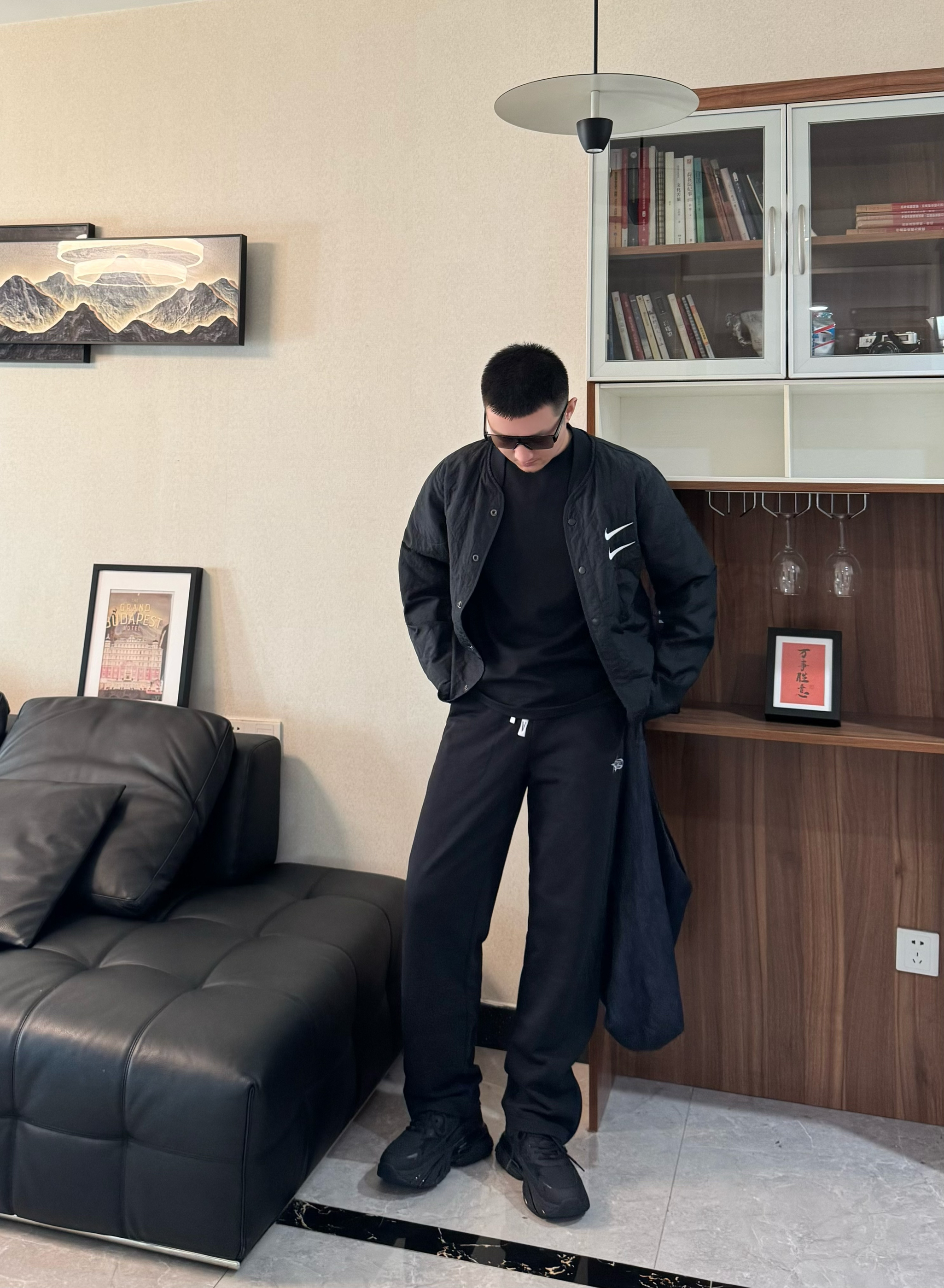 今天也是把黑武士穿搭整理好了! 全身黑的搭配最怕显沉闷 轻薄的黑色加棉夹克搭同色系内搭 下装配垂坠感黑色休闲裤。都是宽松的版型松弛感十足 再搭配一双黑武士老爹鞋 厚底增高拉高比例还不压个头 脚感是比较柔软舒适的 跟今天这套嘎嘎适配~男生穿一身黑真的超有感觉 日常出街随性帅气 懒人穿搭直接这套look吧!
