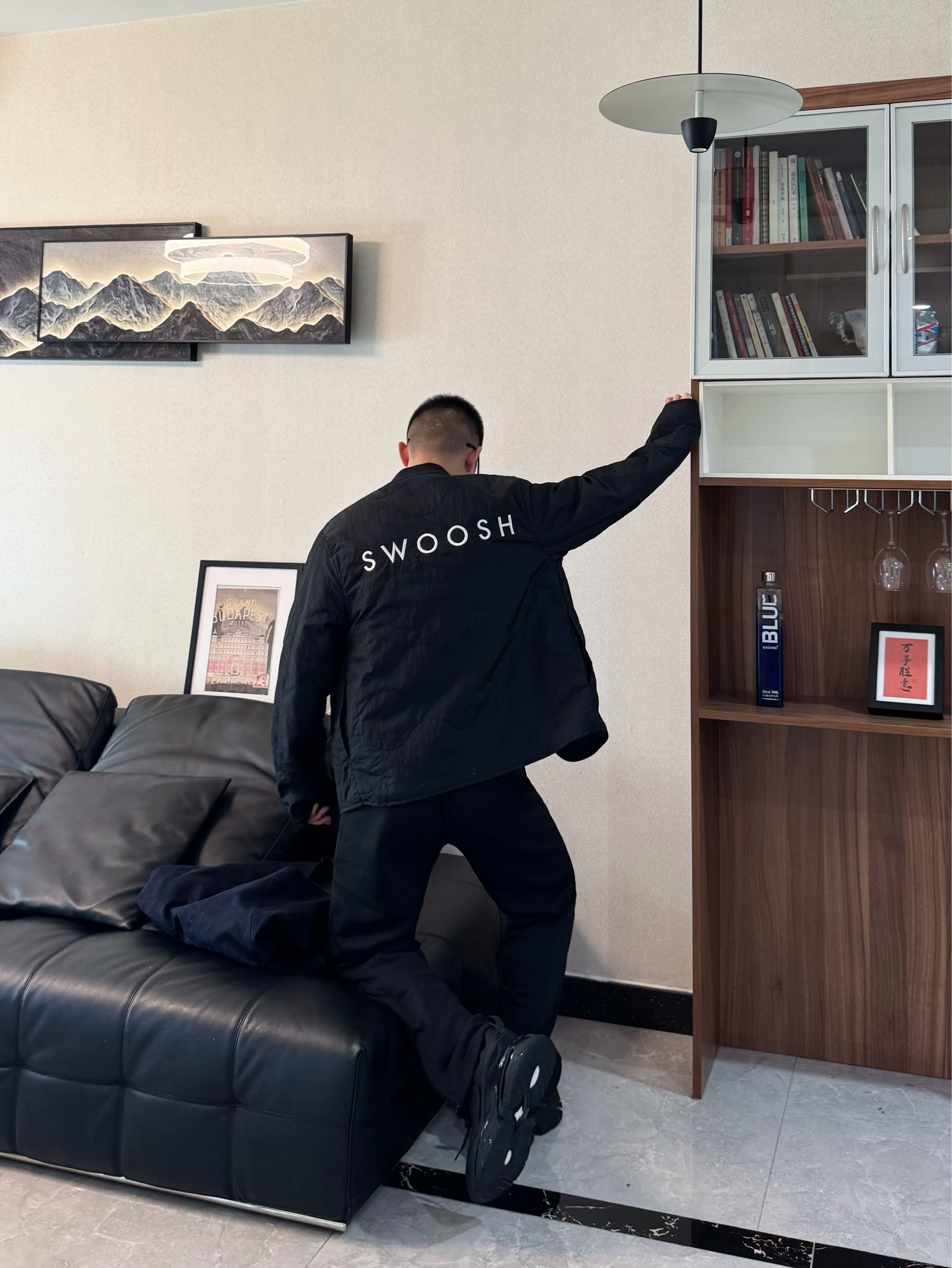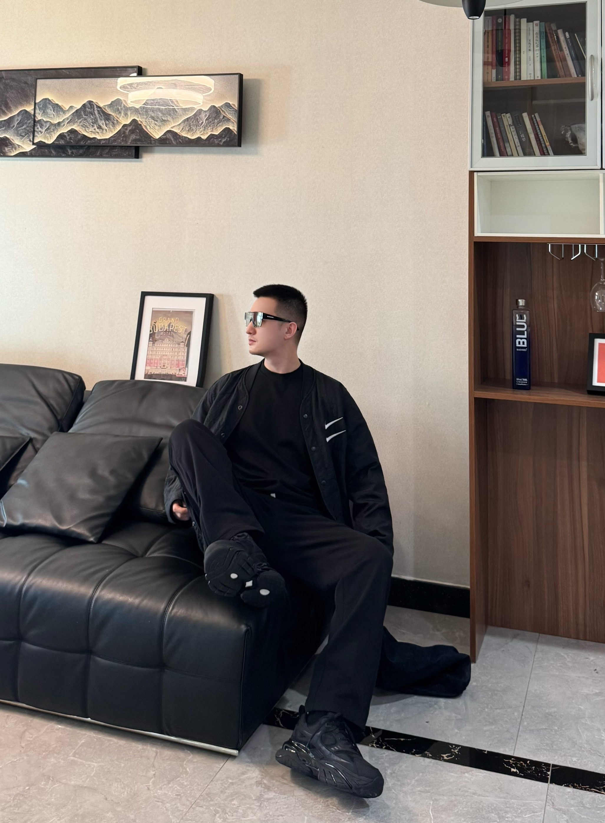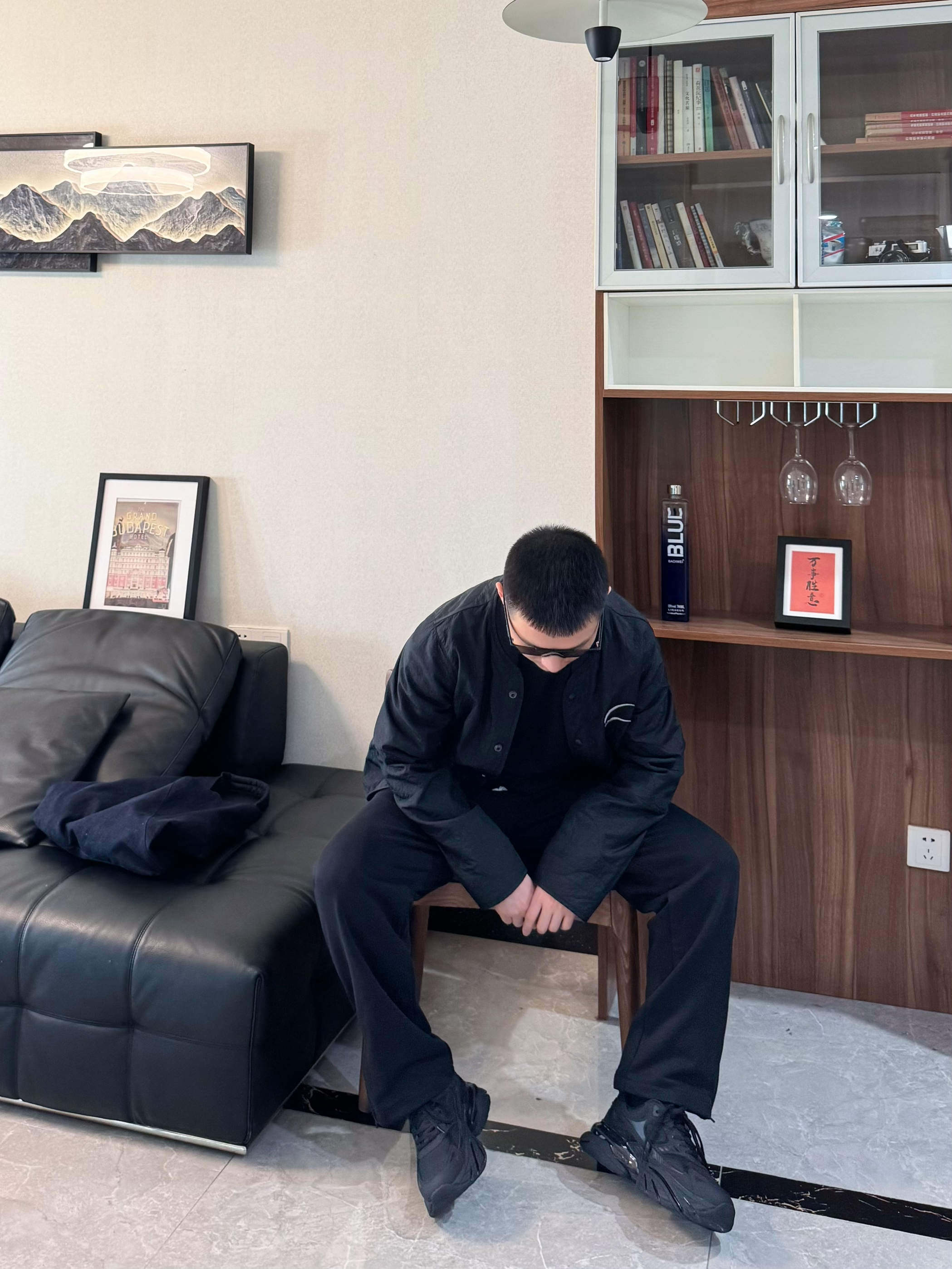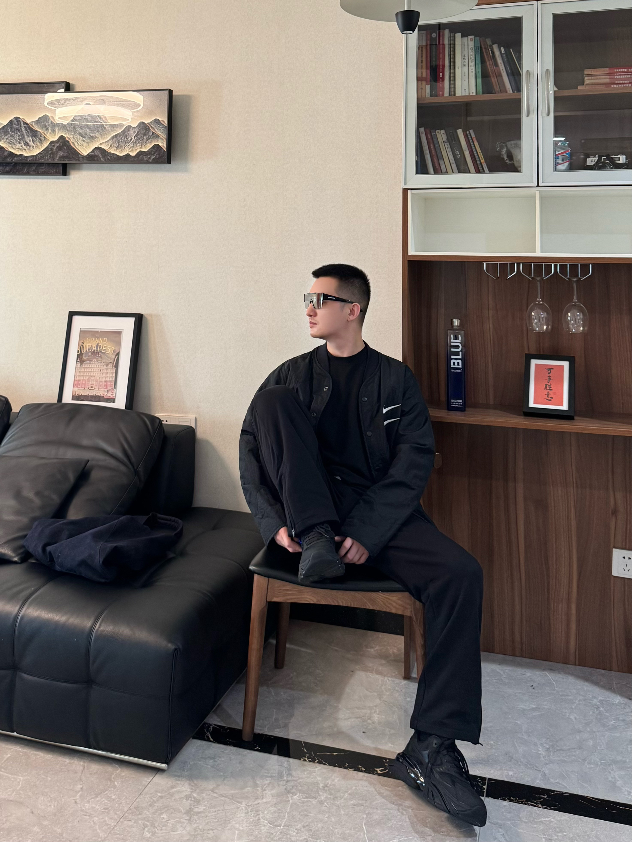 今天也是把黑武士穿搭整理好了! 全身黑的搭配最怕显沉闷 轻薄的黑色加棉夹克搭同色系内搭 下装配垂坠感黑色休闲裤。都是宽松的版型松弛感十足 再搭配一双黑武士老爹鞋 厚底增高拉高比例还不压个头 脚感是比较柔软舒适的 跟今天这套嘎嘎适配~男生穿一身黑真的超有感觉 日常出街随性帅气 懒人穿搭直接这套look吧!