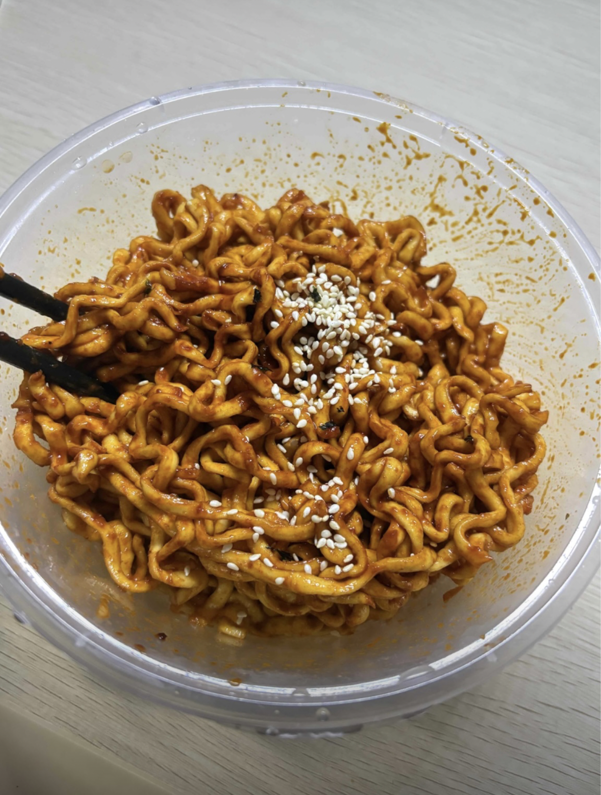 最近挖到的这款火鸡面,直接成为我深夜追剧的标配。 面饼是那种筋道的宽面,煮好后裹满了浓郁的辣酱,辣度够劲但不会烧胃,自带的芝麻和海苔碎一撒,香气直接拉满。 一包的分量刚好够一顿,不用怕吃不完浪费。不管是当宵夜还是懒得做饭时的速食,都能快速搞定,吃完满足感直接拉满。 没有花里胡哨的噱头,就是实实在在的好吃,适合喜欢重口的朋友。