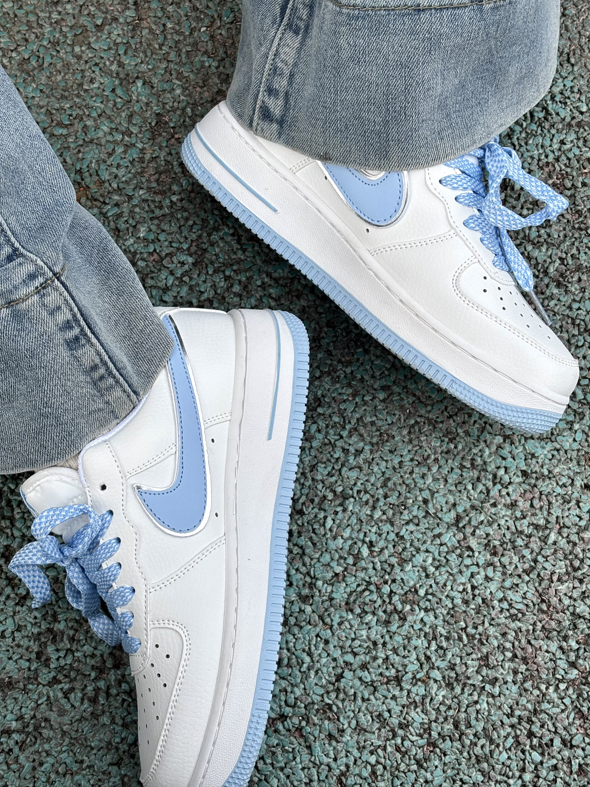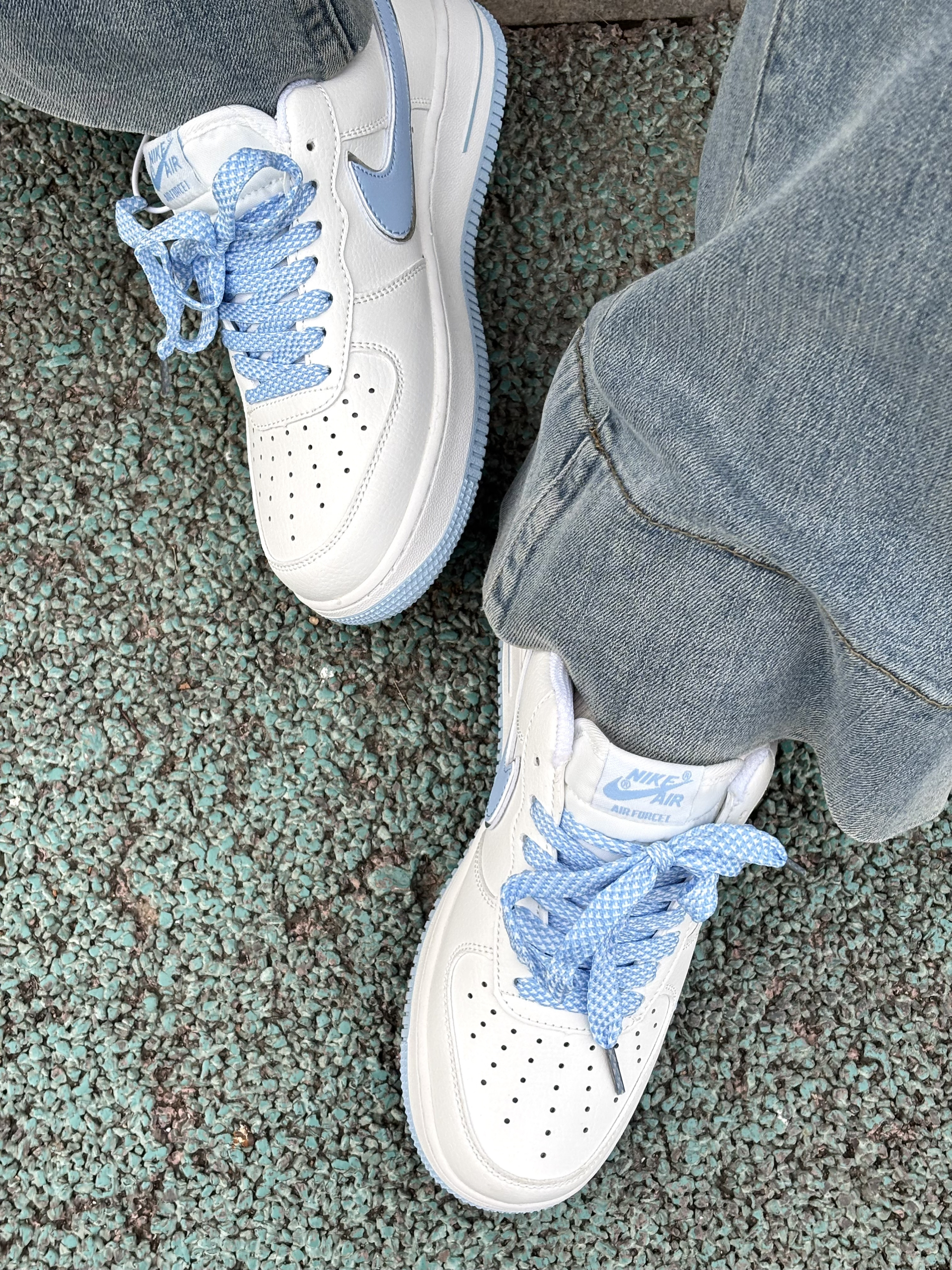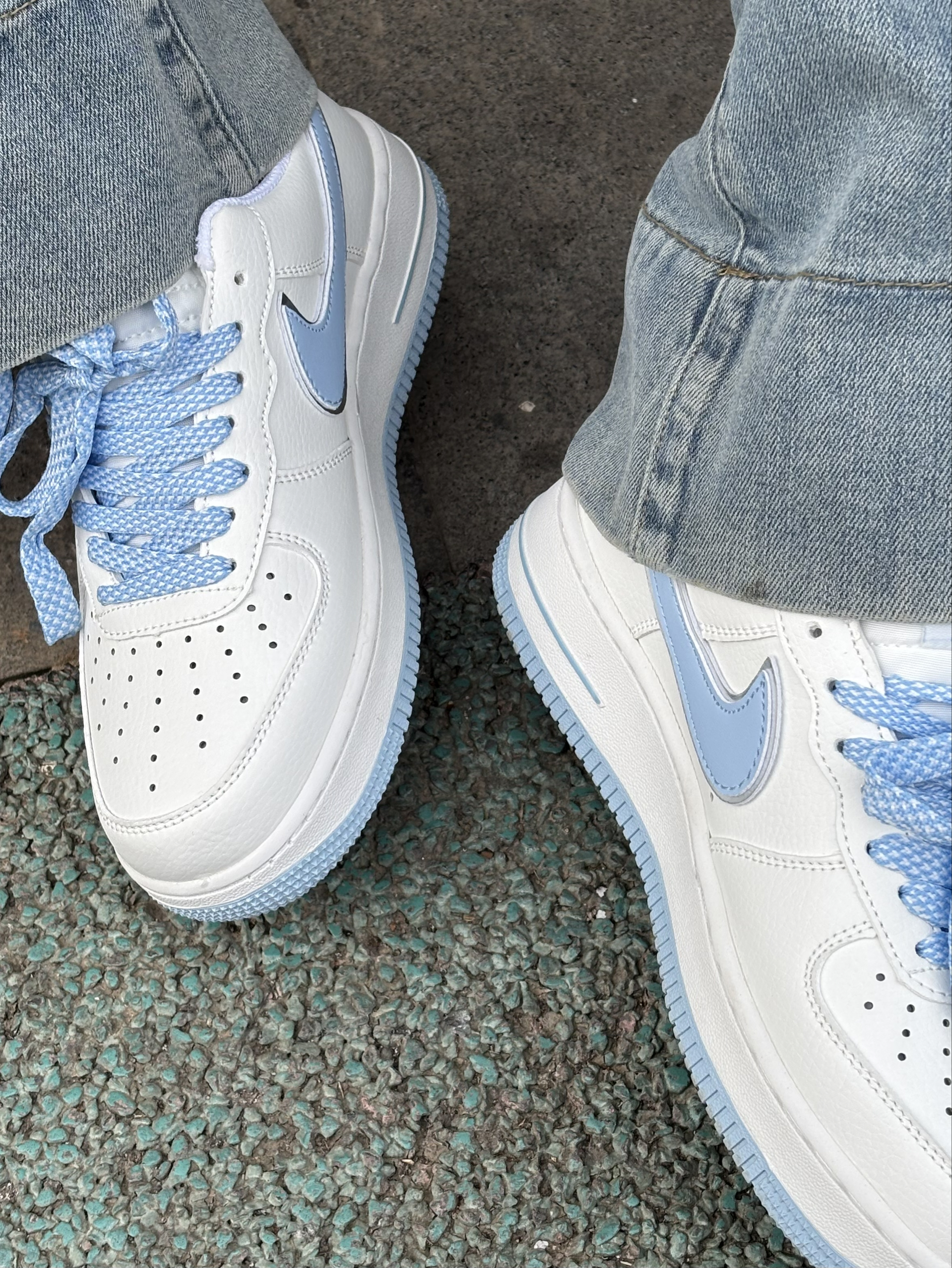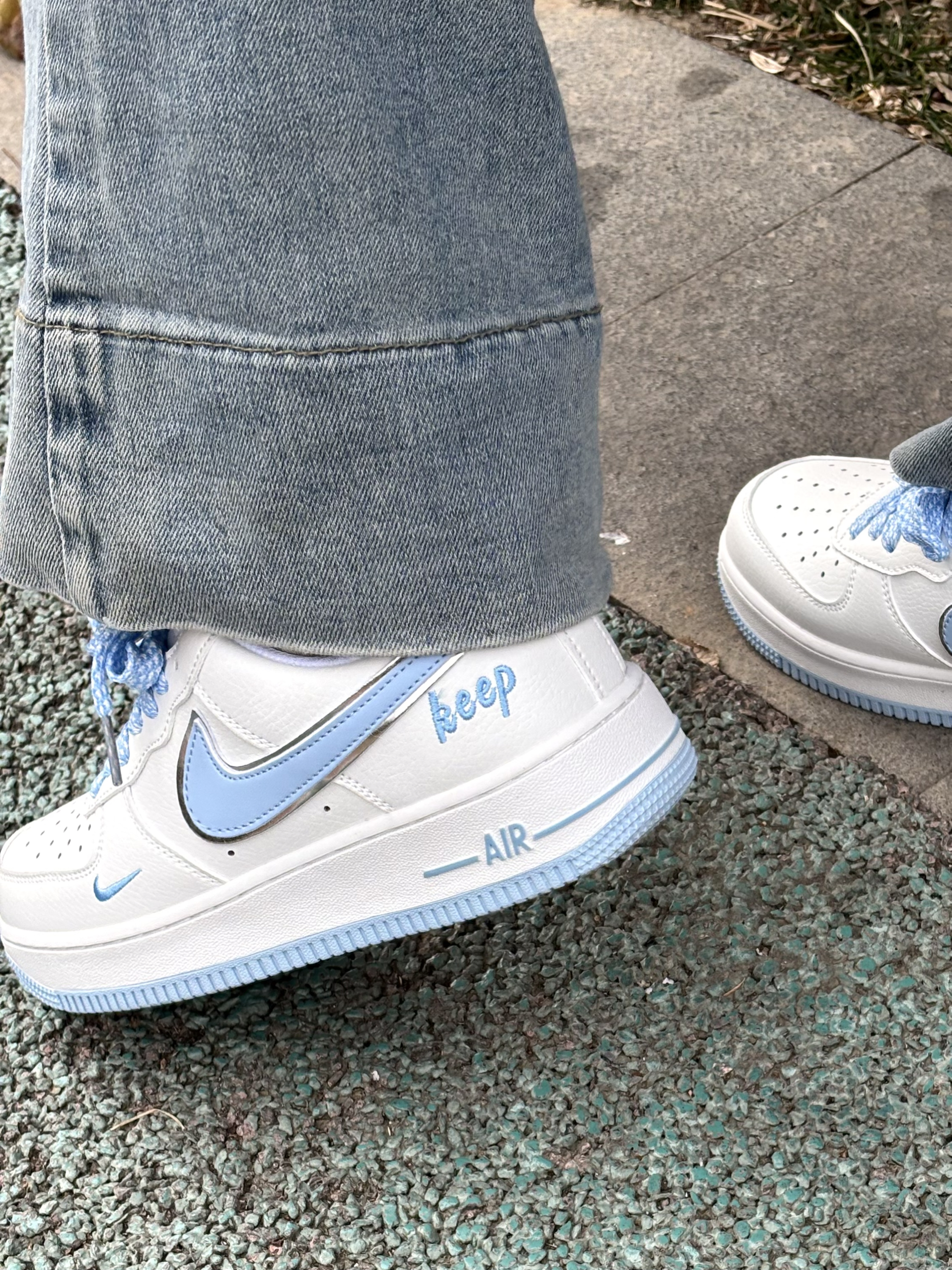 拒绝不了奶乎乎蓝白配色的空军呀! 很干净温柔的感觉 满满的校园元气感 上脚就像是一个韩系女主的样子 鞋子上缴的感觉包裹性还是不错的,鞋底也中规中矩 鞋身上的蓝色小刺绣细节控真的很爱 搭配牛仔裤或者是小短裙都很显甜甜的氛围感