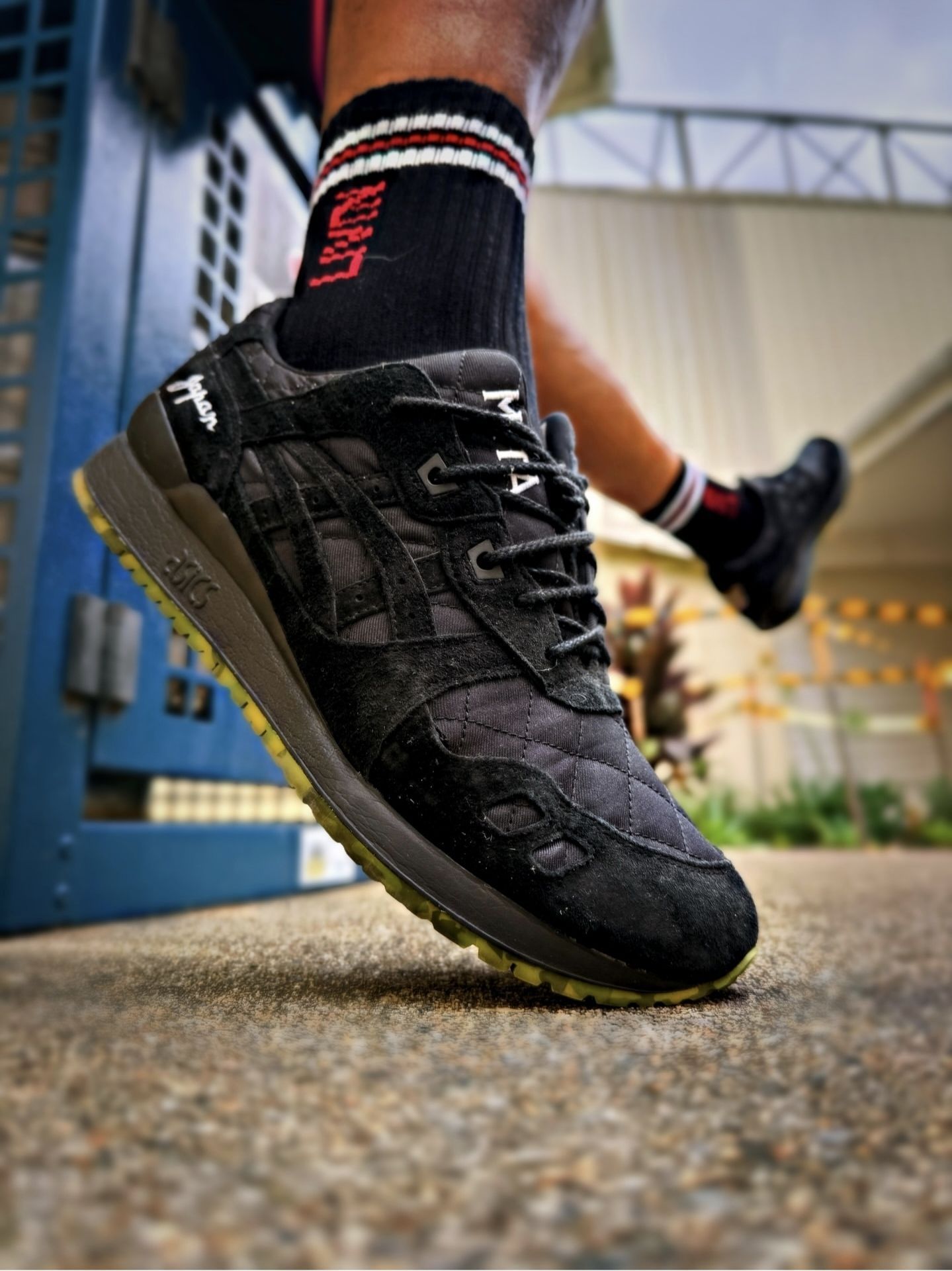 我直呼惊艳,这双黑武士配色的三方联名鞋,刚上脚就给了我超出预期的体验。 我越看越爱,鞋面用的是黑色麂皮拼接菱形格纹尼龙布,不仅视觉上层次丰富,麂皮的细腻触感也让整双鞋质感拉满。鞋身侧面的 ASICS Logo 采用同色系压印设计,低调中透着联名的专属辨识度。后跟处的「Mita」手写体 Logo 和鞋舌上的三方联名标识,更是懂行人才懂的细节彩蛋。 我上脚就不想脱,它的缓震脚感特别扎实。ASIC...