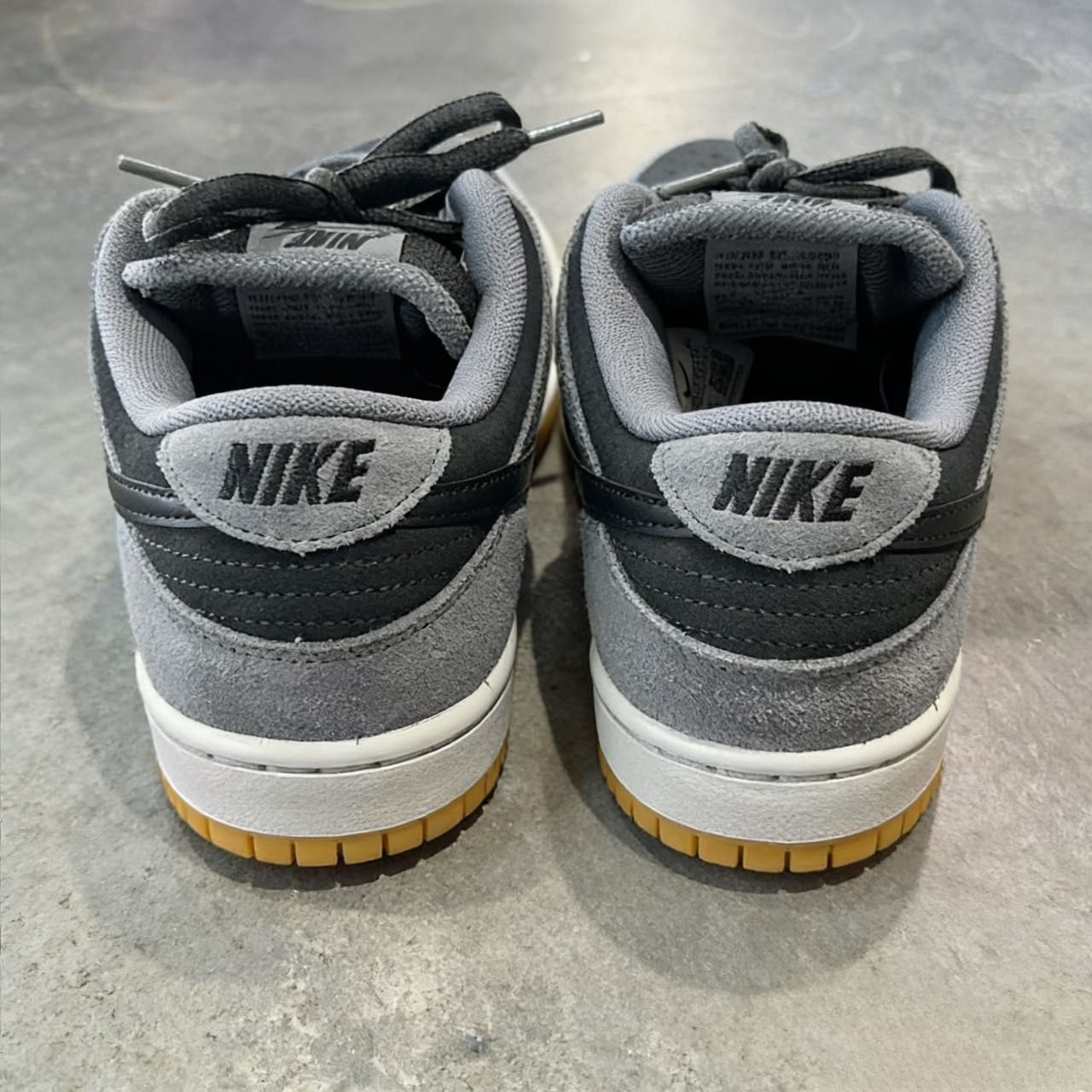 这双耐克Dunk SB Low灰黑色(货号HF3063-001),上脚后最直观的感受是舒适度不错,加厚的鞋舌和鞋口填充让脚踝很舒服[惊喜_blue][惊喜_blue],后掌的Zoom Air气垫在走路或轻度运动时能有效吸收冲击力,长时间穿着也不会觉得脚底发酸[敬礼_blue][敬礼_blue]。鞋面的麂皮材质质感扎实,搭配生胶外底,整体风格复古又百搭,日常穿搭或滑板运动都能轻松驾驭。