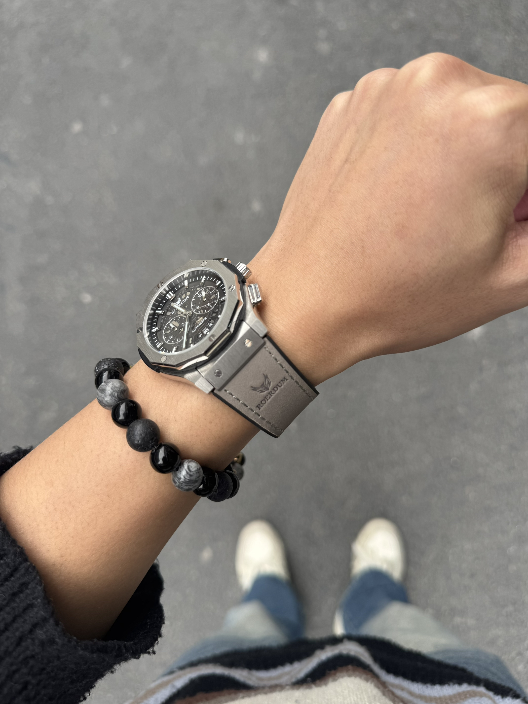 偏爱这种利落又克制的设计,没有多余的修饰,却在细节里藏着高级感。时间流转,腕间的质感始终在线。
