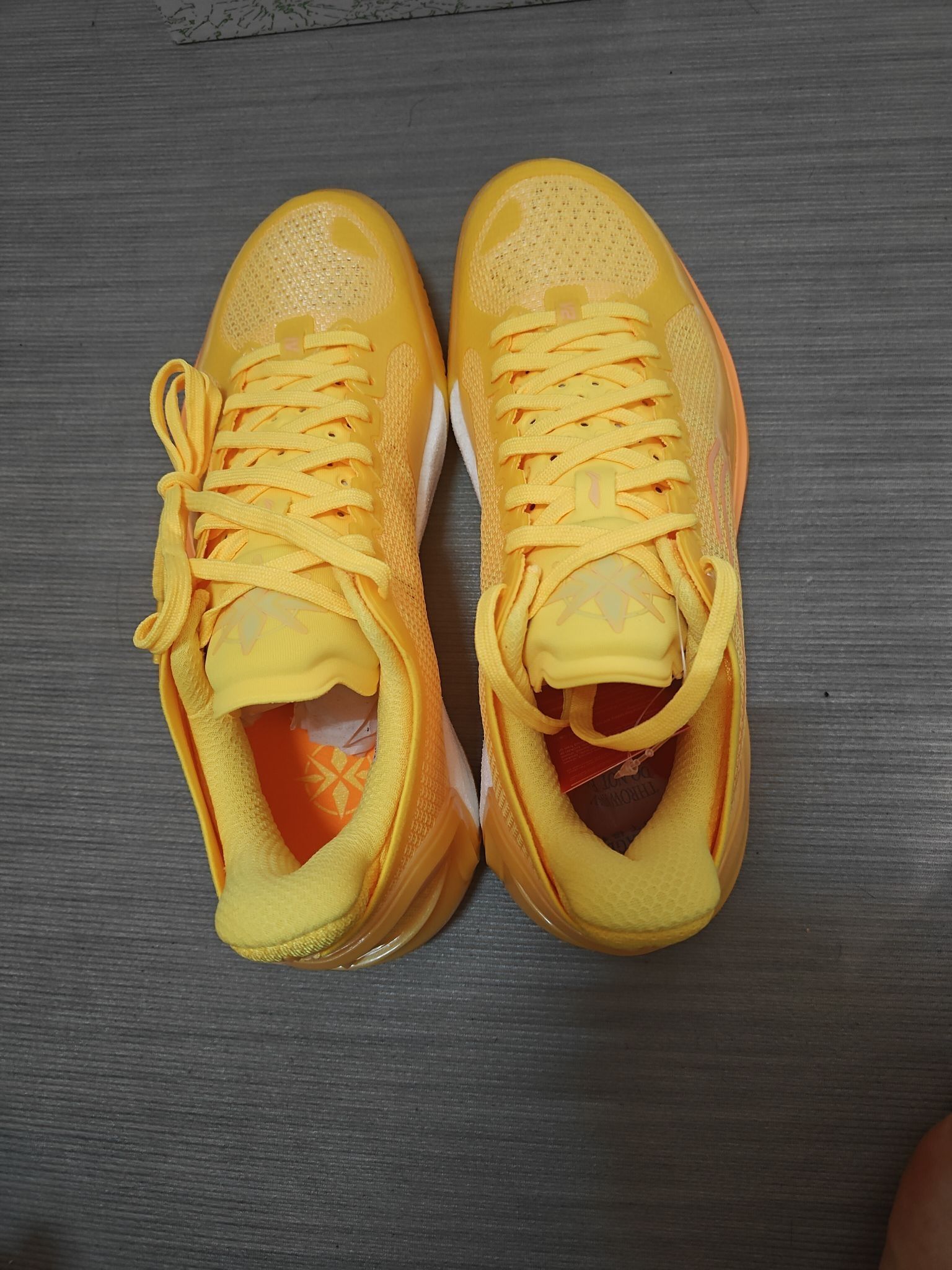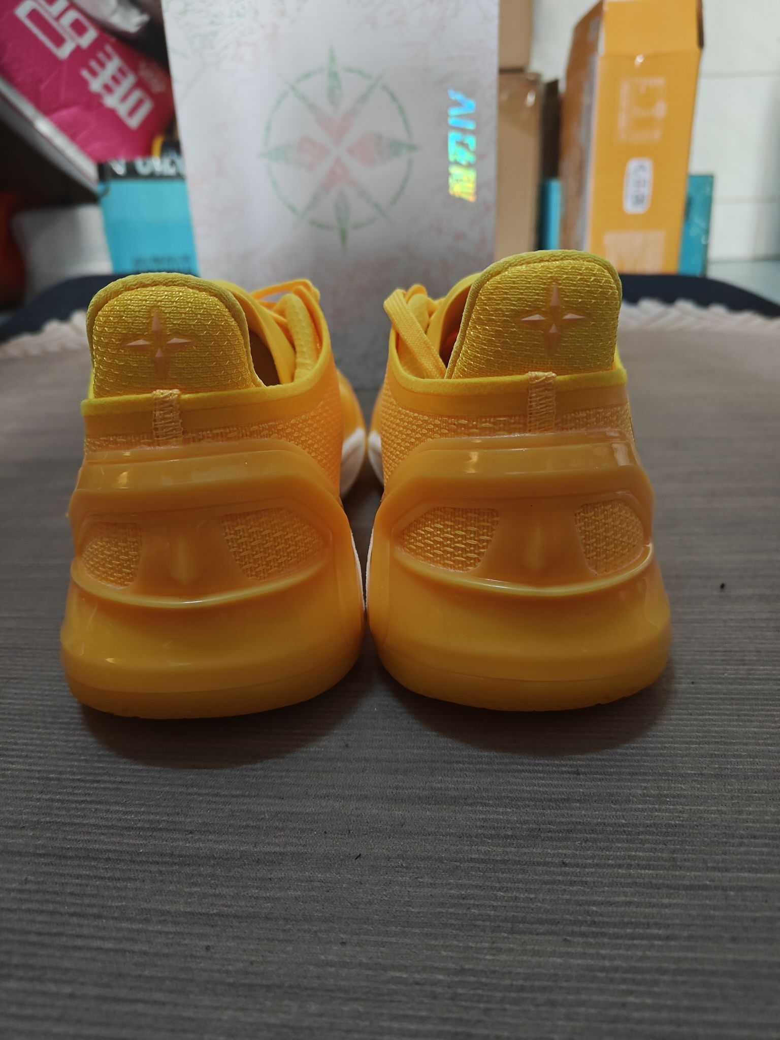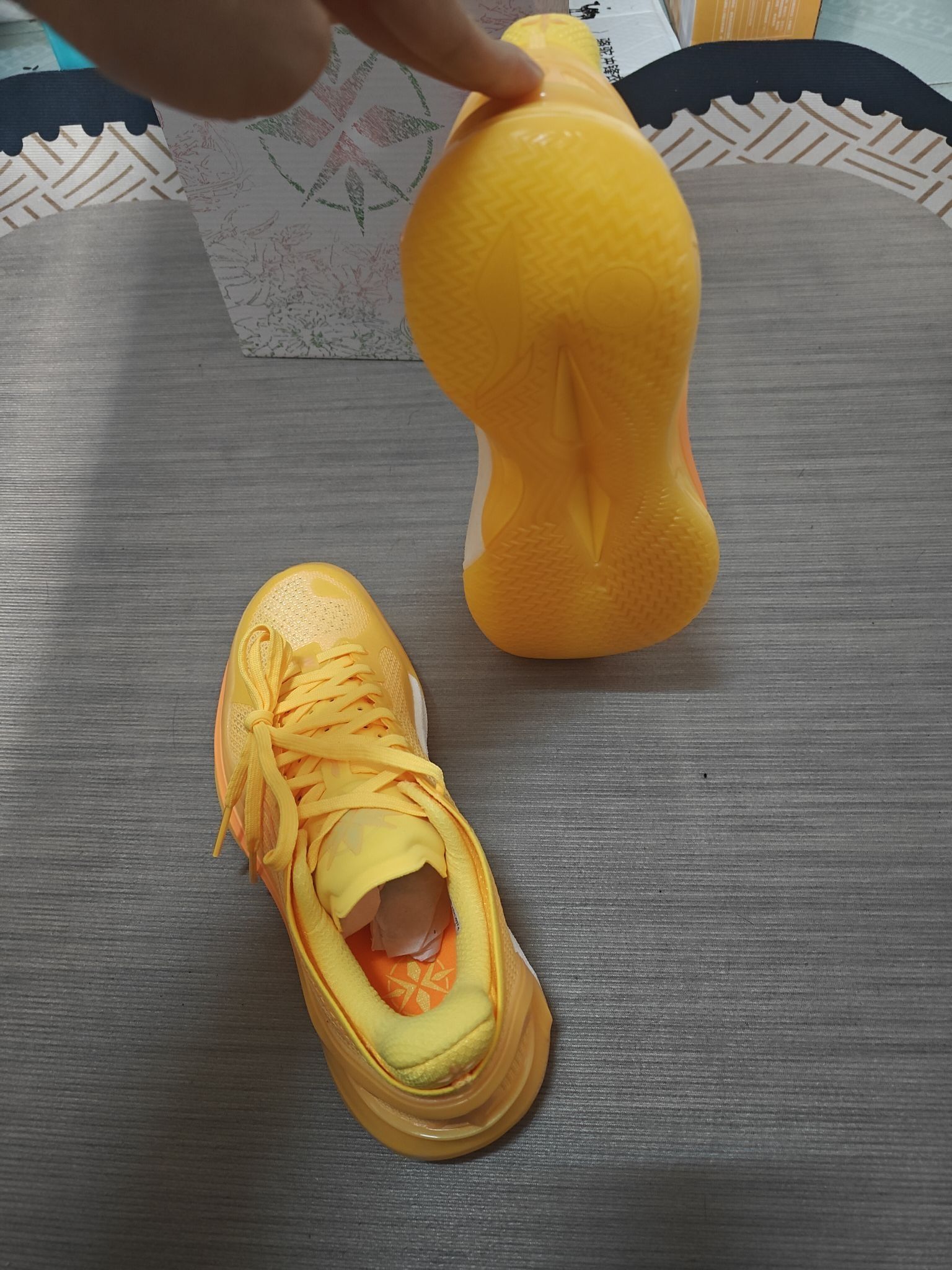 李宁利刃4V2金盏配色真的超出预期!荧光芒果黄上脚超吸睛,男女同款百搭,球场回头率拉满。低帮设计不卡脚踝,变向、突破灵活不拖沓,鞋面包裹紧致不挤脚,跑动很跟脚。全掌䨻科技脚感绝了,落地减震柔和,起跳回弹干脆,打完全场膝盖也不酸。外底抓地很稳,室内外急停、横移都不打滑,耐磨也在线。整鞋轻便不压脚,启动不拖沓,兼顾缓震、防滑、回弹与支撑,日常实战、半场全场都能打,性价比很高,后卫、锋线都适配,真心推荐...