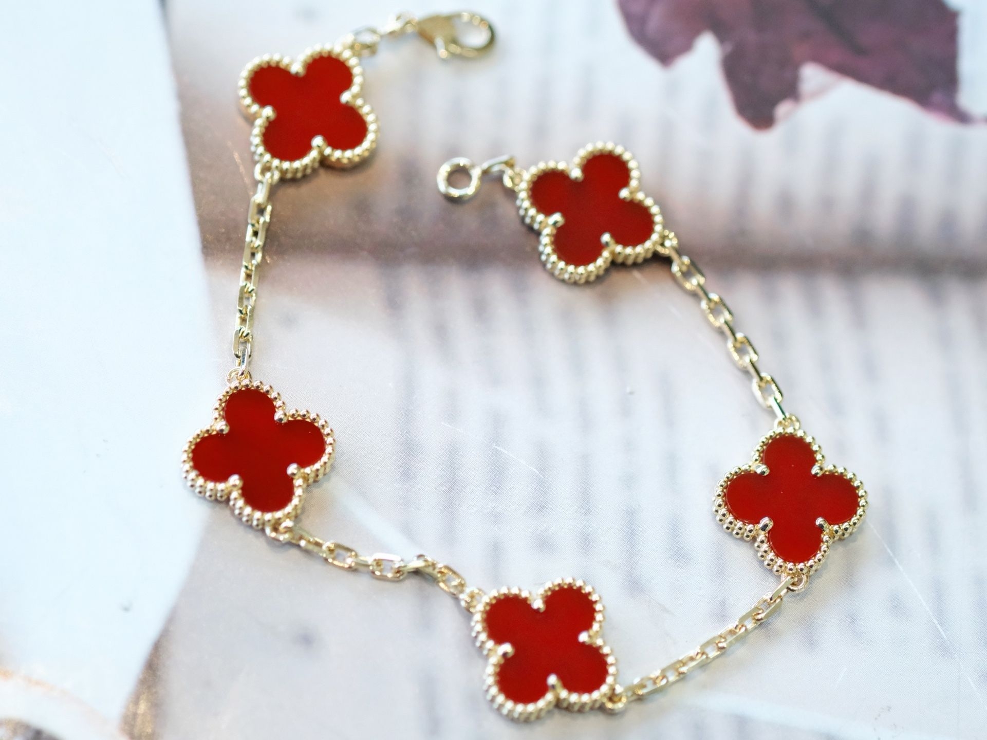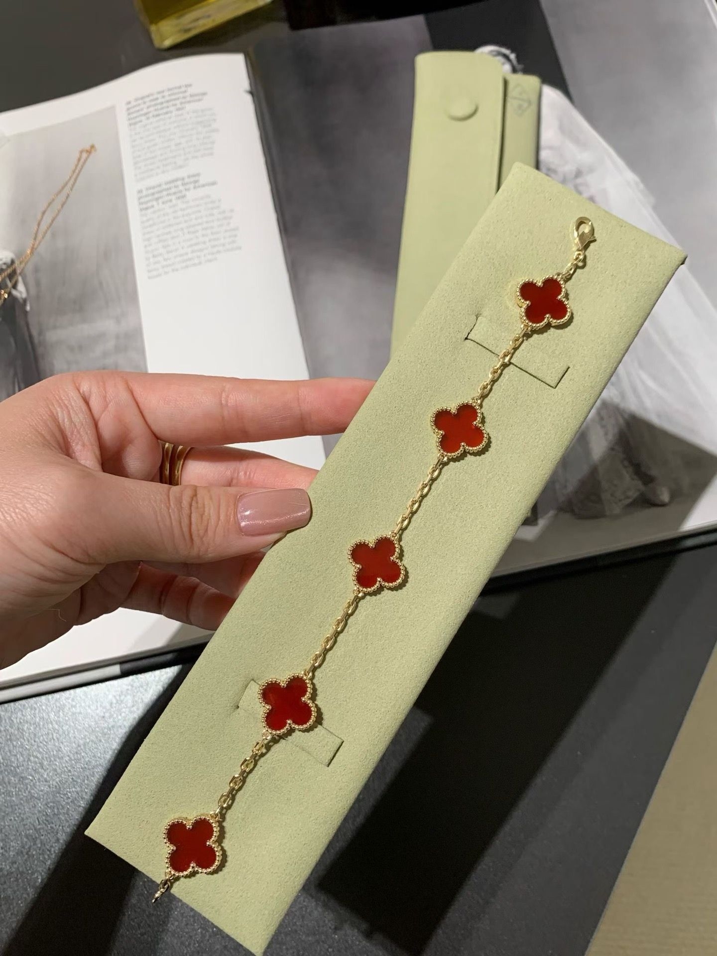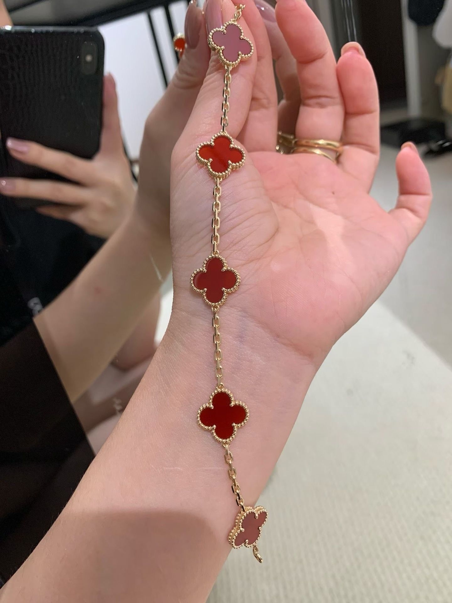 本篇笔记关联了Van Cleef&Arpels/梵克雅宝 Vintage Alhambra四叶草幸运五花黑玛瑙手链 ARA41800 红色(玛瑙石) VCARP34900、Van Cleef&Arpels/梵克雅宝 四叶草玉髓手链 VCARD35500 红色等商品,为用户提供真实的使用体验和购买参考。